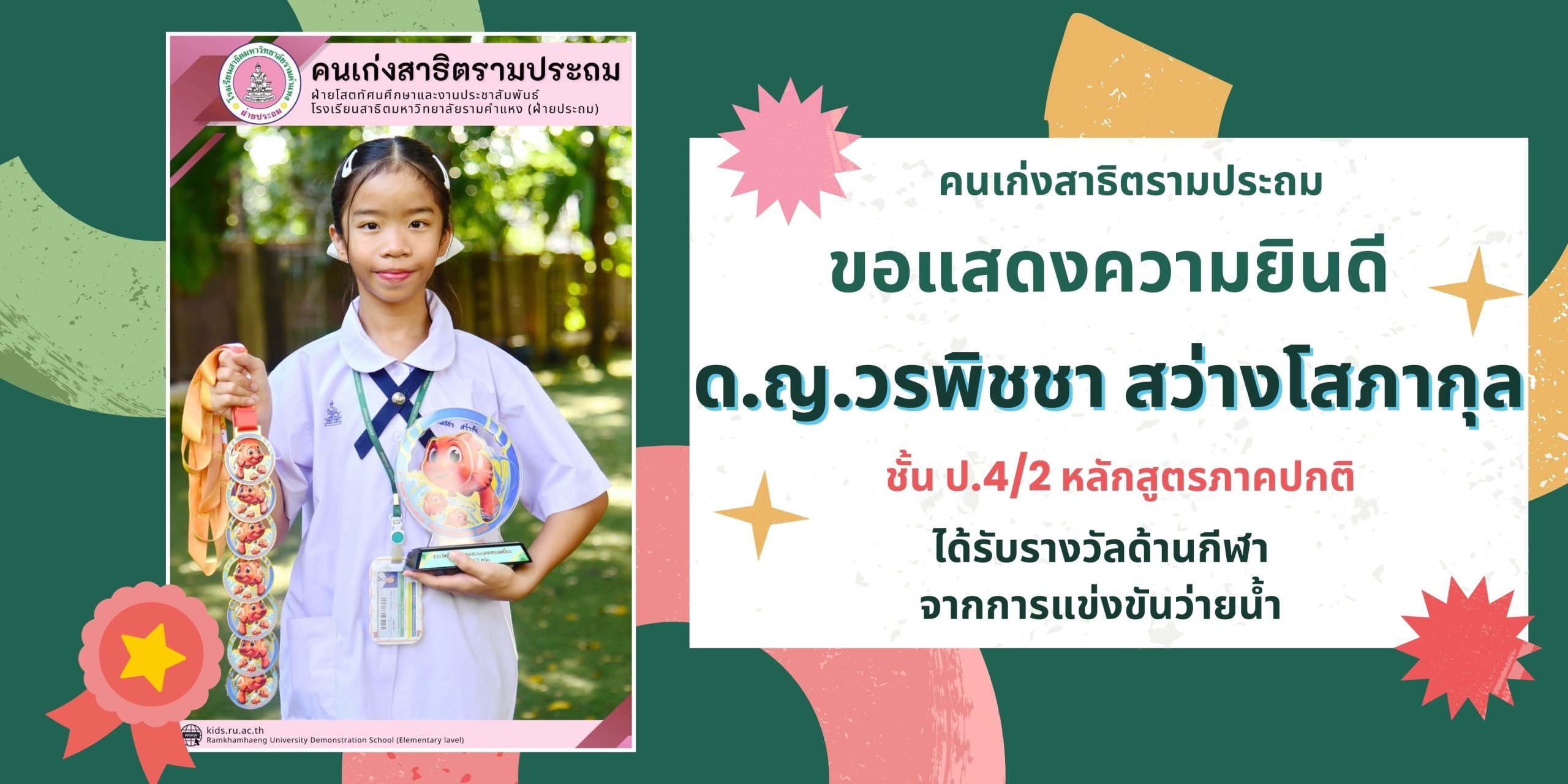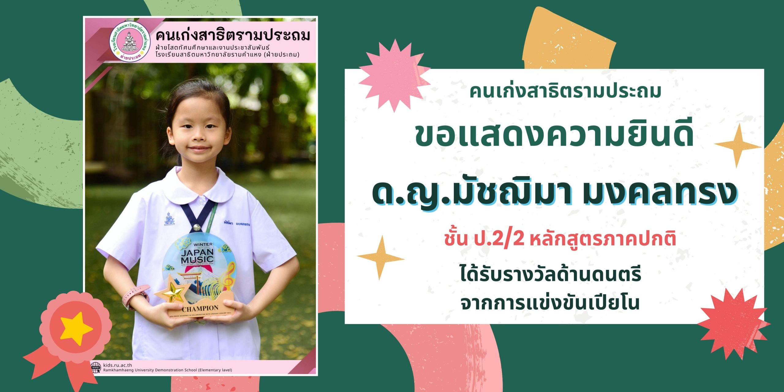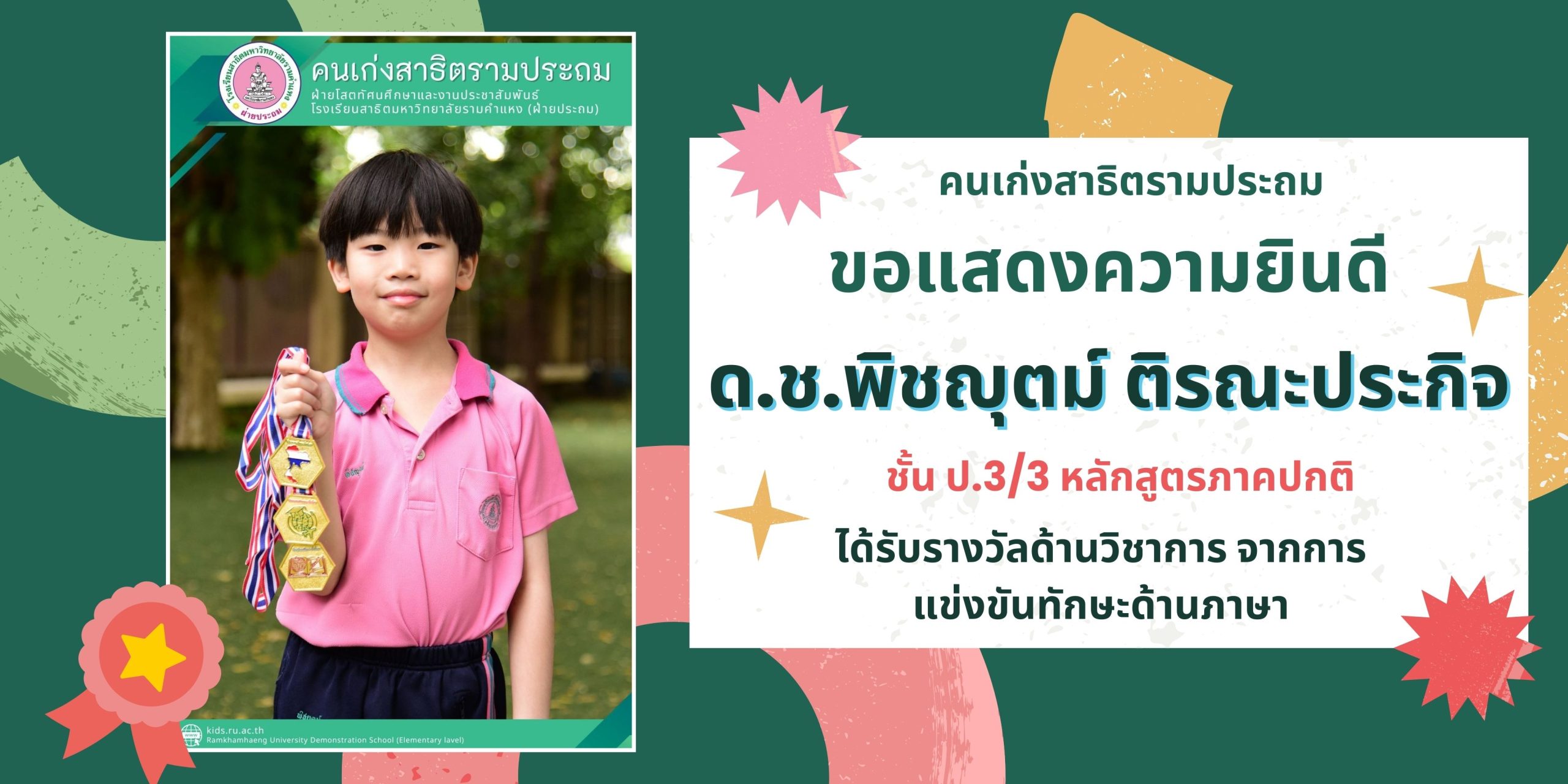 “โรงเรียนสาธิตมหาวิทยาลัยรามคำแหง (ฝ่ายประถม) คือ โรงเรียน Happiness Thinking and Teamwork school