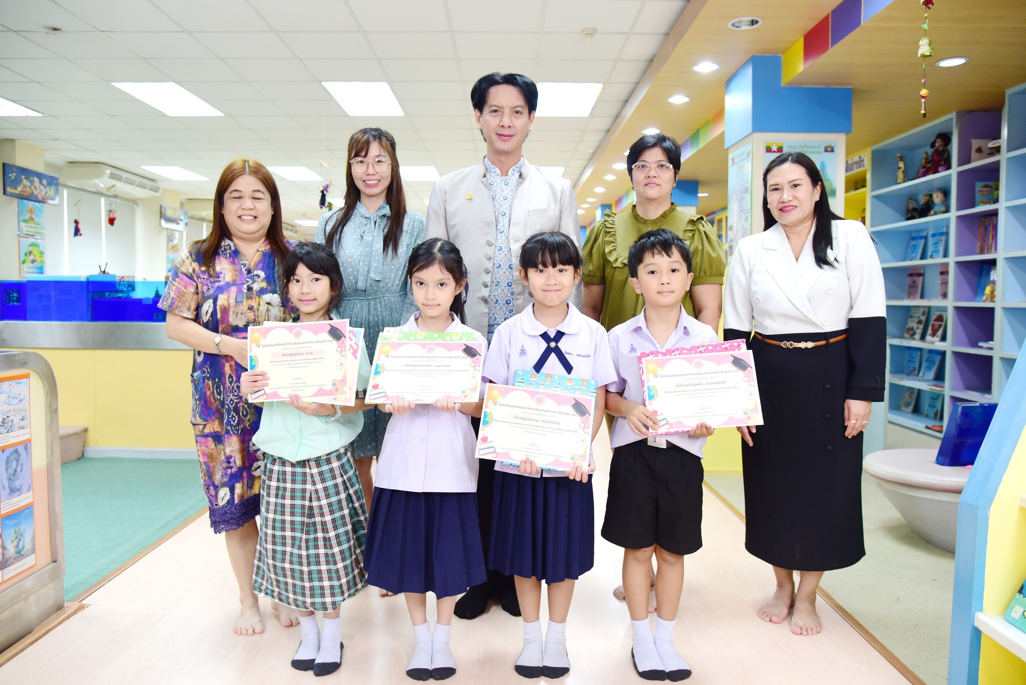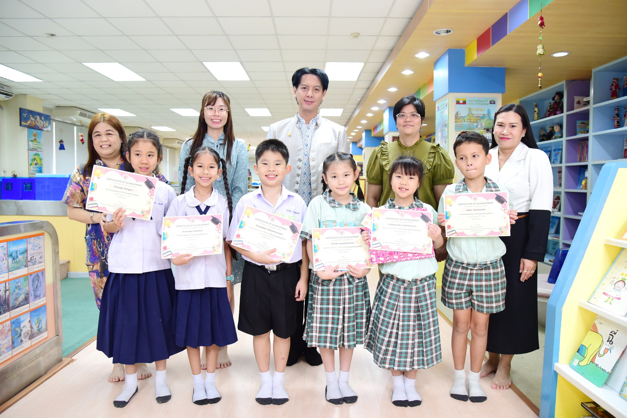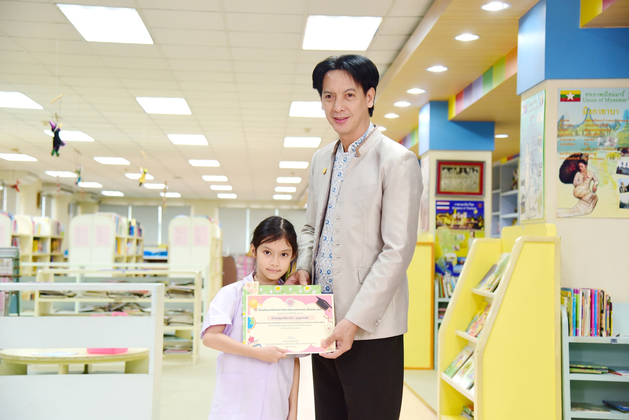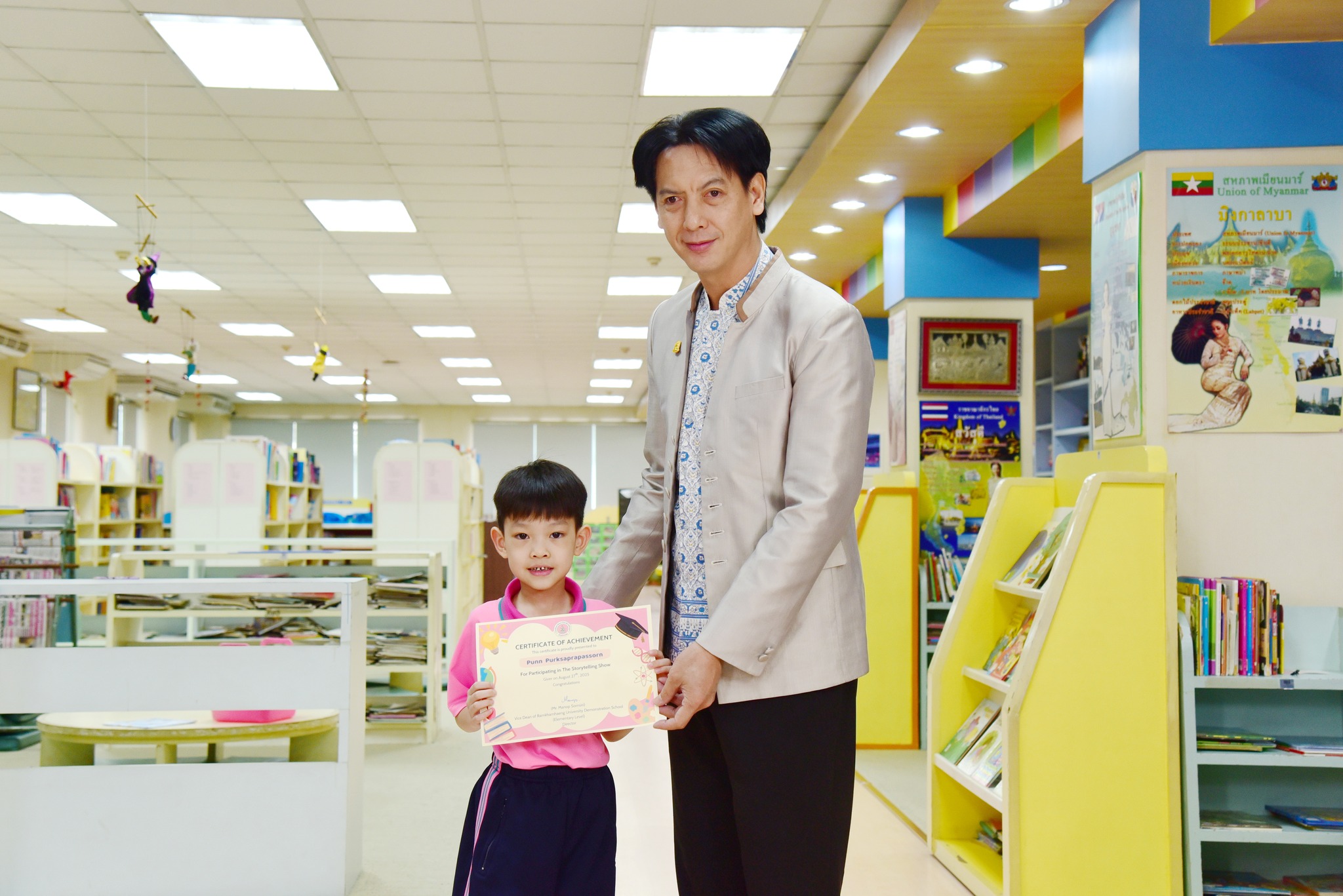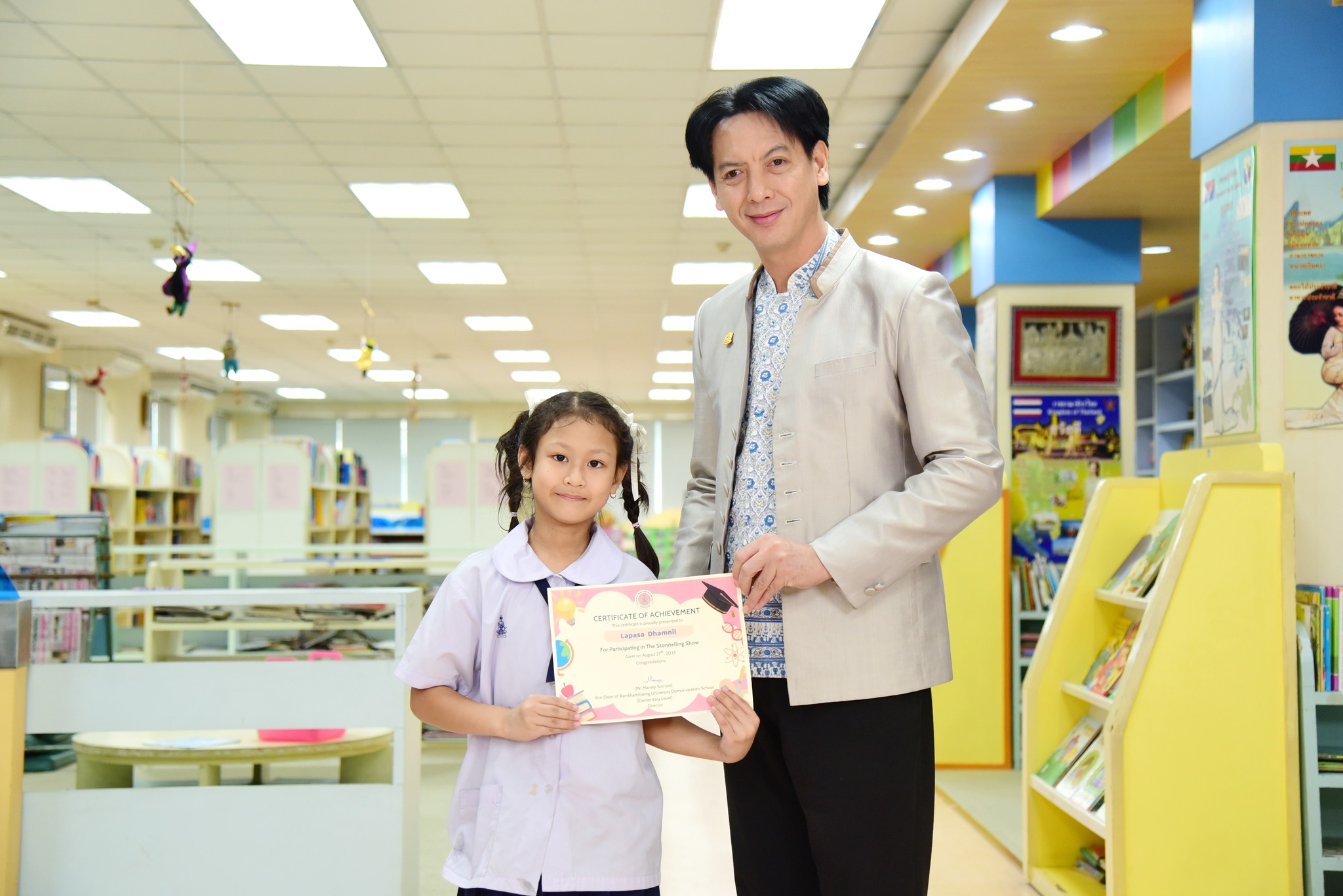 มอบประกาศนียบัตรและรางวัลให้แก่นักเล่านนิทานประจำภาคเรียนนี้ในระดับประถมศึกษาตอนต้น