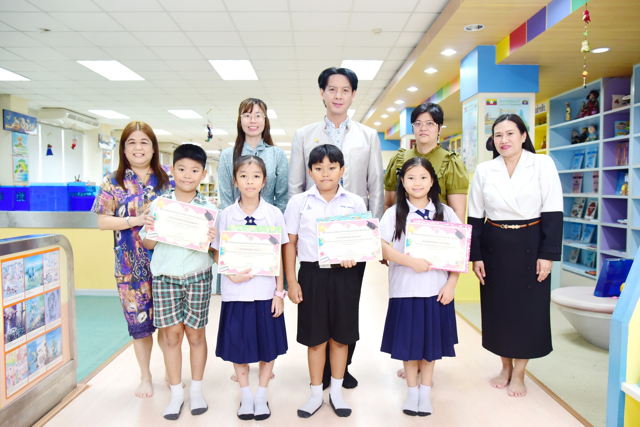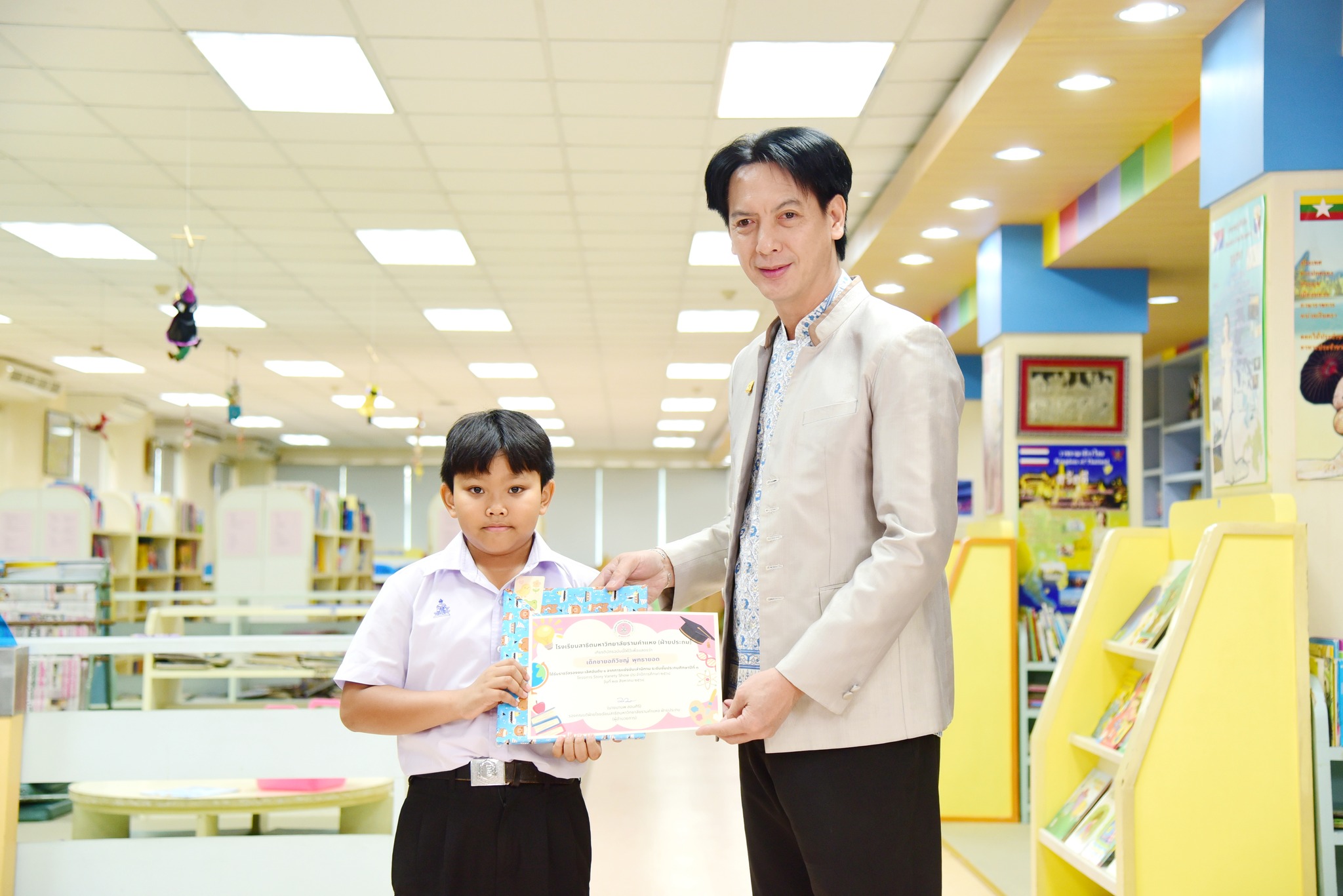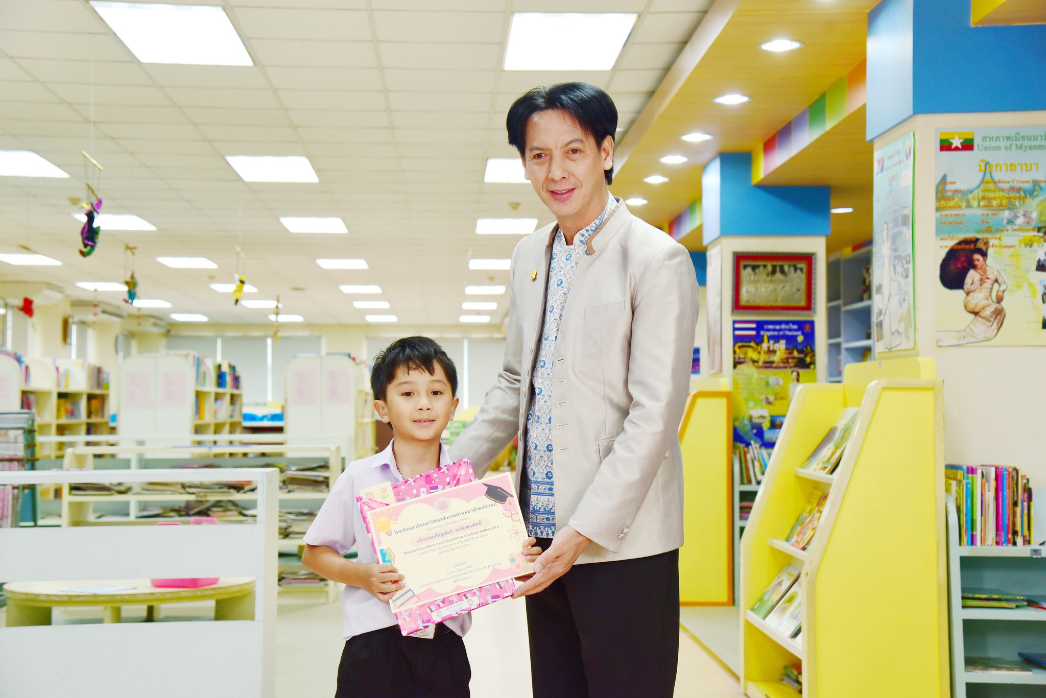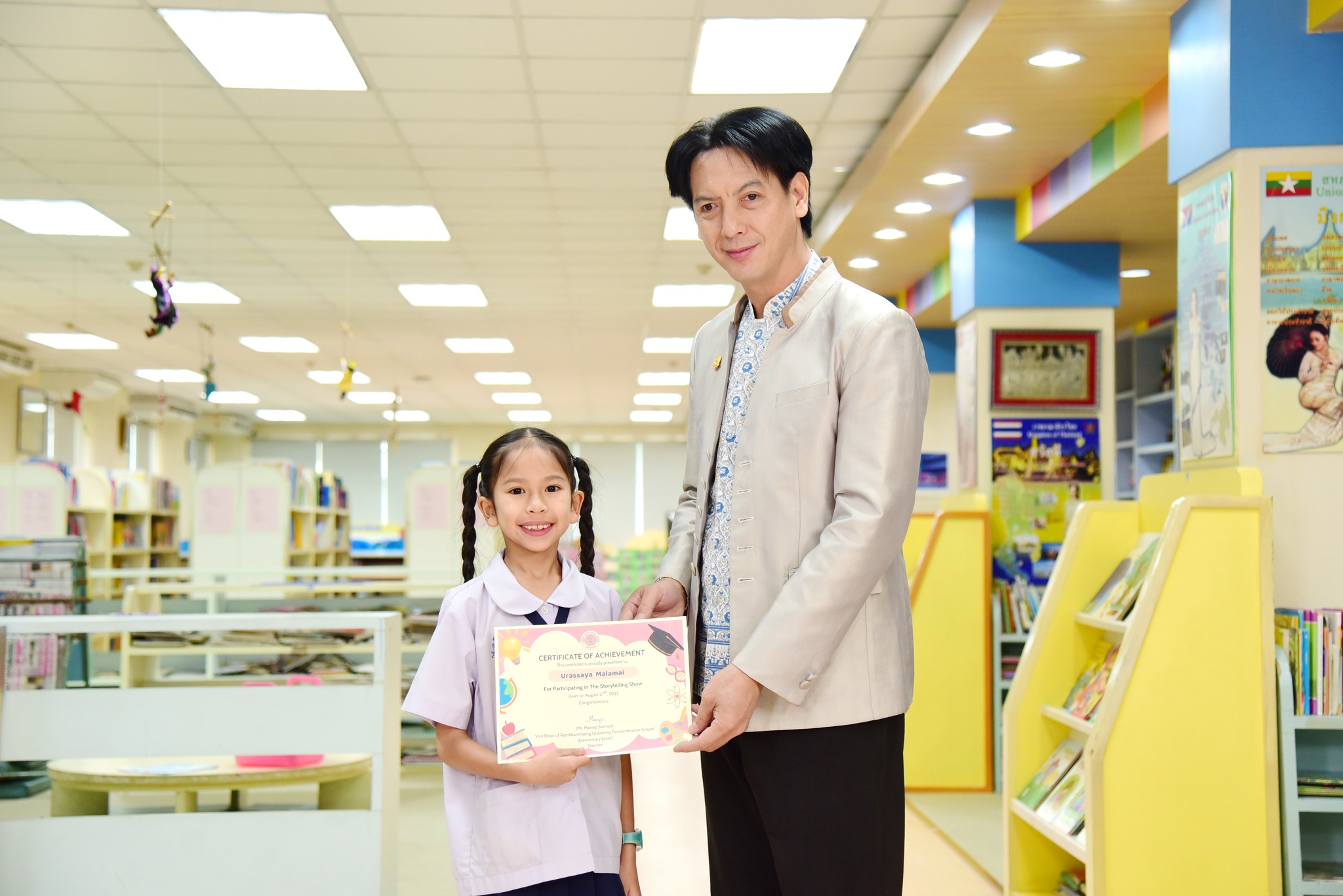 มอบประกาศนียบัตรและรางวัลให้แก่นักเล่านนิทานประจำภาคเรียนนี้ในระดับประถมศึกษาตอนต้น