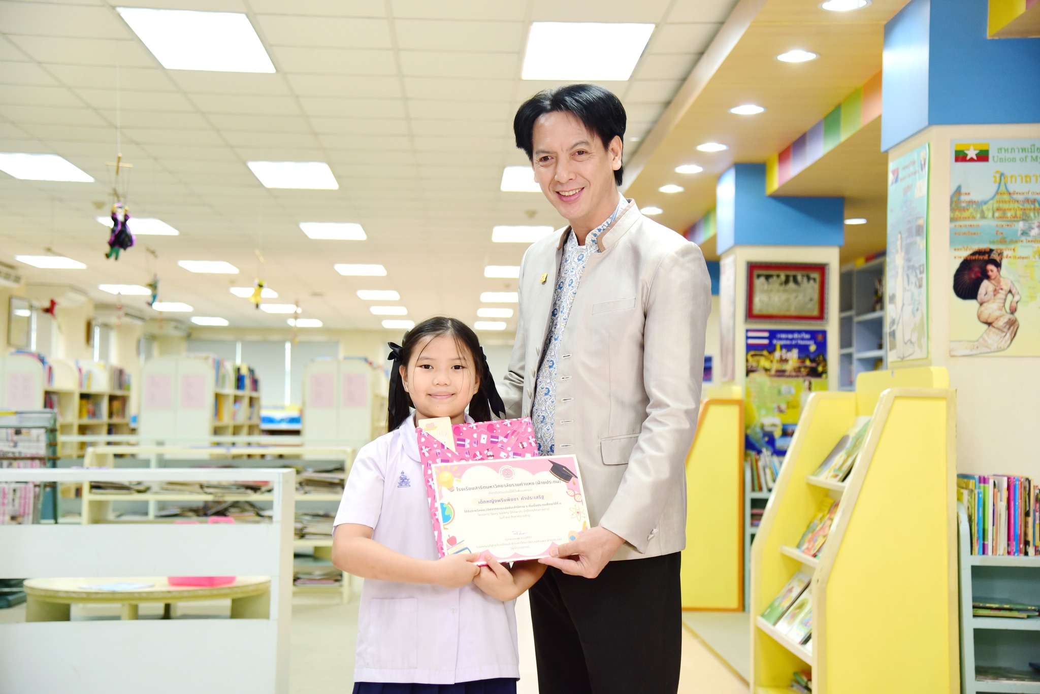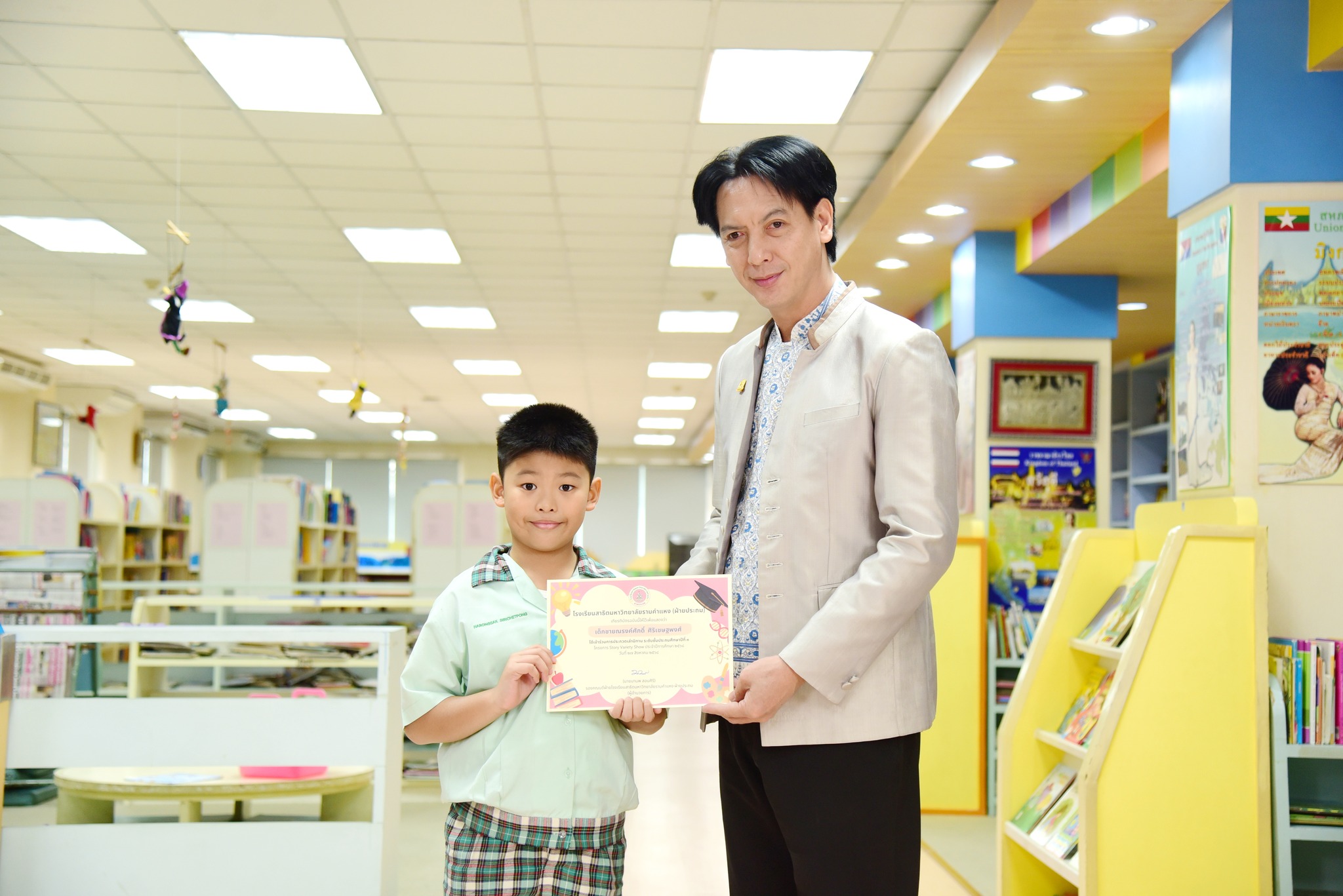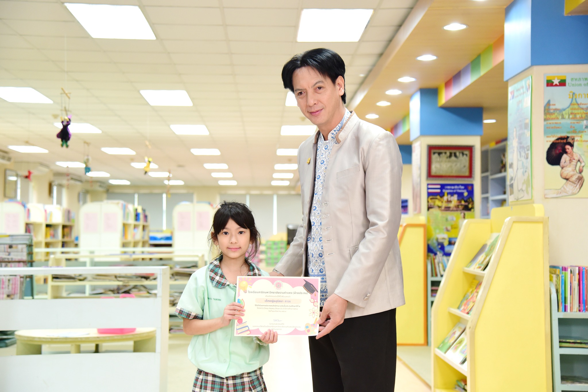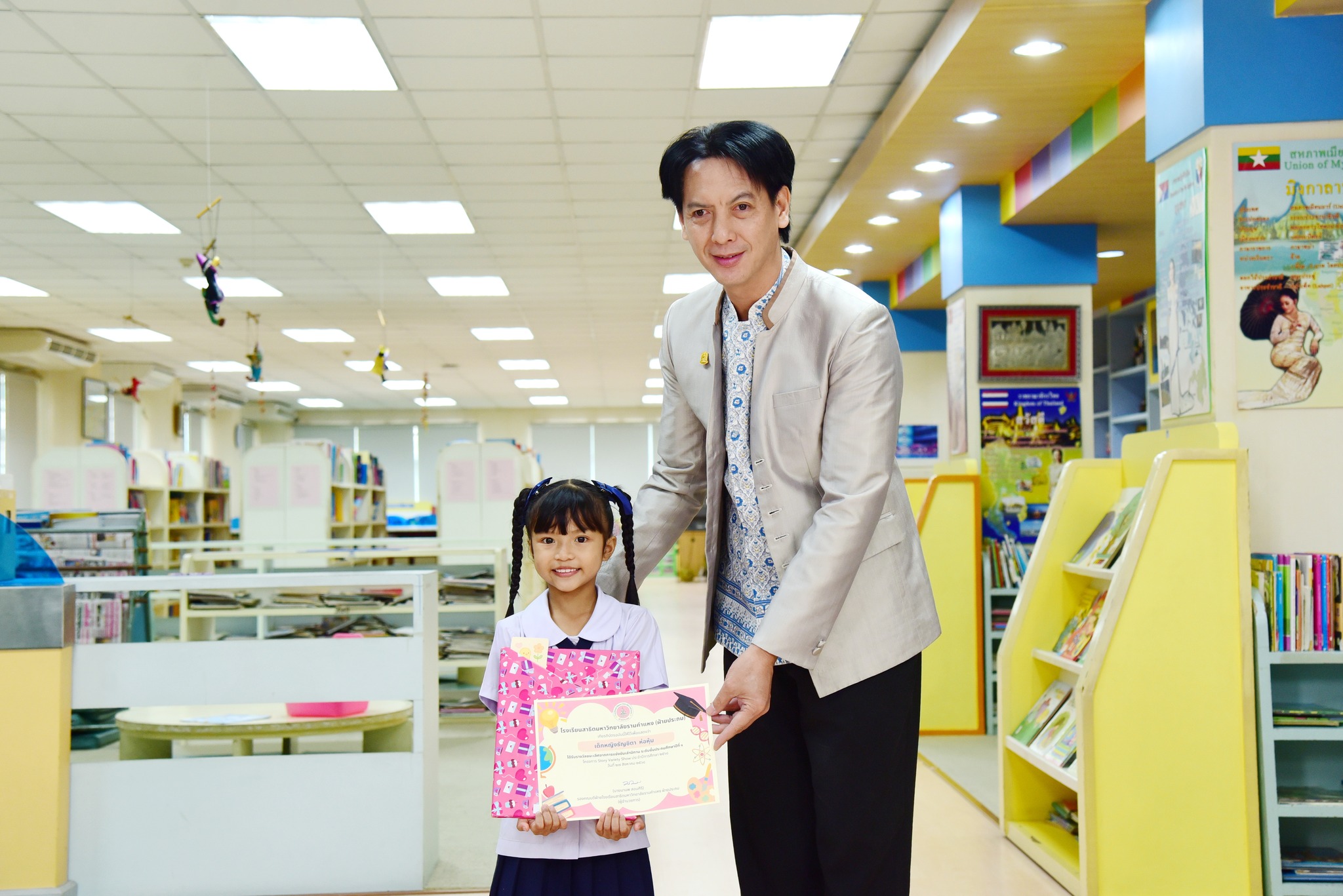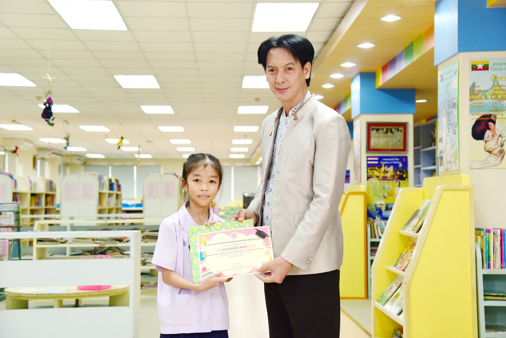 มอบประกาศนียบัตรและรางวัลให้แก่นักเล่านนิทานประจำภาคเรียนนี้ในระดับประถมศึกษาตอนต้น