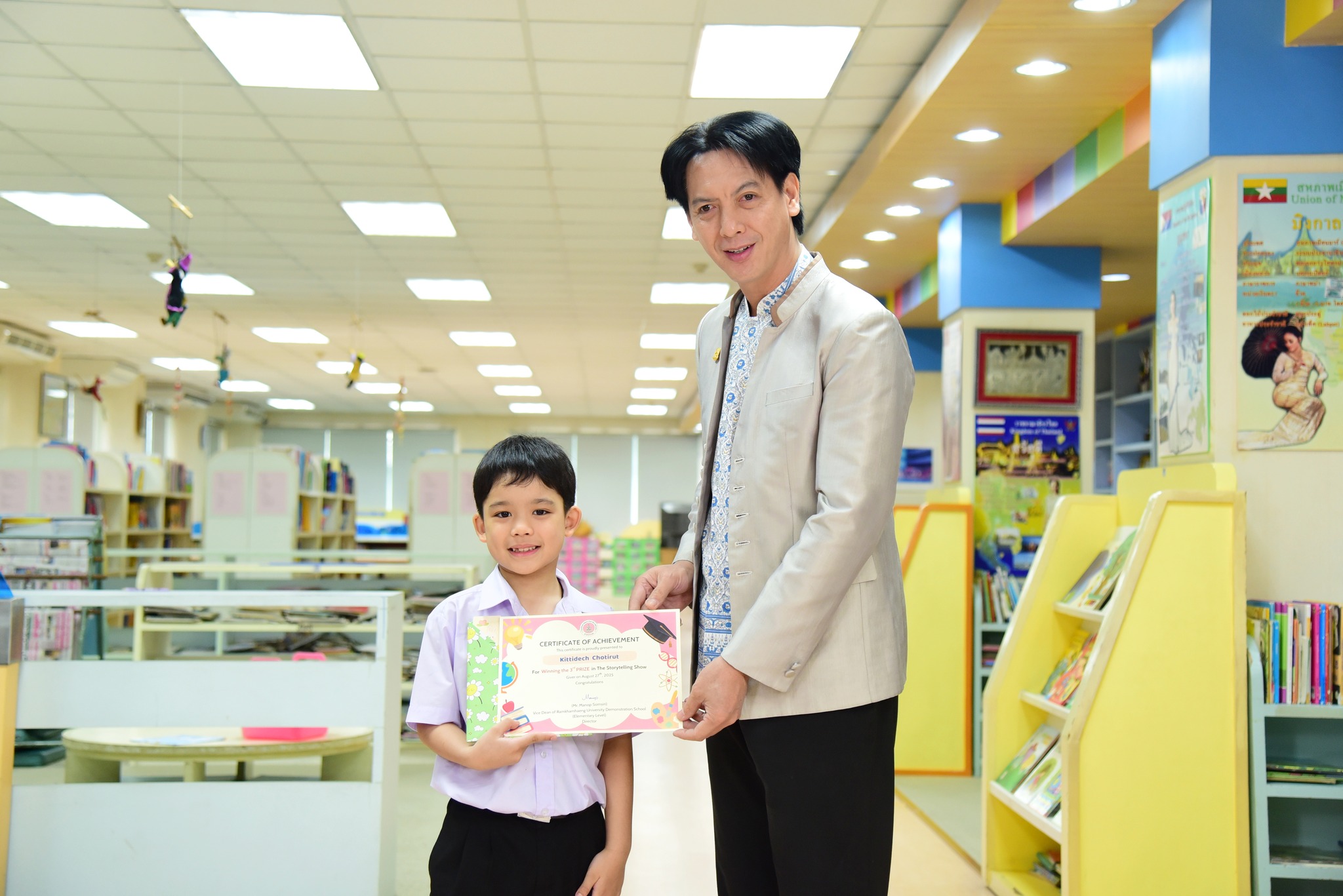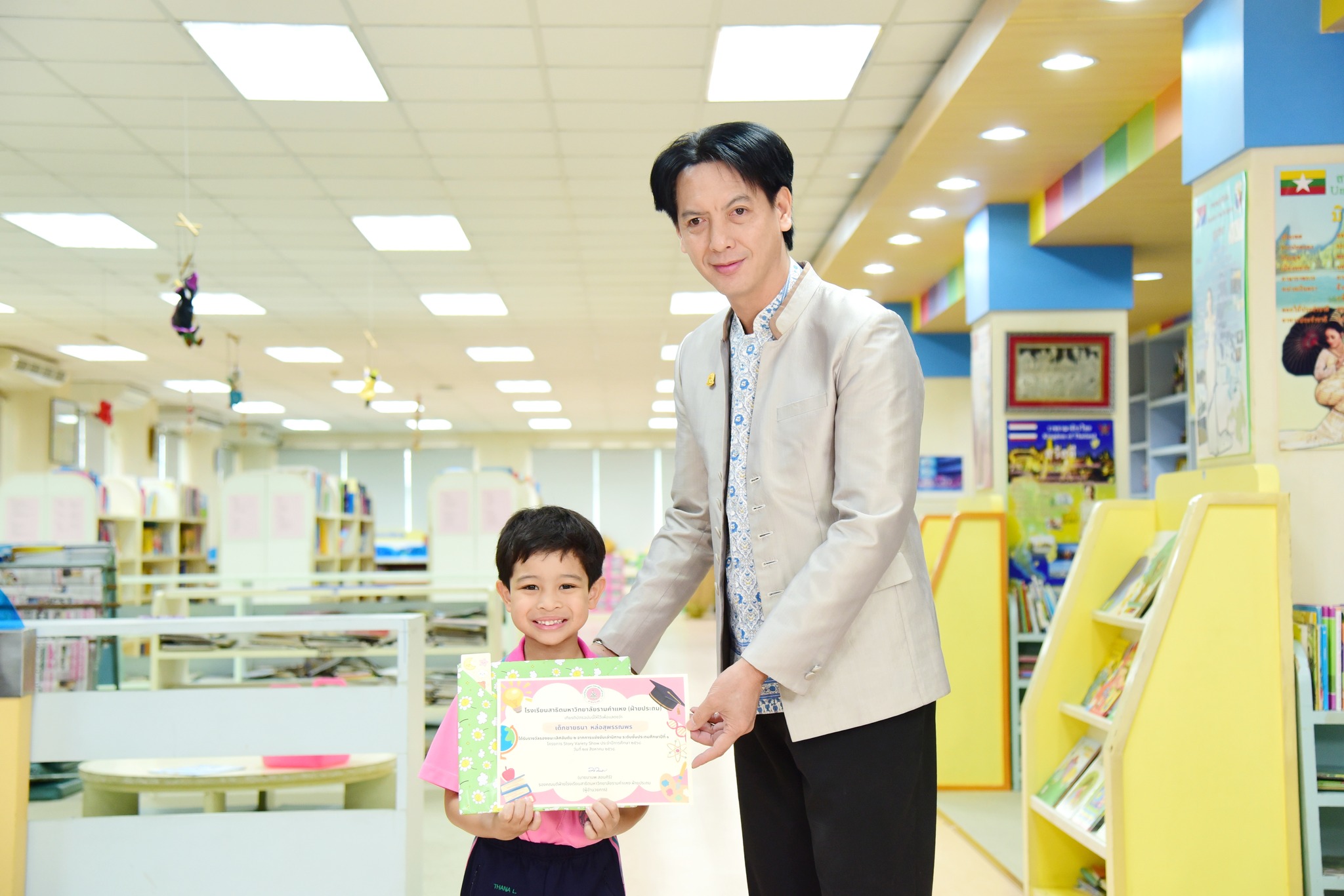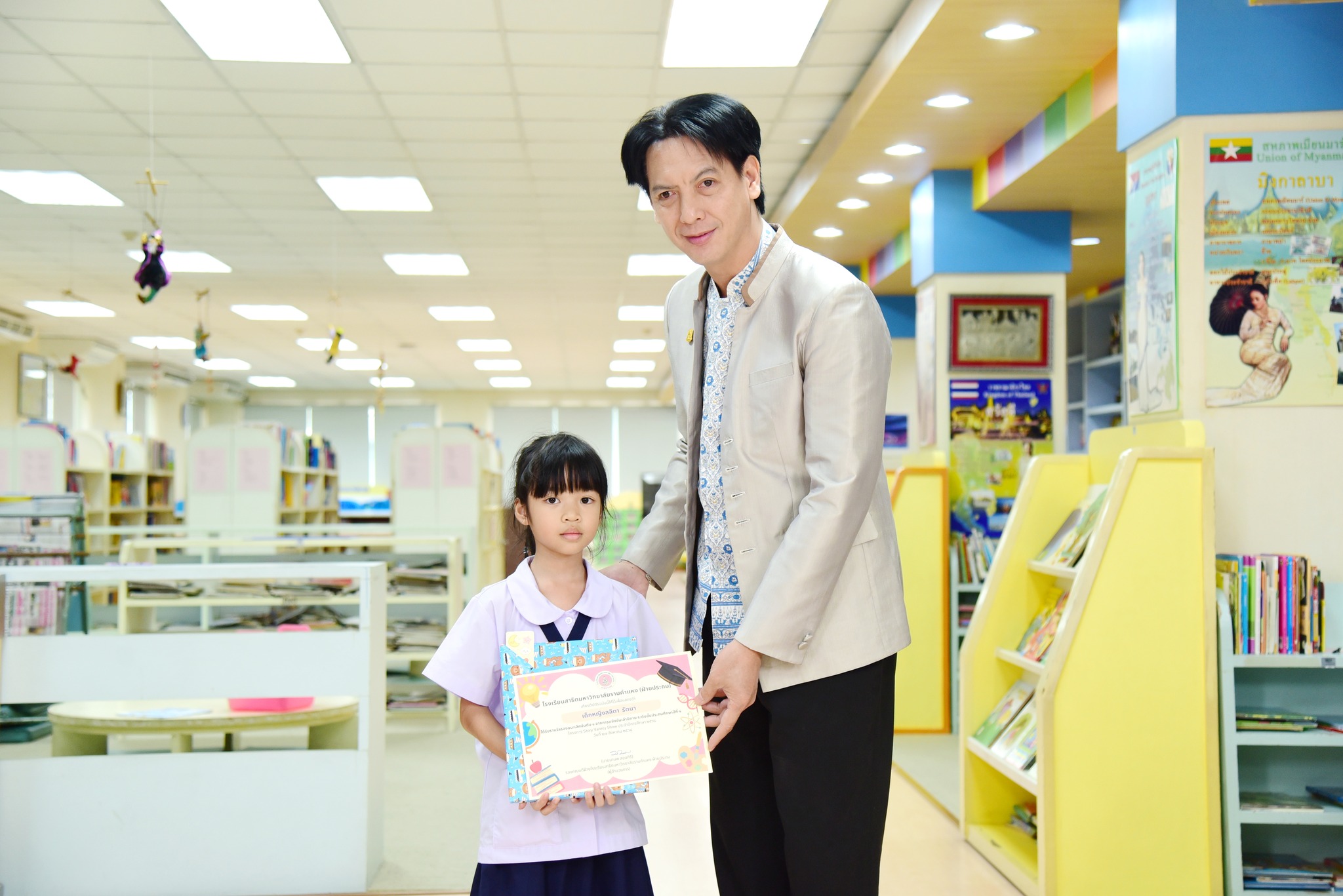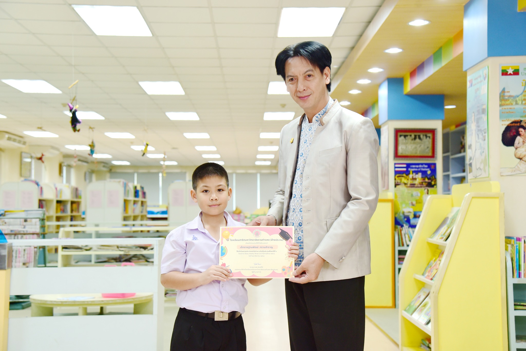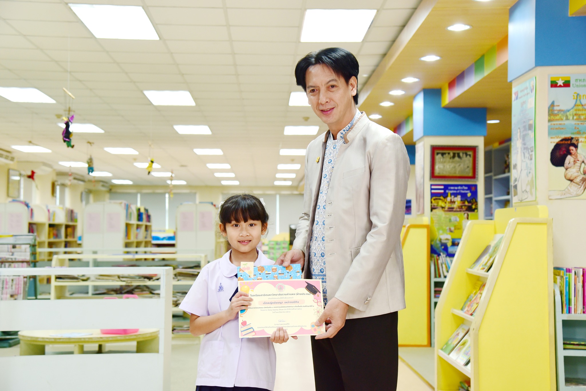 มอบประกาศนียบัตรและรางวัลให้แก่นักเล่านนิทานประจำภาคเรียนนี้ในระดับประถมศึกษาตอนต้น