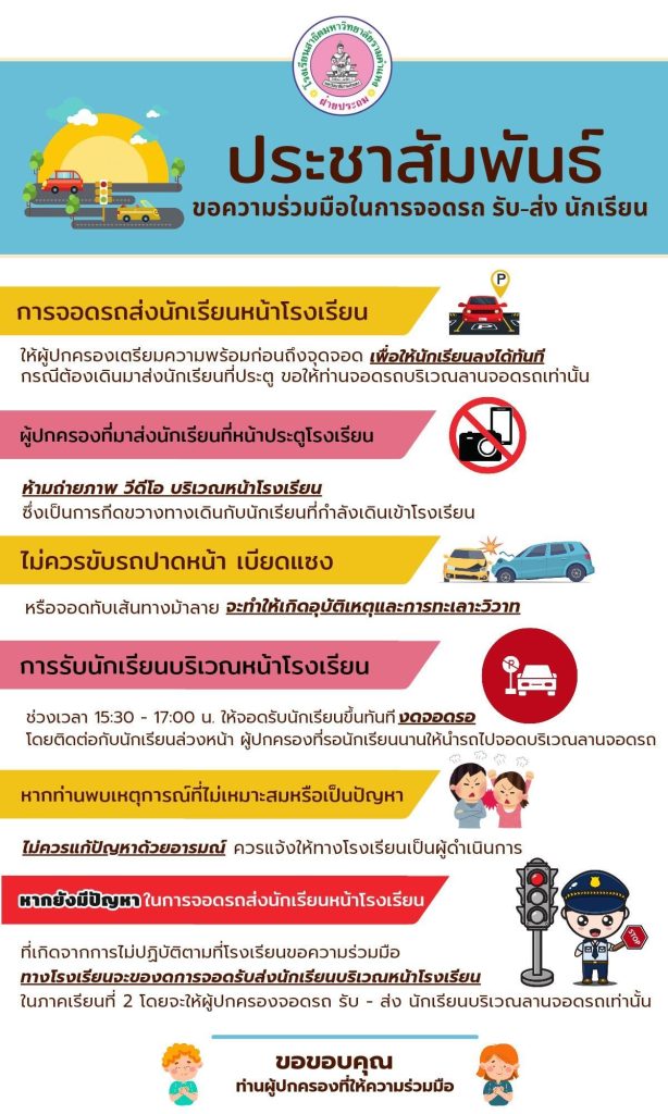 ในการจอดรถ รับ-ส่งนักเรียน บริเวณหน้าโรงเรียน