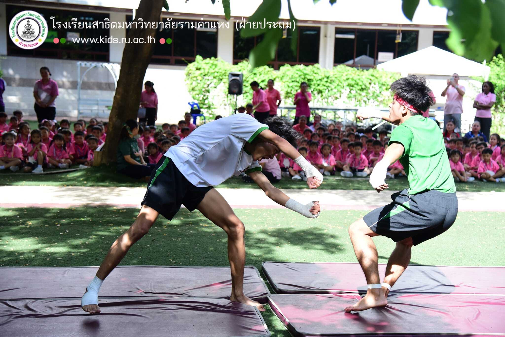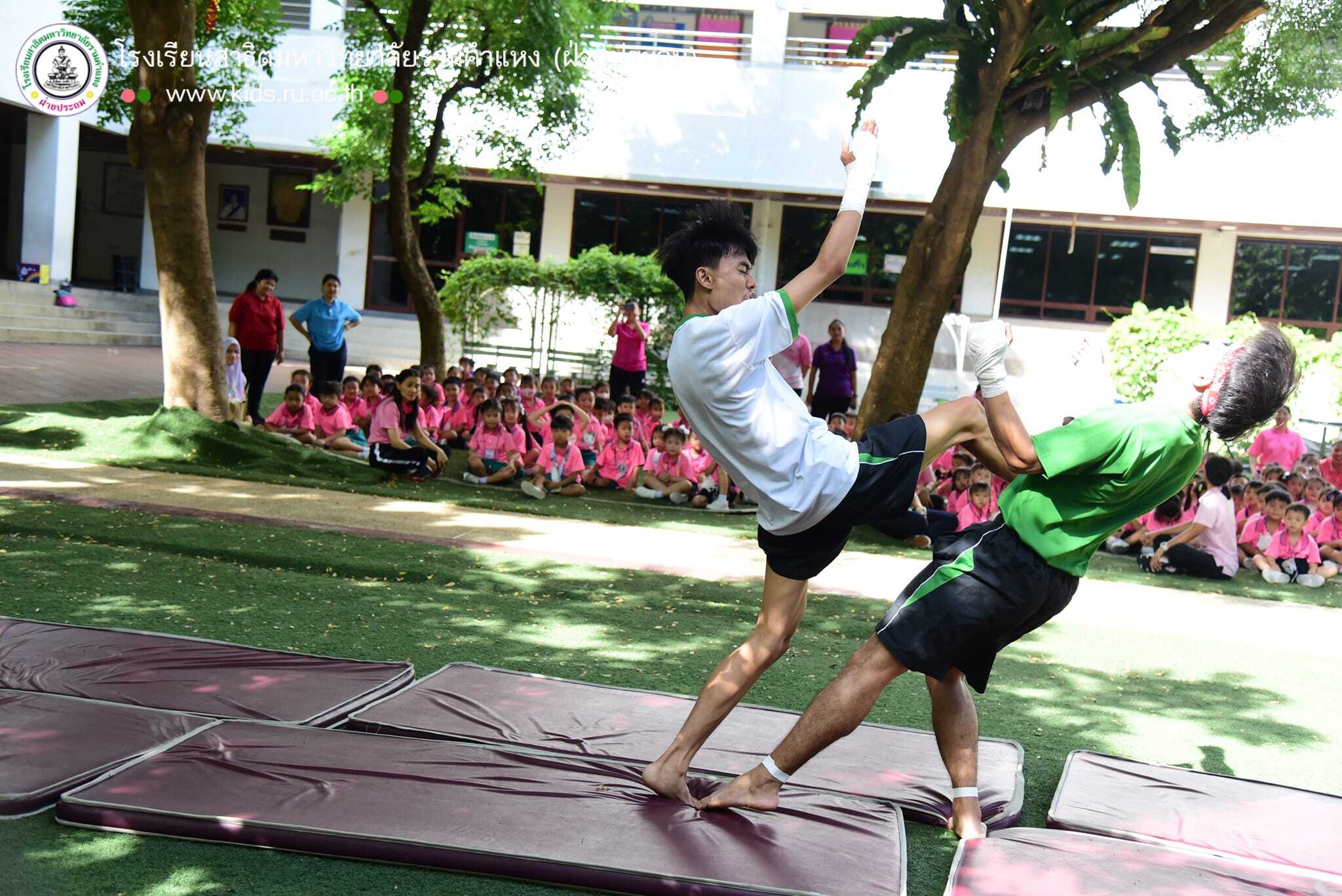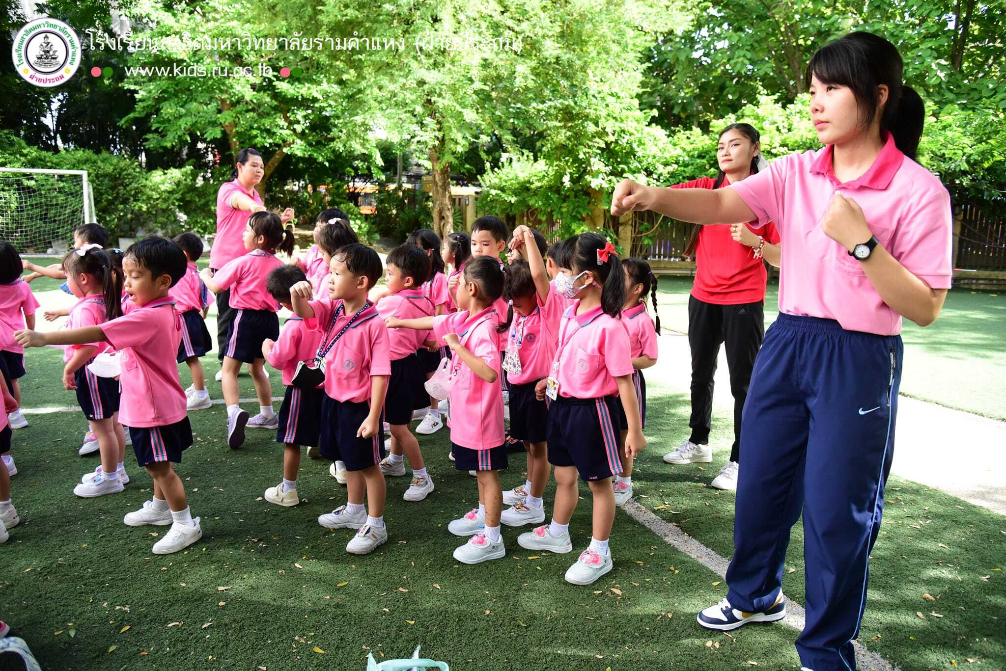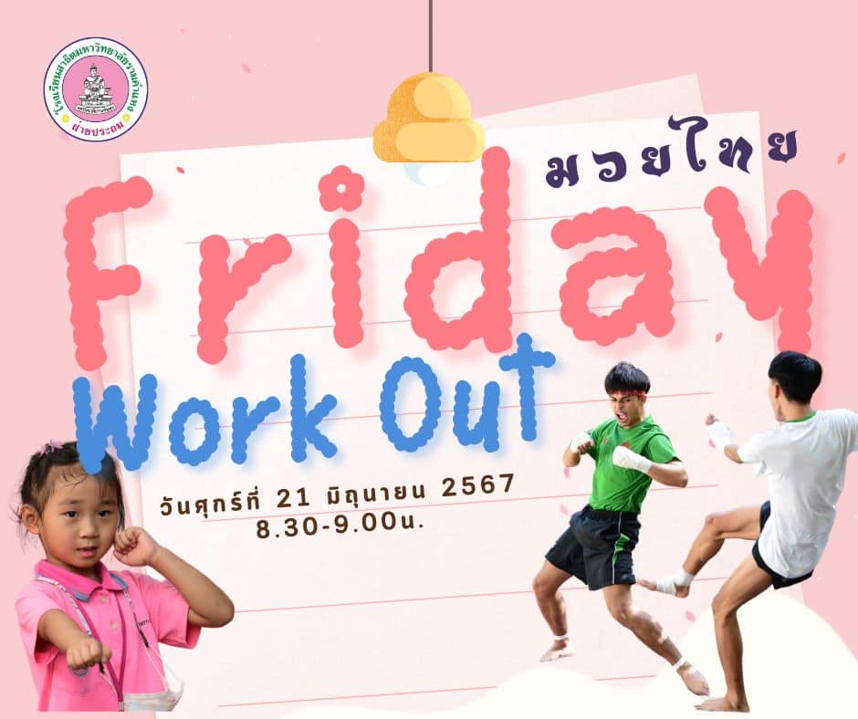 วันศุกร์ที่ 21 มิถุนายน 2567 ฝ่ายปฐมวัยจัดกิจกรรม “มวยไทย” ในโครงการ “Friday work out” เด็กๆ ได้ออกกำลังกาย พร้อมเรียนรู้ท่าทาง และอาวุธต่างๆ ของมวยไทย วันนี้เด็กๆโชคดีได้เรียนรู้จากนักศึกษาฝึกสอนภาควิชาพลานามัยมาเป็นวิทยากรแนะนำ และสาธิตการต่อสู้ให้ชมกันก่อนจบกิจกรรมวิทยากรได้ชวนเด็กๆ สัญญากันว่าจะไม่ใช้แม่ไม้มวยไทยในทางที่ผิดไปทำร้ายเพื่อนๆ