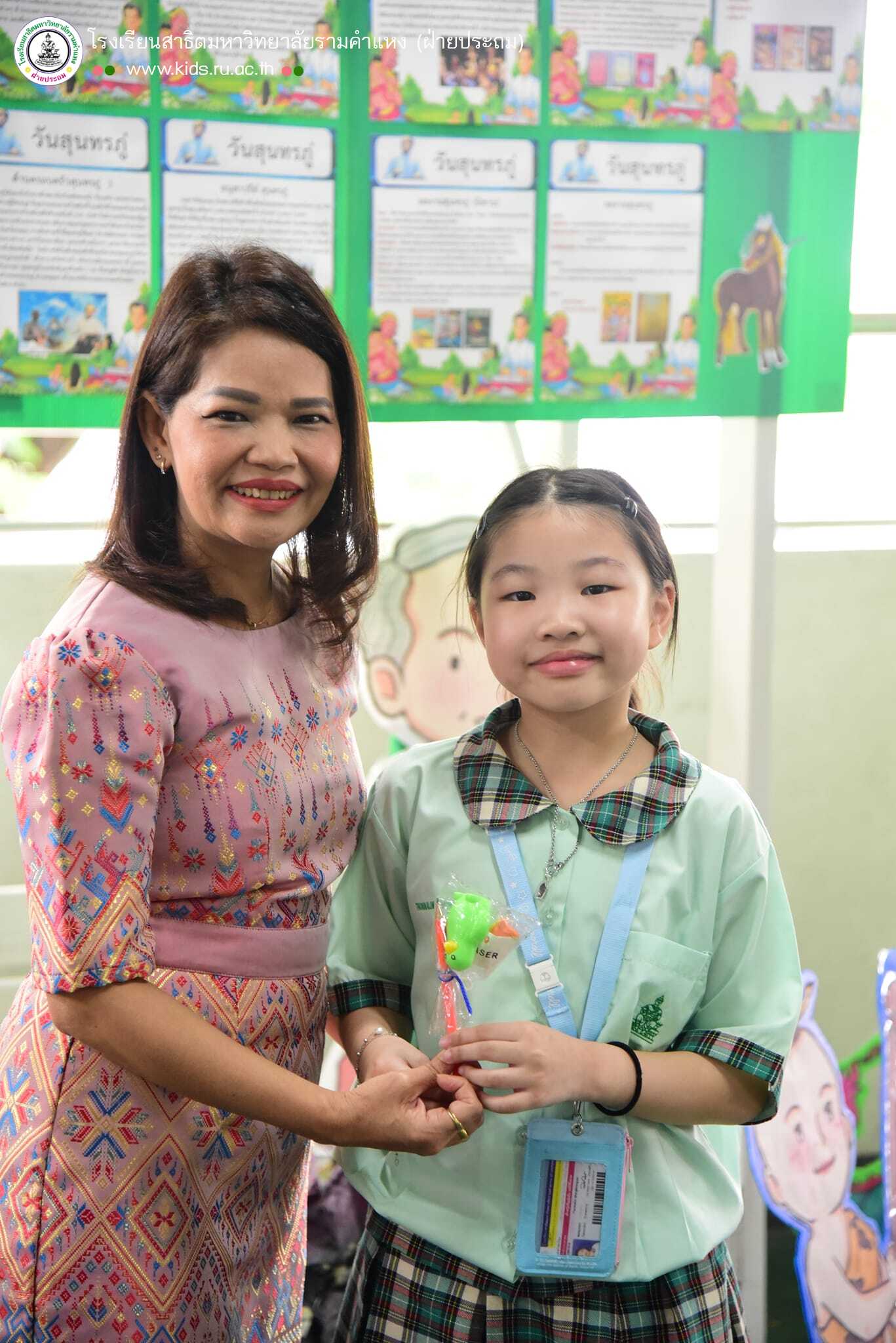 วันพุธที่ 26 มิถุนายน 2567 อาจารย์เสาวณีย์ แก้ววิฑูรย์ หัวหน้ากลุ่มสาระการเรียนรู้วิชาภาษาไทย จัดกิจกรรมตอบคำถาม เกี่ยวกับประวัติ “สุนทรภู่” ครูกวี โดยกลุ่มสาระการเรียนรู้วิชาภาษาไทย โดยมีอาจารย์สิริมงคล สุวรรณผา รองผู้อำนวยการฝ่ายกิจการนักเรียน เป็นผู้มอบรางวัล โดยการจับสลากจากคำตอบที่ถูกต้องทั้งหมด ของนักเรียนที่เข้าร่วมตอบคำถาม และมอบรางวัล ณ บริเวณลานอเนกประสงค์ชั้น 3