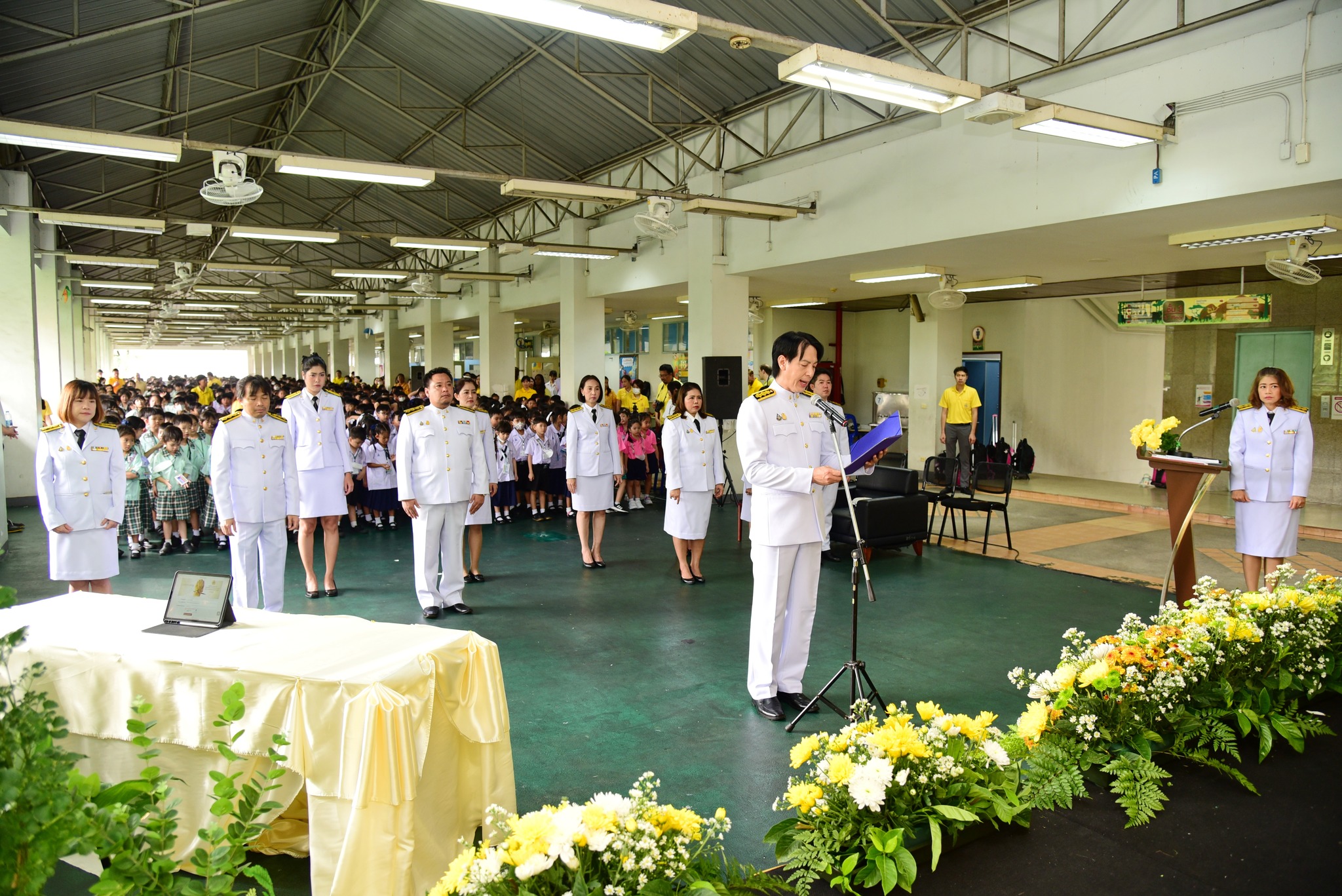 โดยในพิธี อาจารย์มานพ สอนศิริ ประธานในพิธี เปิดกรวยกระทงดอกไม้ธูปเทียนถวายสักการะหน้าพระบรมฉายาลักษณ์ พระบาทสมเด็จพระเจ้าอยู่หัว และกราบบังคมทูลถวายพระพรชัยมงคล ประธานในพิธี พร้อมด้วยคณะผู้บริหาร คณาจารย์ เจ้าหน้าที่ และนักเรียน