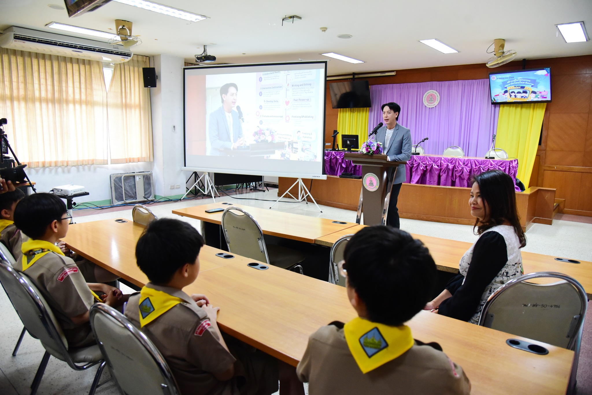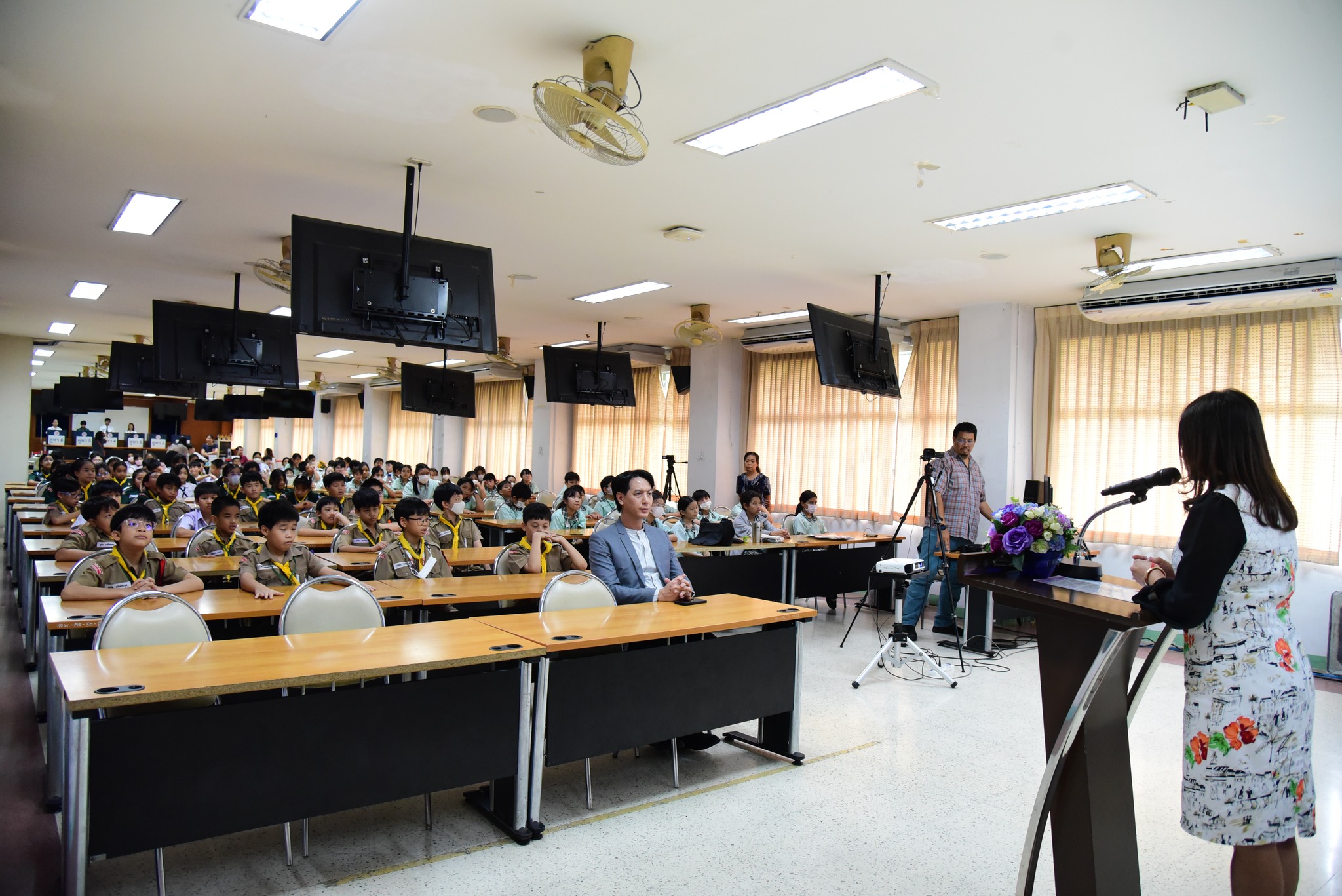 โดยมีอาจารย์มานพ สอนศิริ รองคณบดีฝ่ายโรงเรียนสาธิตมหาวิทยาลัยรามคำแหง ฝ่ายประถม (ผู้อำนวยการ)