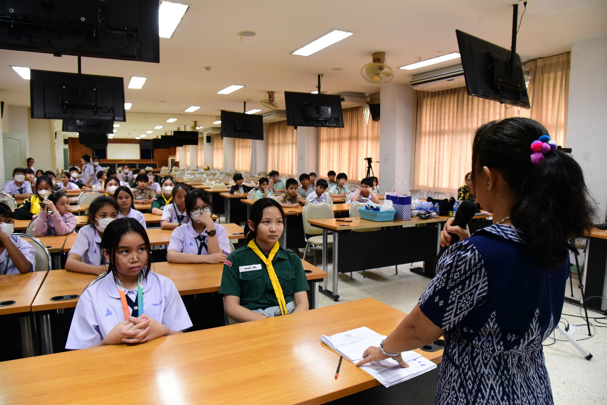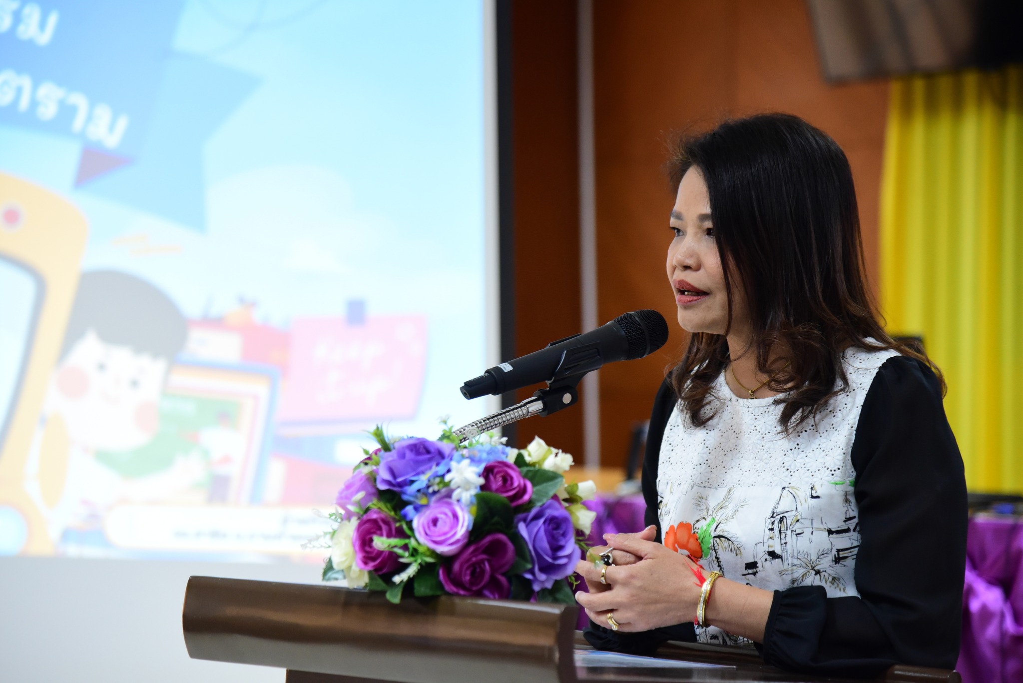 ผศ.สิริมงคล สุวรรณผา รองผู้อำนวยการฝ่ายกิจการนักเรียน กล่าวรายงานวัตถุประสงค์การจัดโครงการฯ