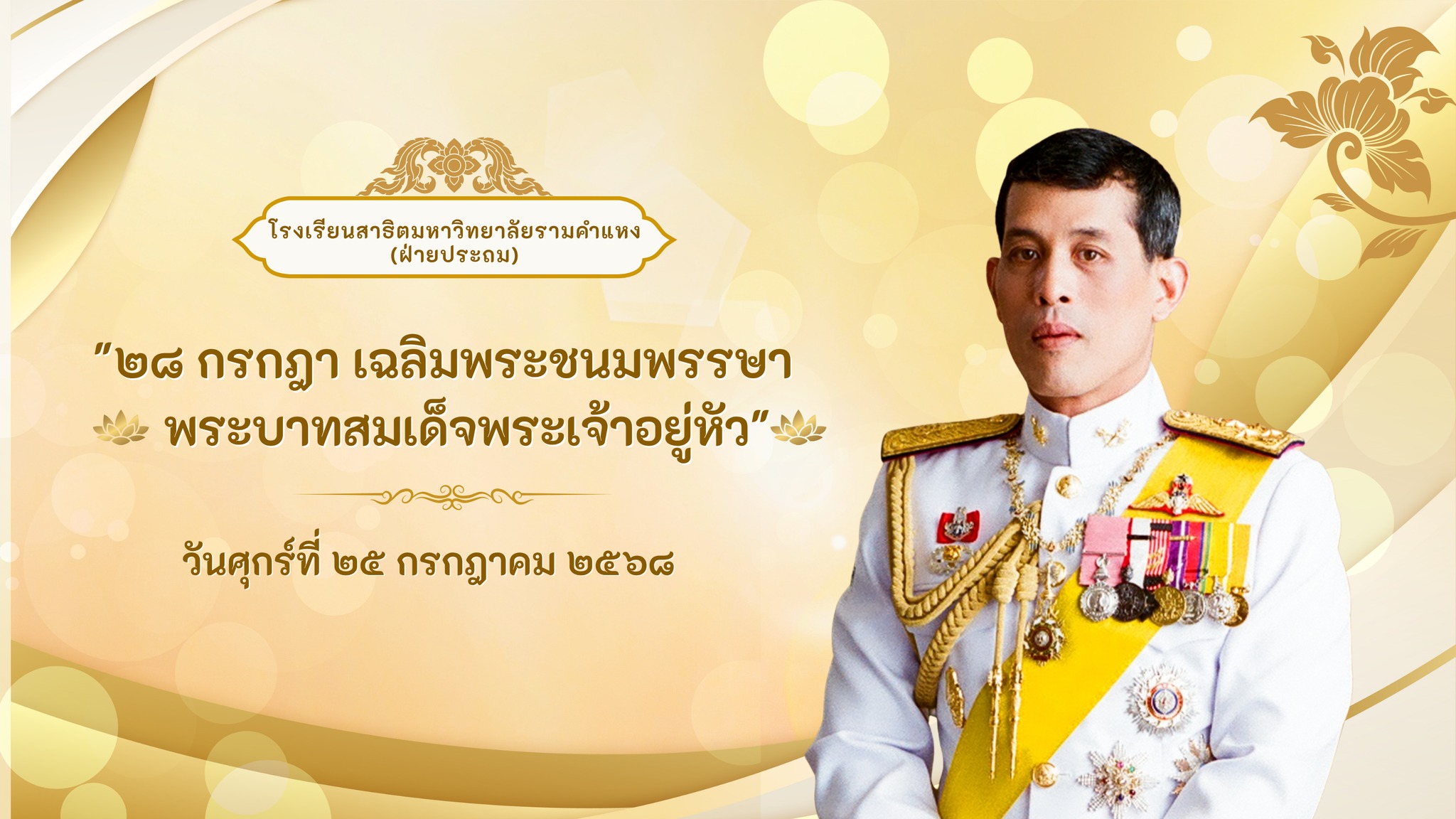 พระบาทสมเด็จพระเจ้าอยู่หัว 28 กรกฎาคม วันศุกร์ที่ 25 กรกฎาคม 2568