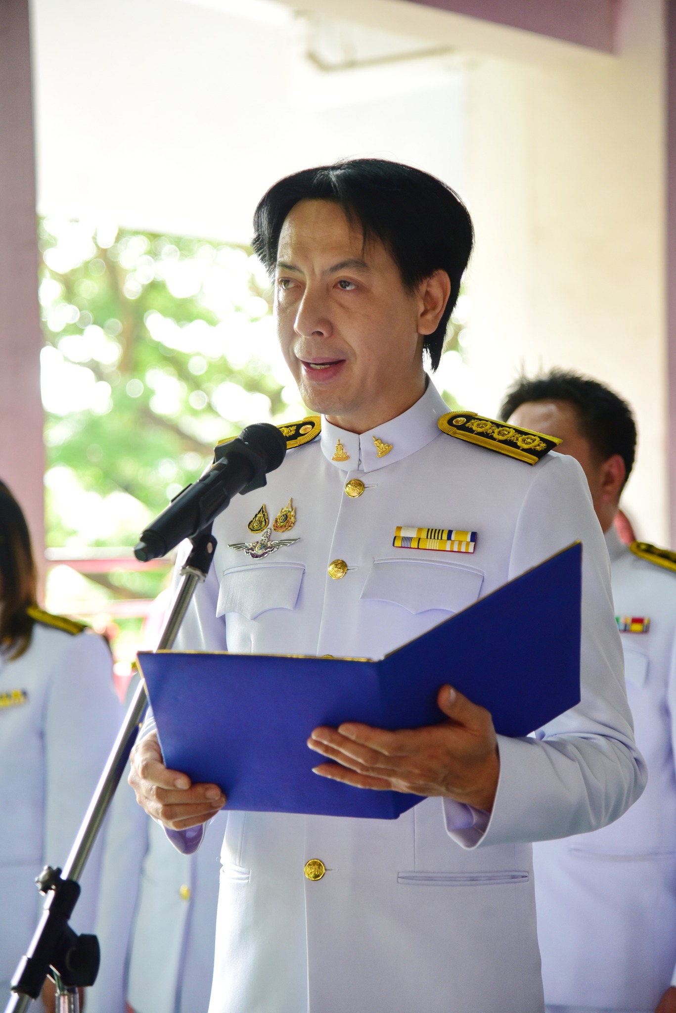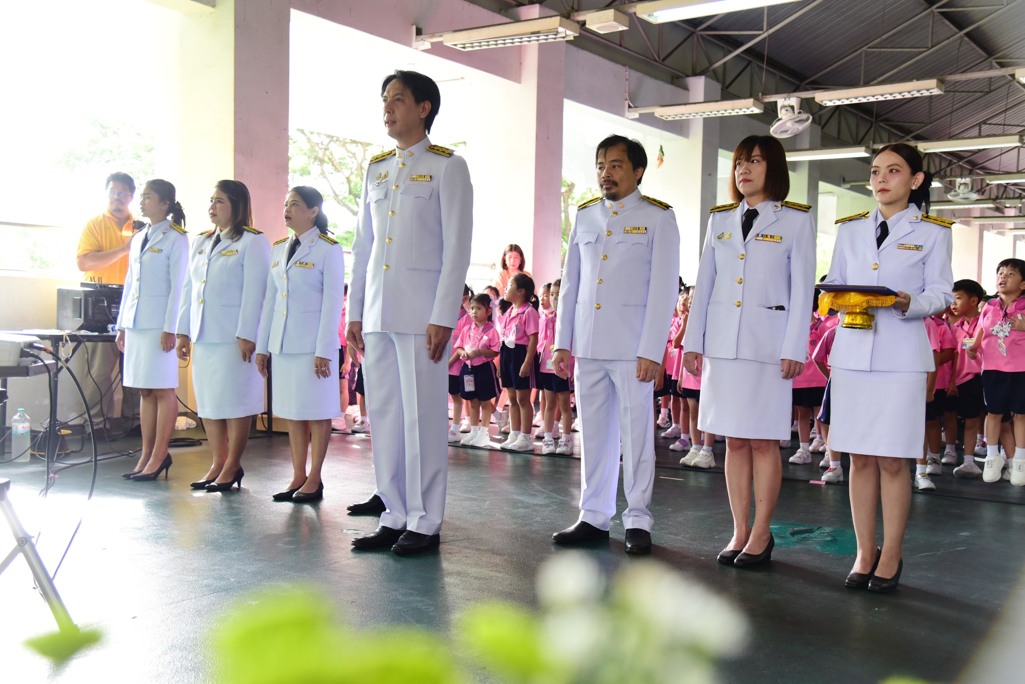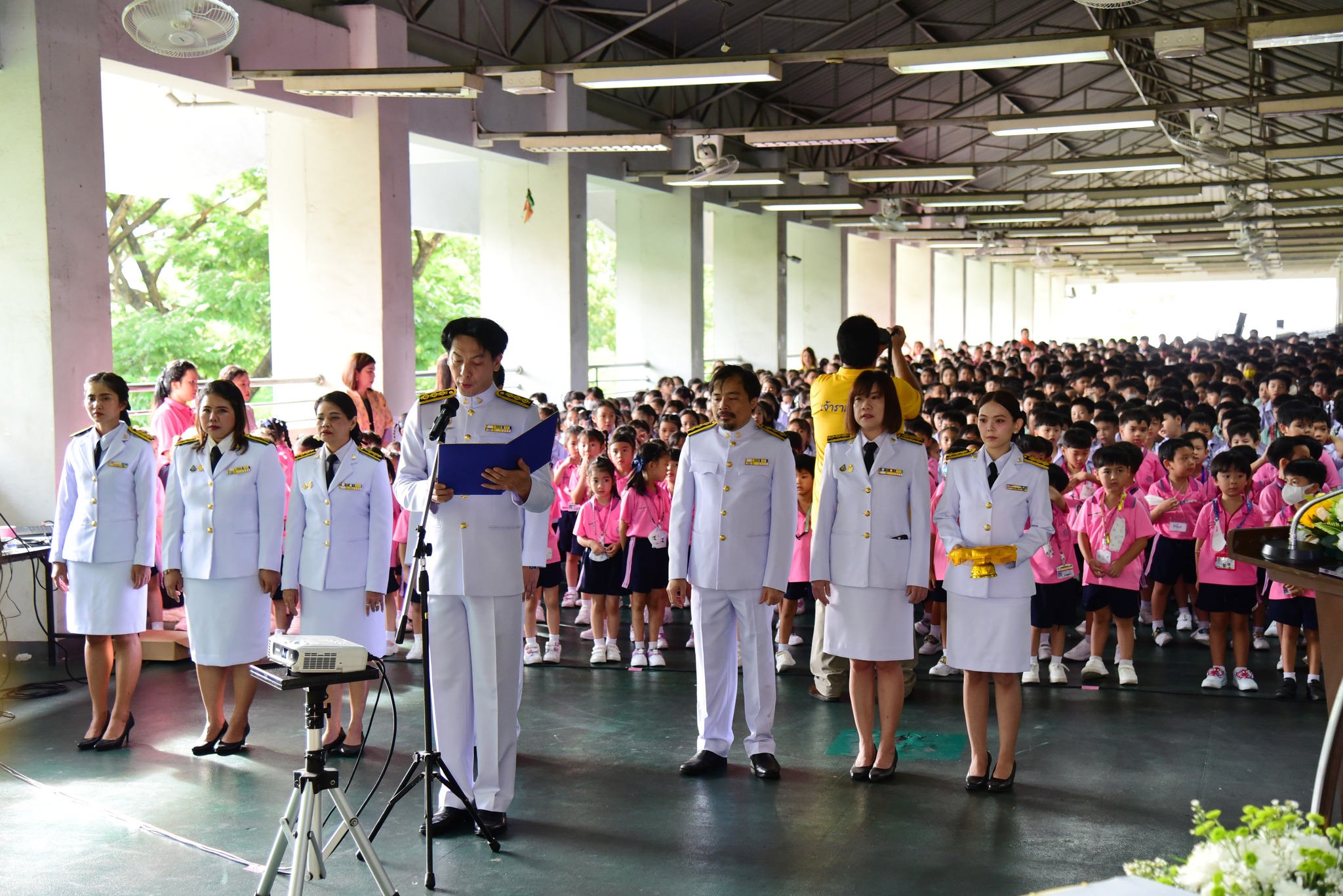 อาจารย์มานพ สอนศิริ รองคณบดีฝ่ายโรงเรียนสาธิตรามคำแหง ฝ่ายประถม (ผู้อำนวยการ) เป็นประธานในพิธีฯ