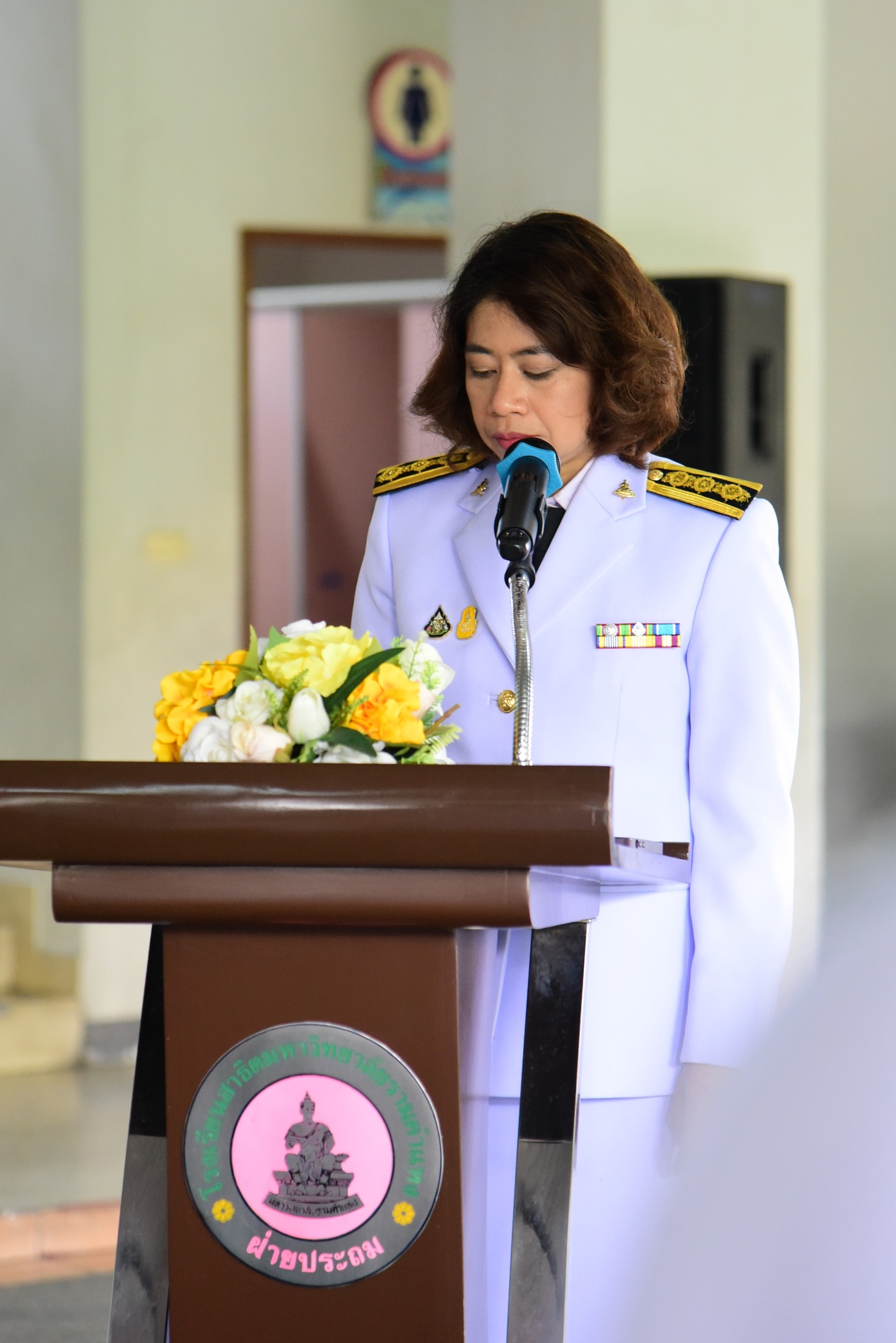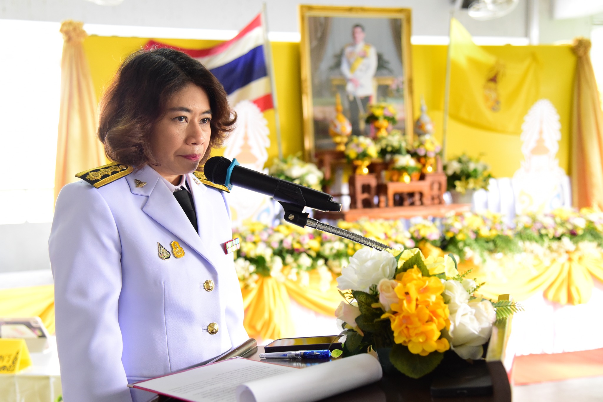 พร้อมด้วยคณะผู้บริหาร คณาจารย์ เจ้าหน้าที่ และนักเรียน เข้าร่วมพิธี โดยประธานในพิธีฯ เปิดกรวยกระทงดอกไม้ธูปเทียน