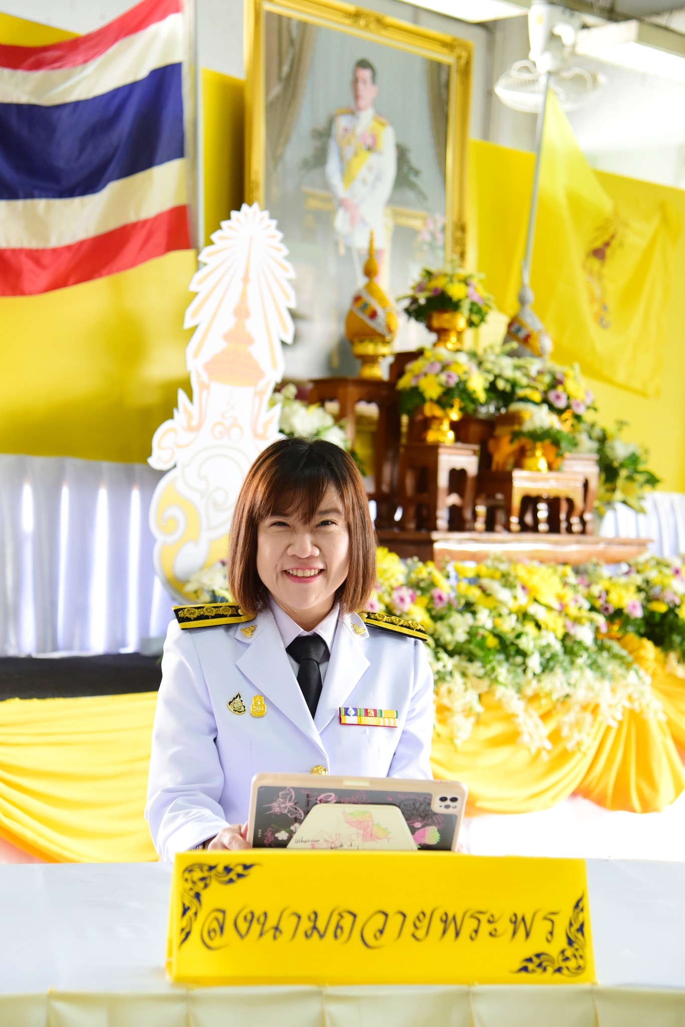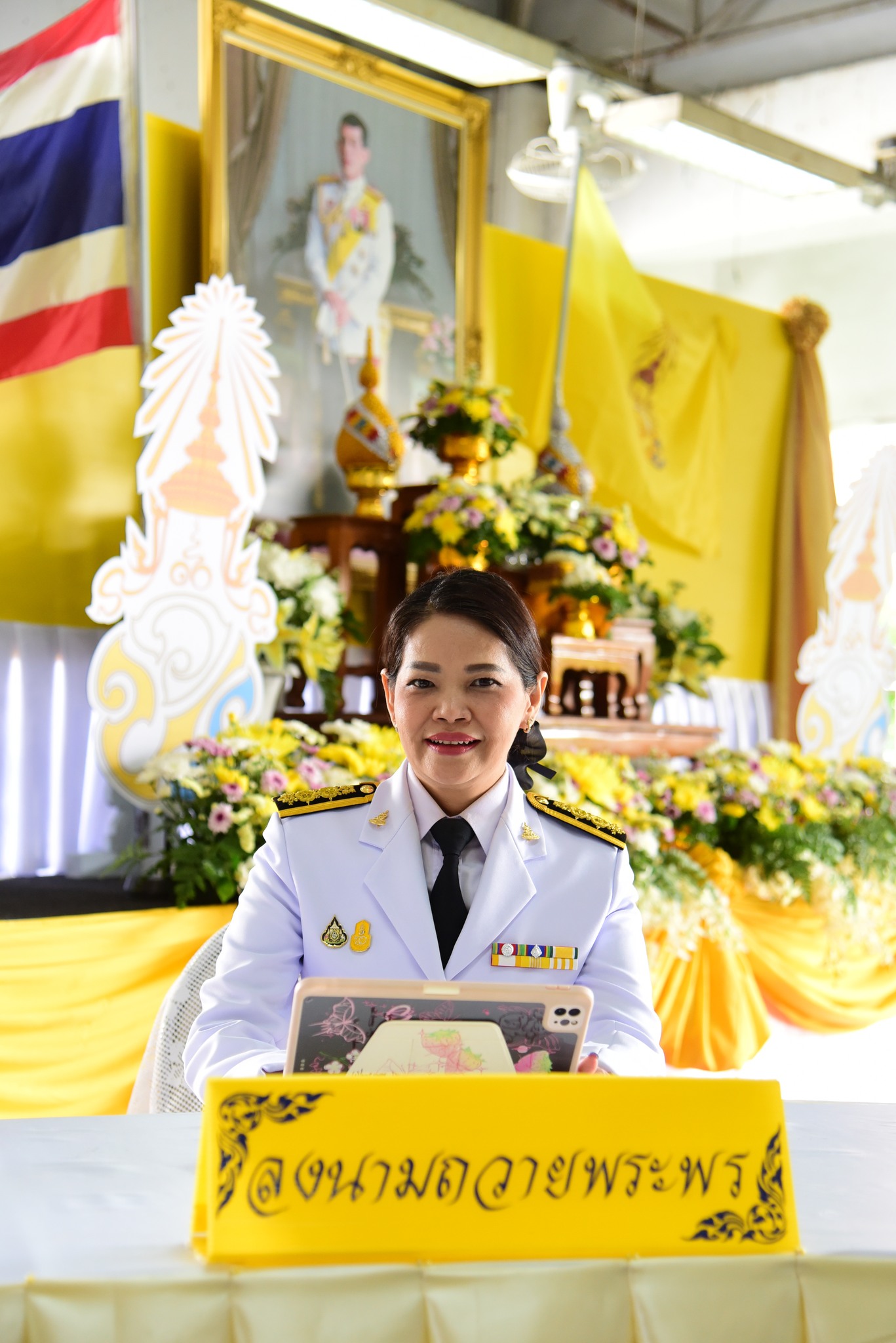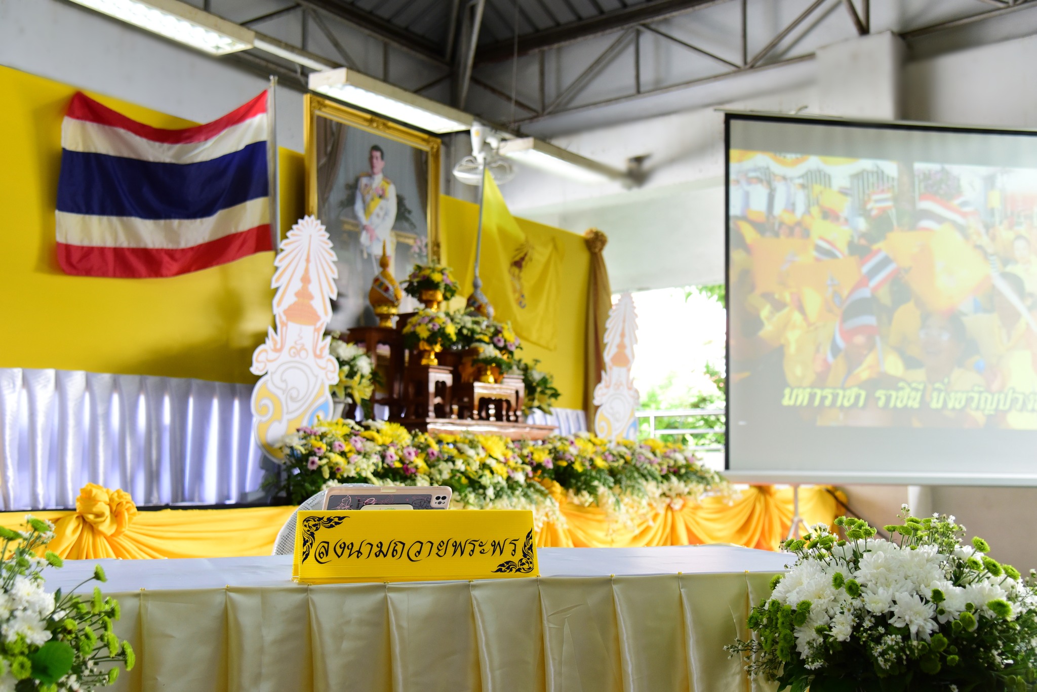 ในลำดับสุดท้ายประธานในพิธี พร้อมด้วยคณะผู้บริหาร ลงนามถวายพระพรชัยมงคลพระบาทสมเด็จพระเจ้าอยู่หัว ตามลำดับ
