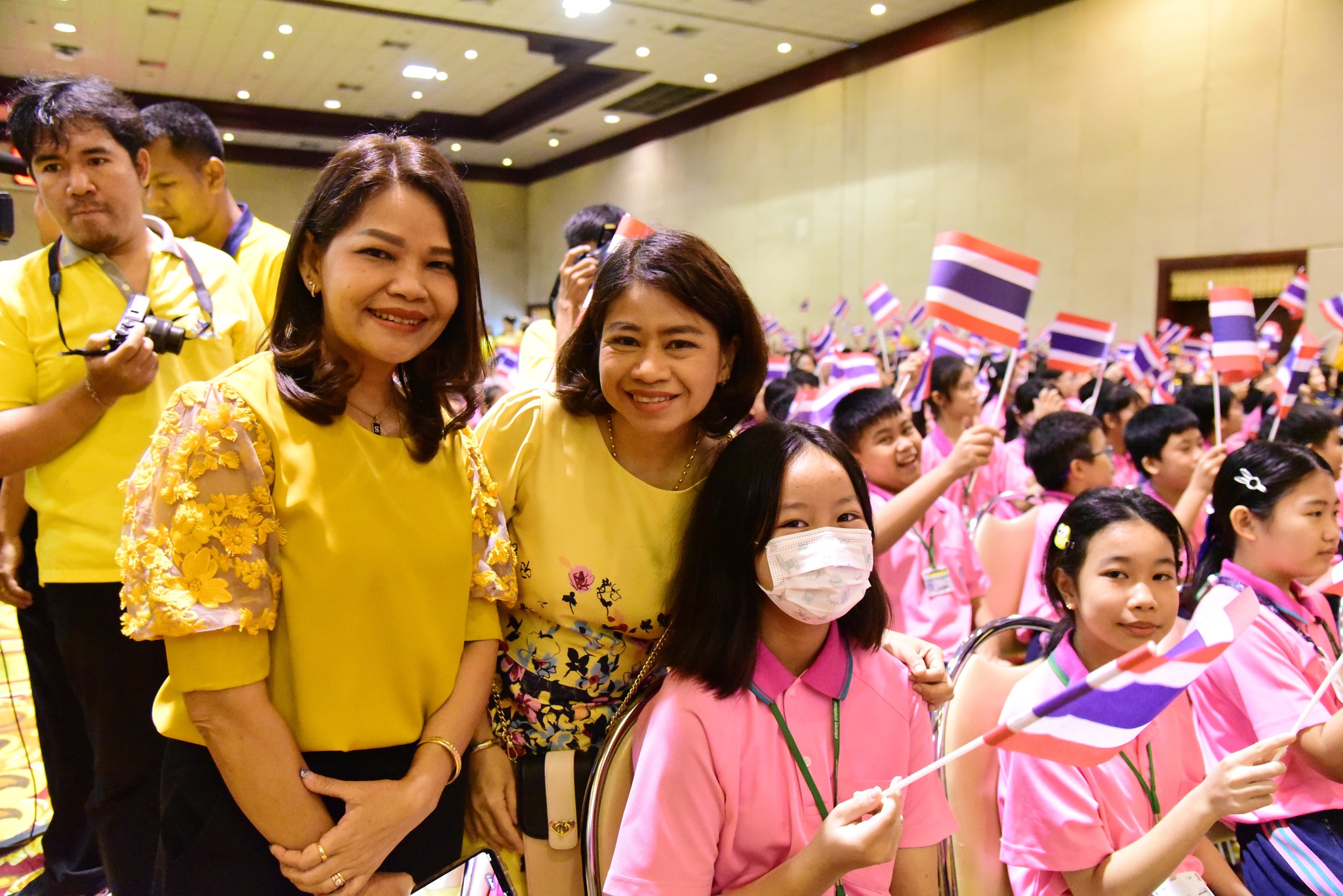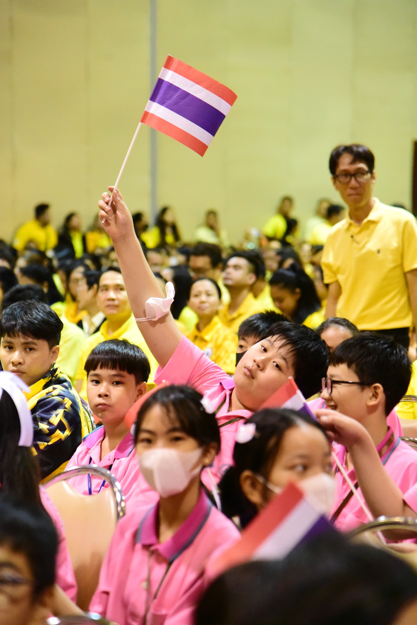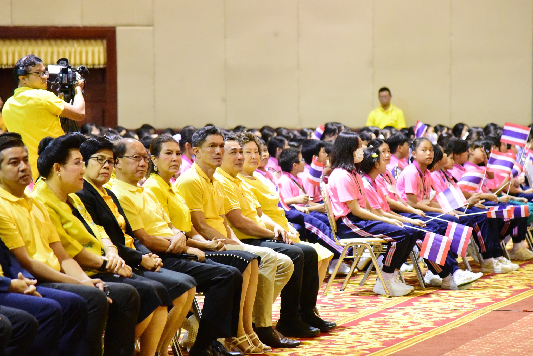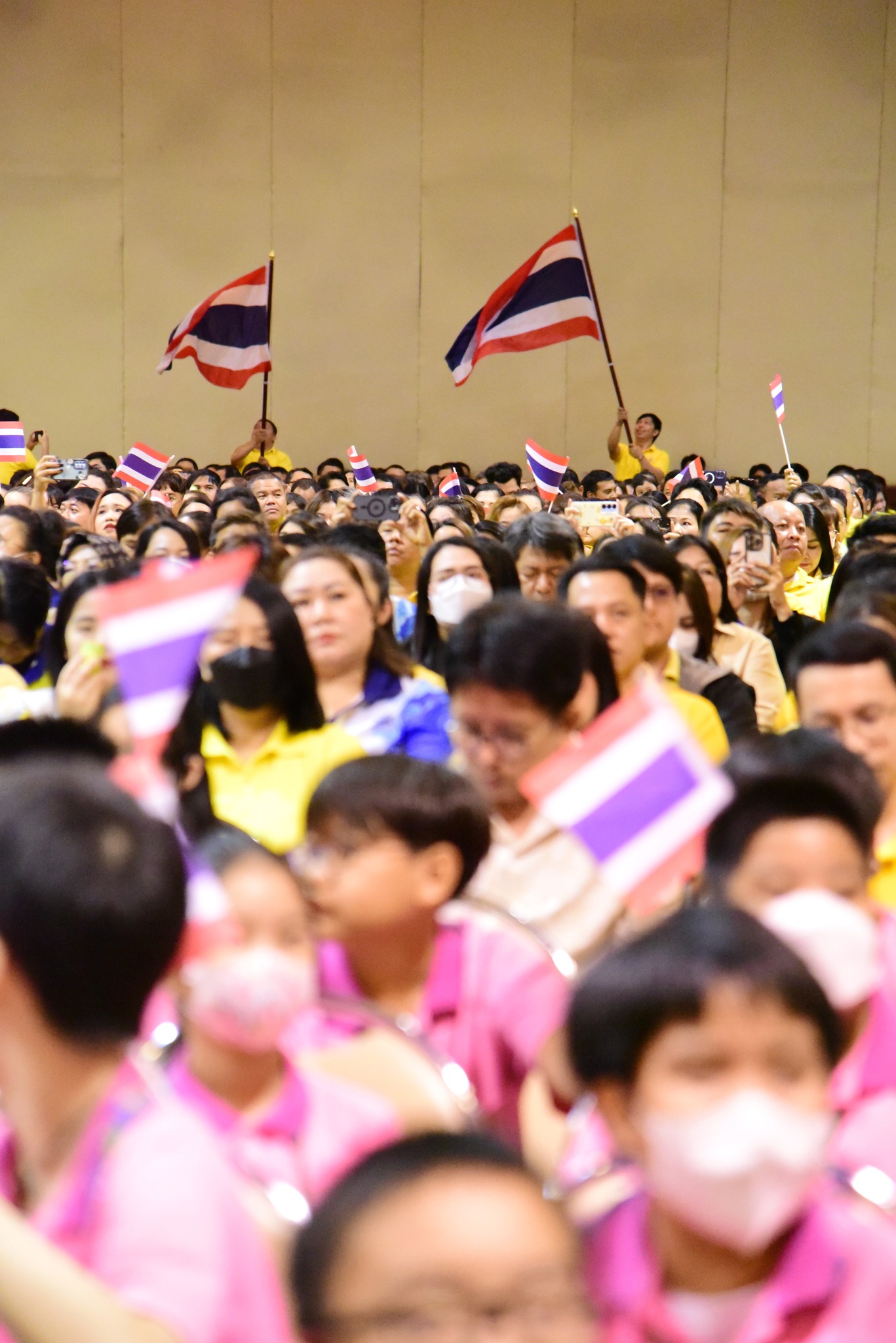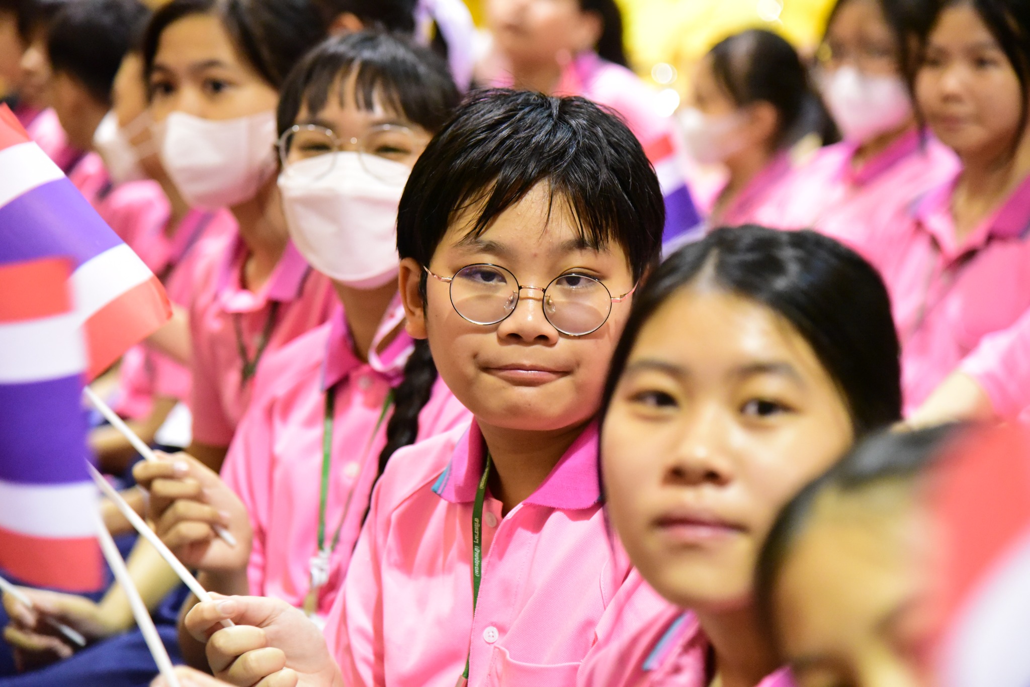 และนักเรียนโรงเรียนสาธิตมหาวิทยาลัยรามคำแหง ร่วมร้องเพลงชาติไทยเพื่อให้กำลังใจทหาร เจ้าหน้าที่ อาสาสมัคร
