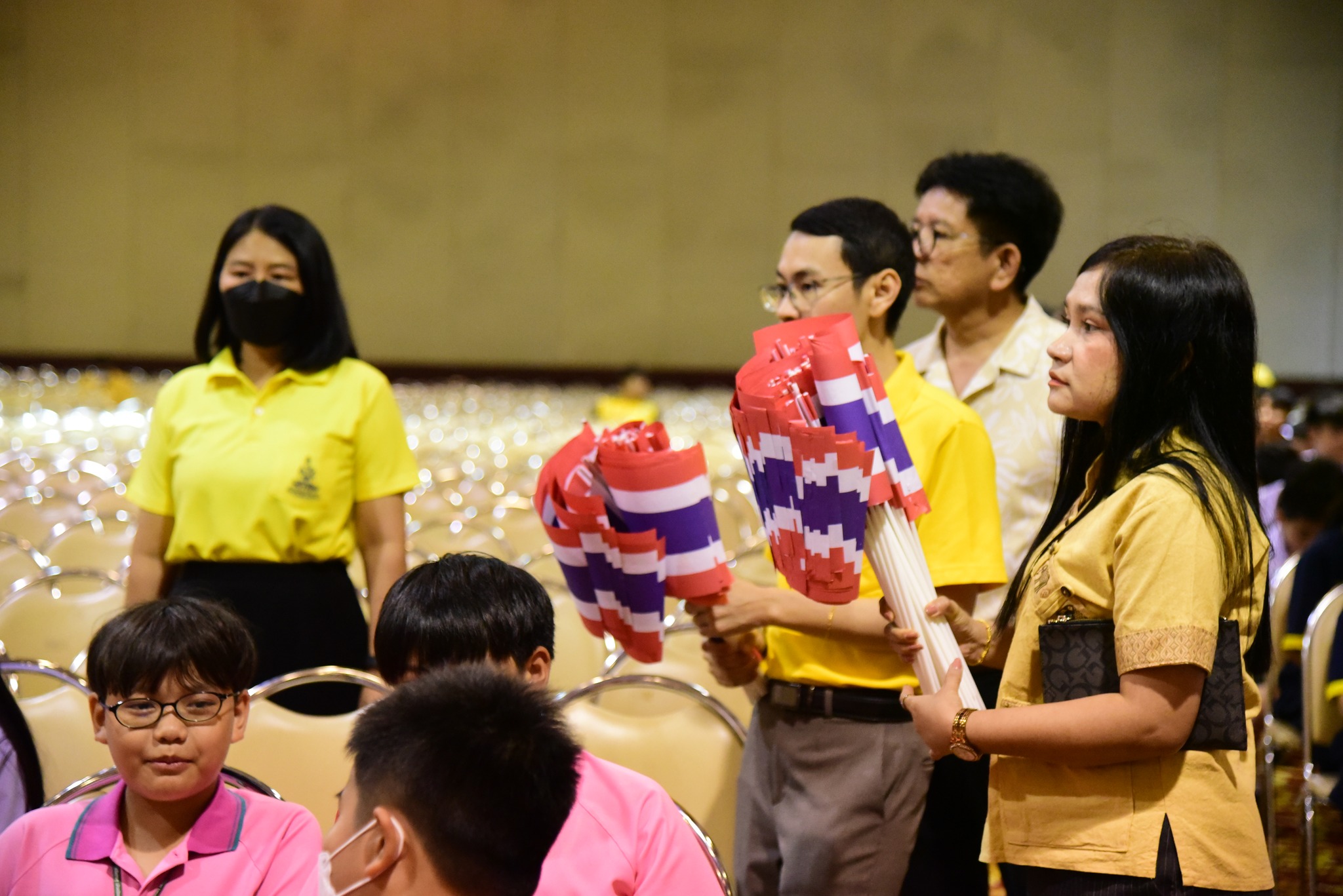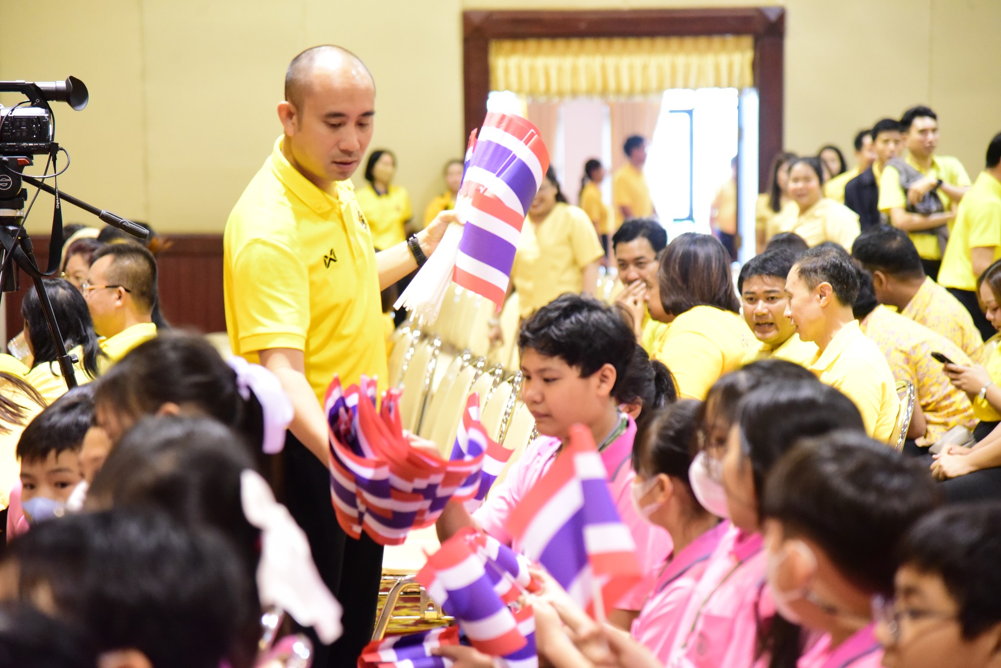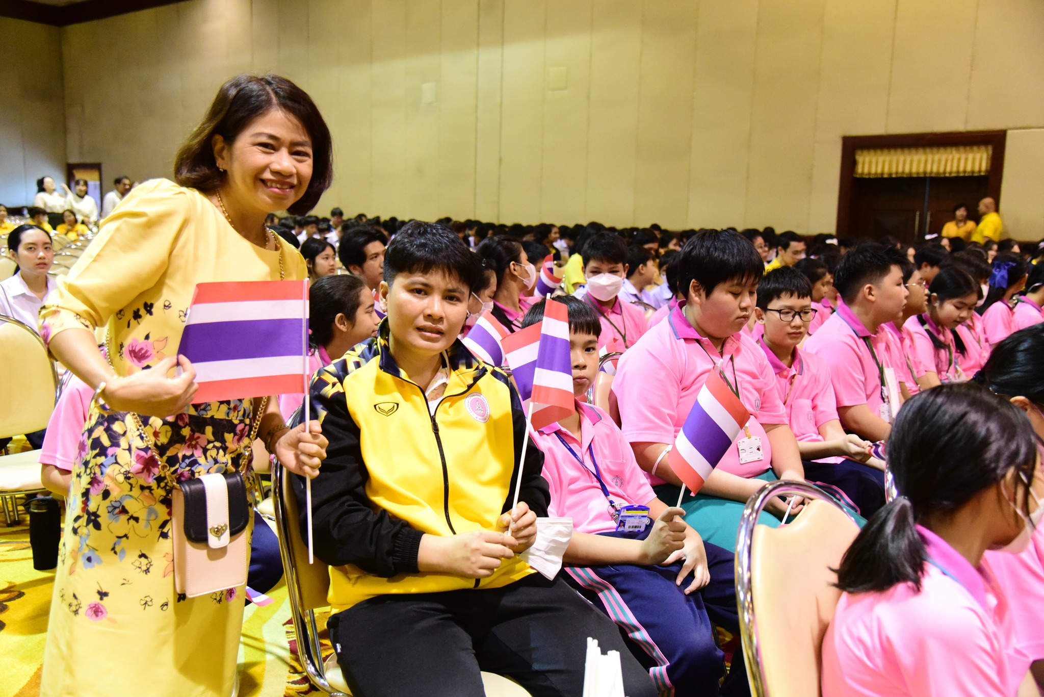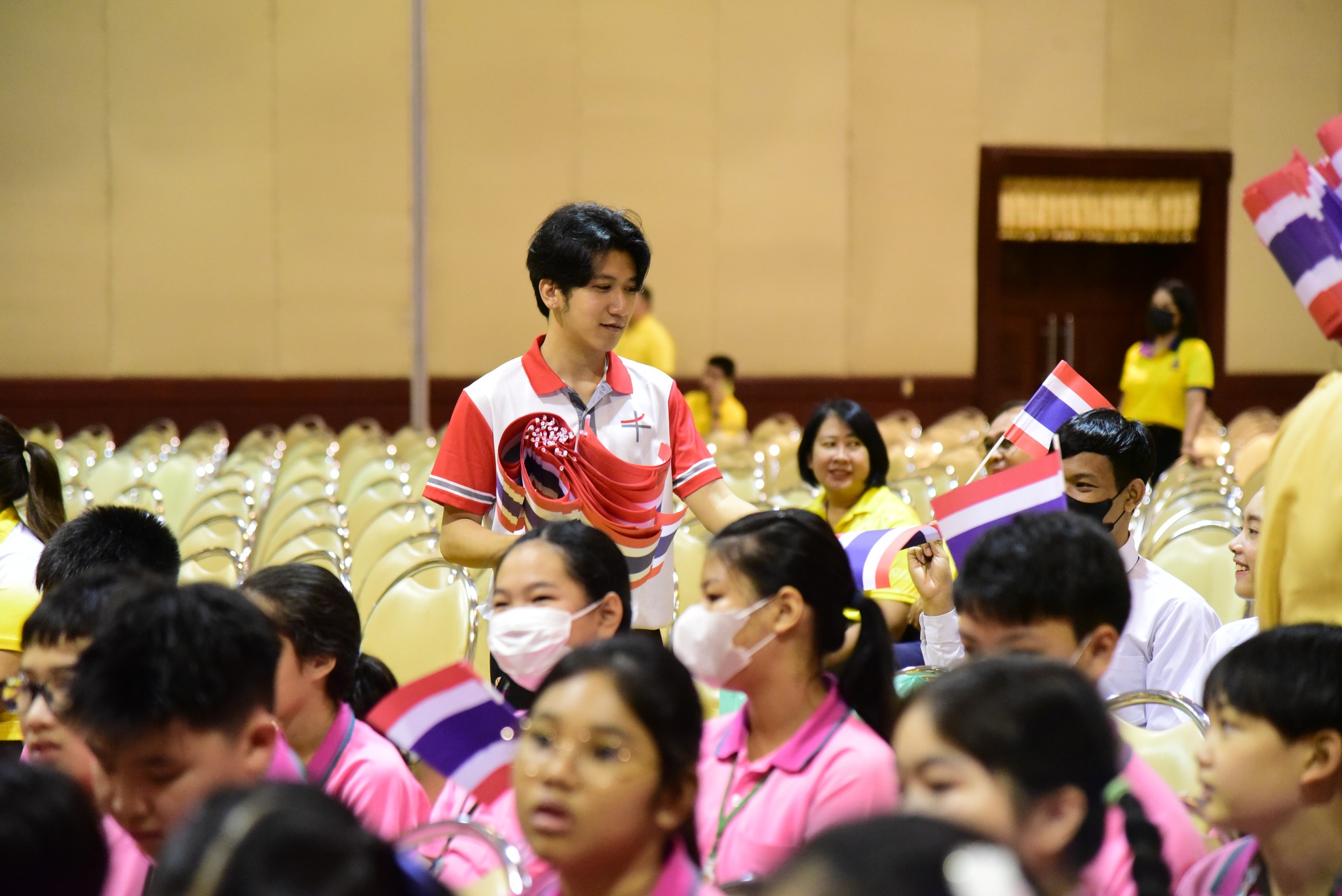 และนักเรียนโรงเรียนสาธิตมหาวิทยาลัยรามคำแหง ร่วมร้องเพลงชาติไทยเพื่อให้กำลังใจทหาร เจ้าหน้าที่ อาสาสมัคร