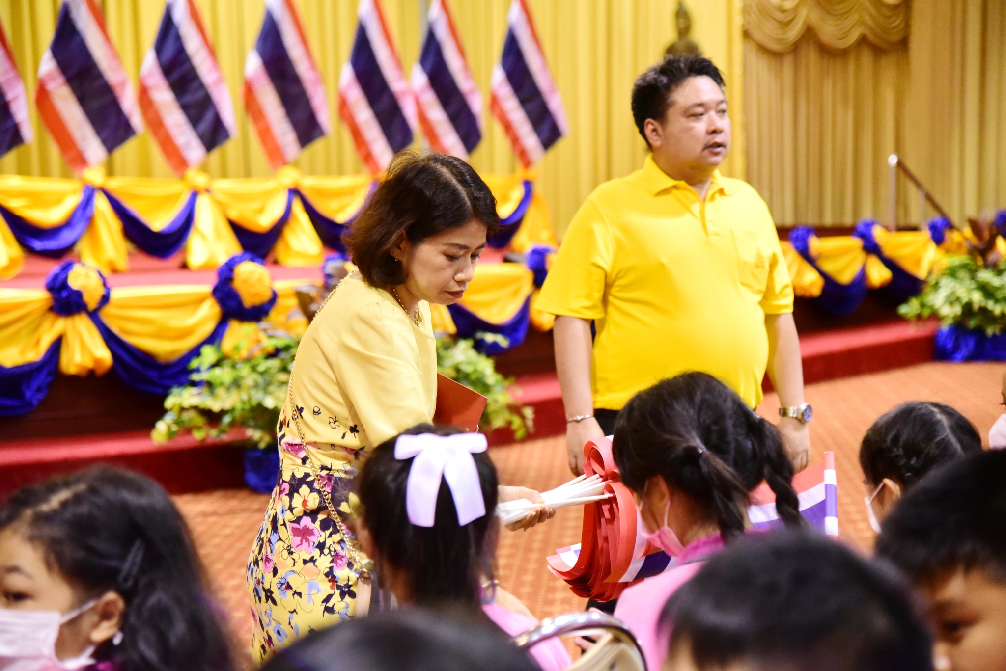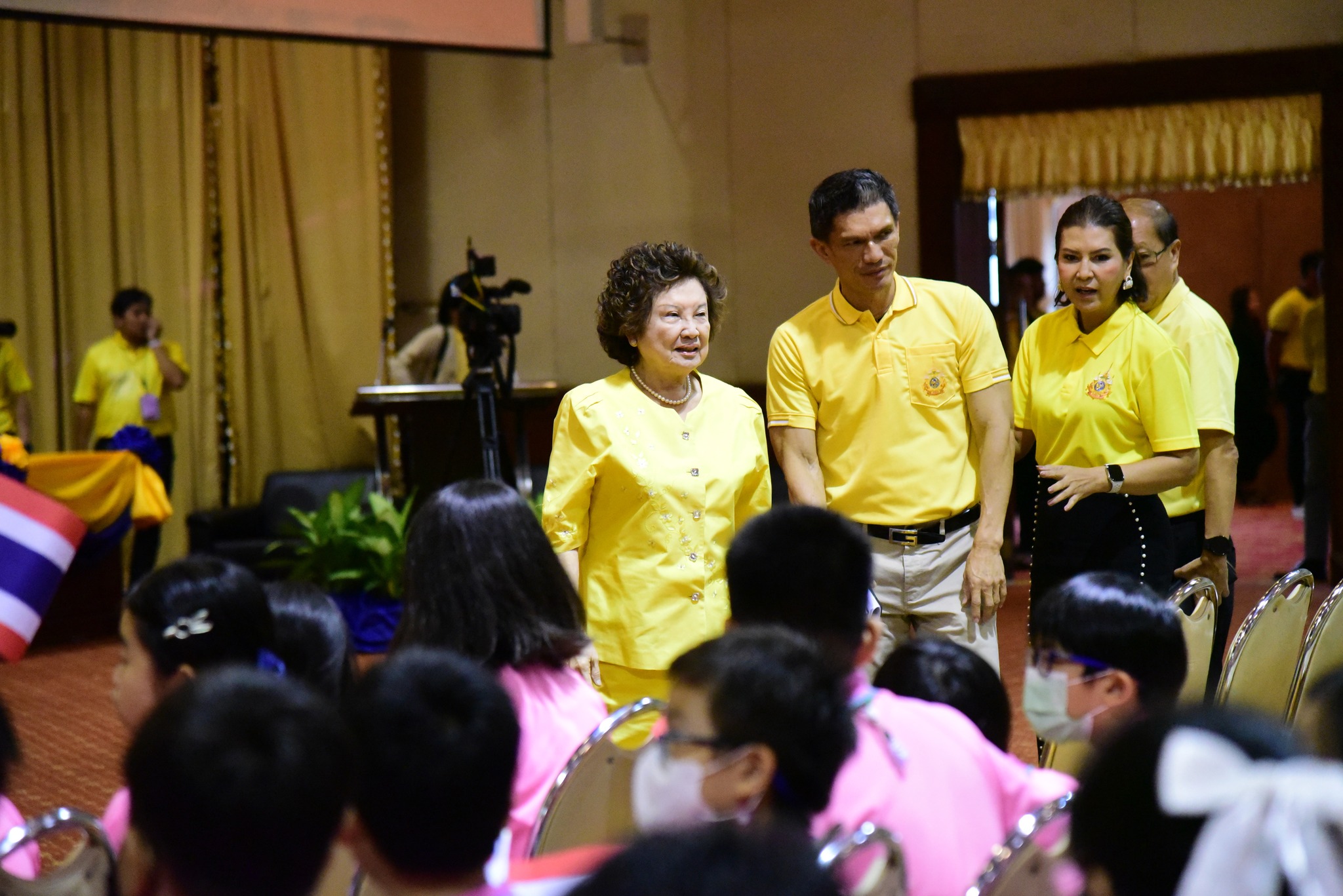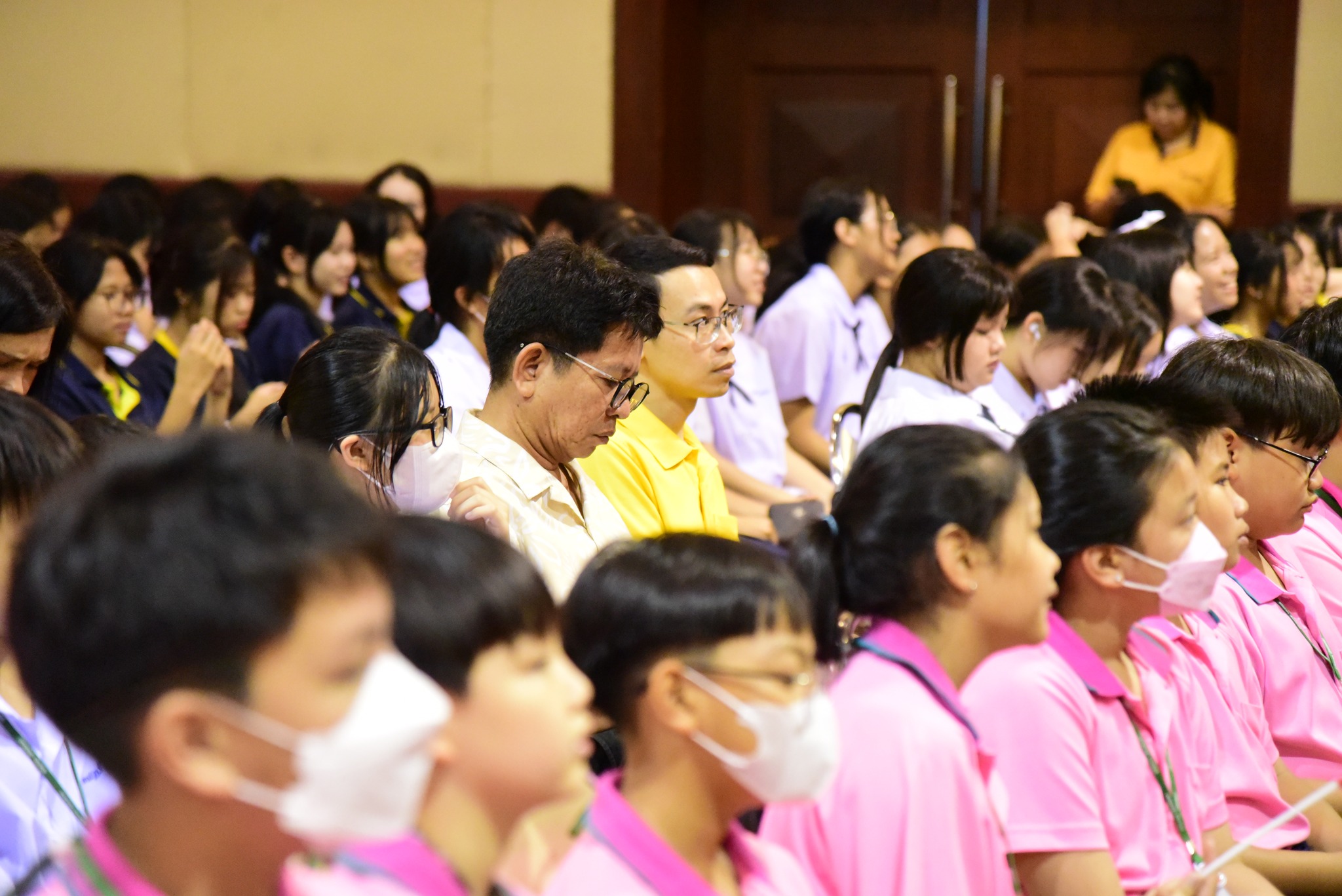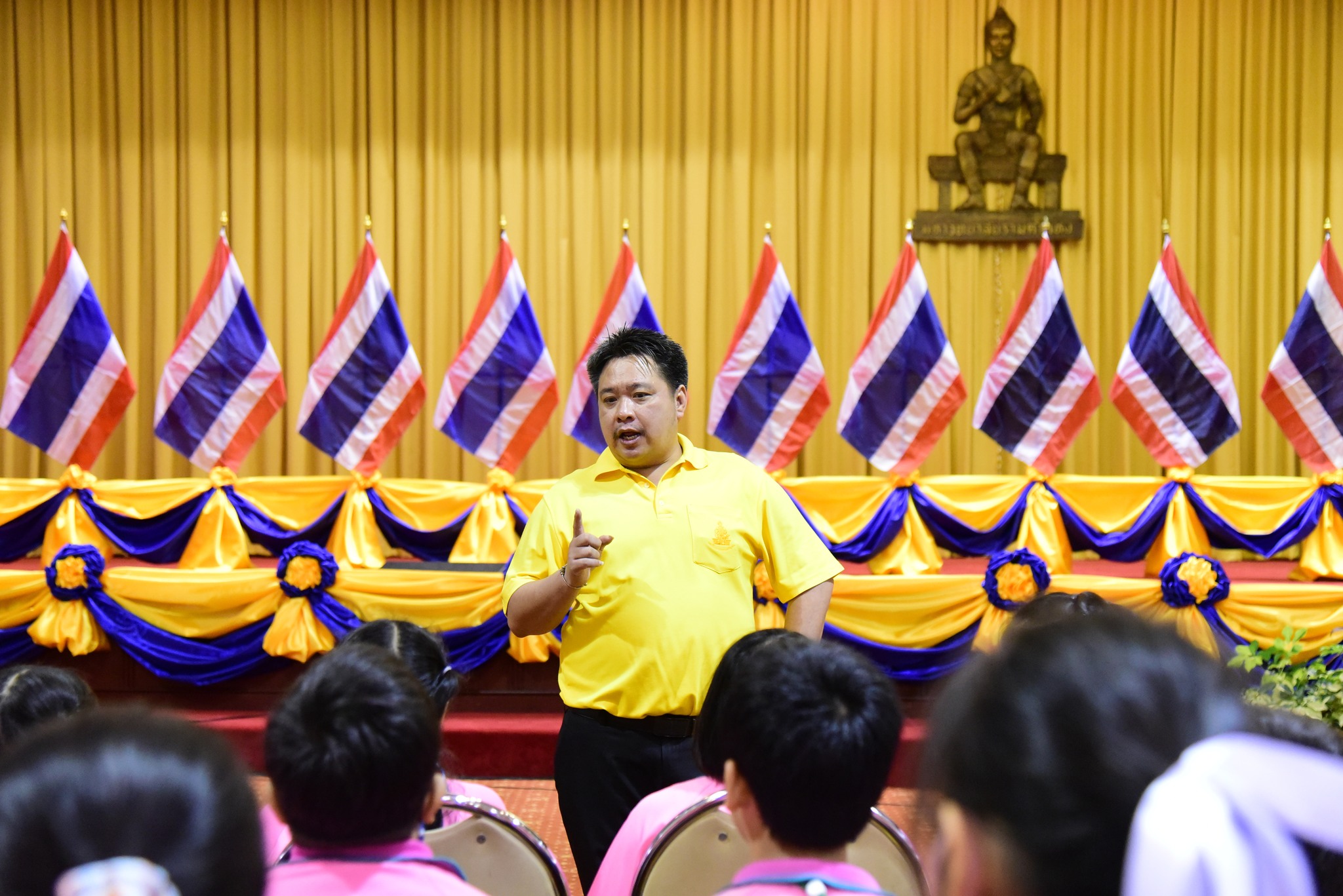 และนักเรียนโรงเรียนสาธิตมหาวิทยาลัยรามคำแหง ร่วมร้องเพลงชาติไทยเพื่อให้กำลังใจทหาร เจ้าหน้าที่ อาสาสมัคร
