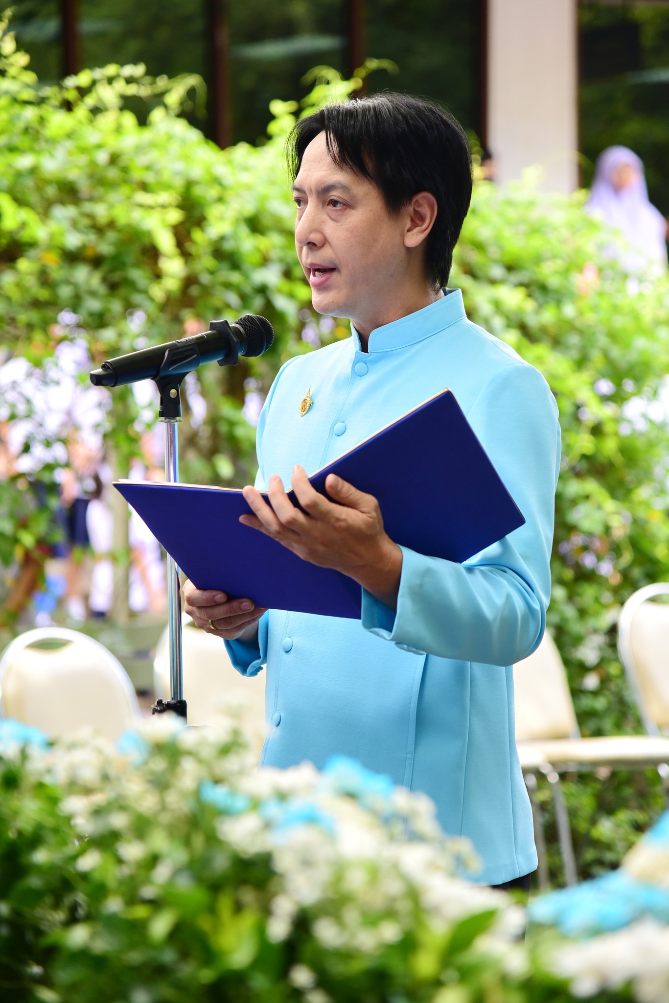 เป็นประธานในพิธีฯ พร้อมด้วยคณะผู้บริหาร คณาจารย์ เจ้าหน้าที่ และนักเรียน เข้าร่วมพิธี