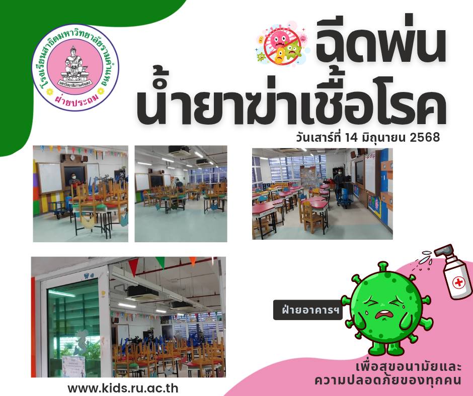 ฝ่ายอาคารและสถานที่ ฉีดพ่นน้ำยาฆ่าเชื้อทั่วบริเวณโรงเรียน