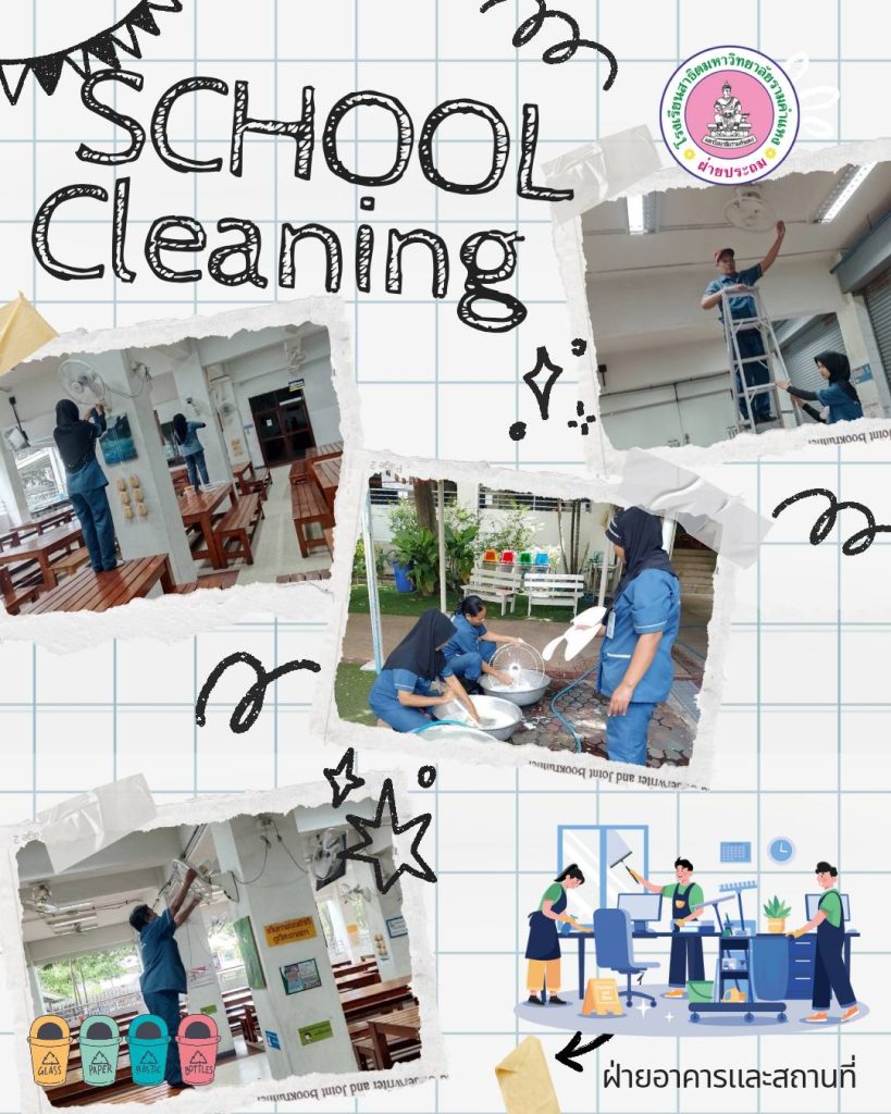 ฝ่ายอาคารและสถานที่ ทำความสะอาดบริเวณโรงอาหาร