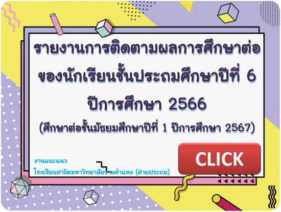 รายงานการติดตามผลการศึกษาต่อของนักเรียนชั้นประถมศึกษาปีที่ 6 ปีการศึกษา 2566 (ตัวอย่าง)
