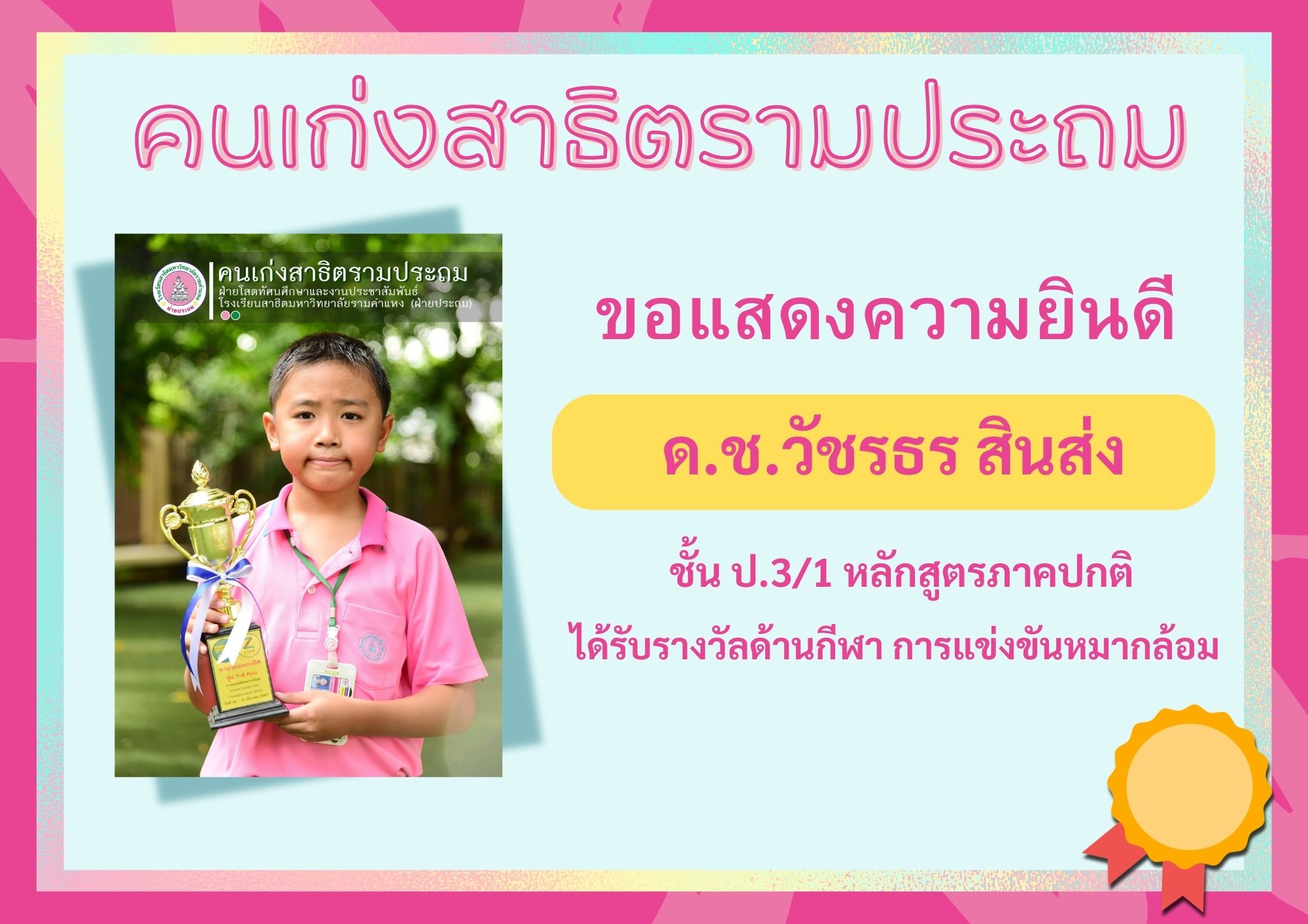 ด.ช.วัชรธร สินส่ง ชั้น ป.4/1 หลักสูตรภาคภาษาอังกฤษ