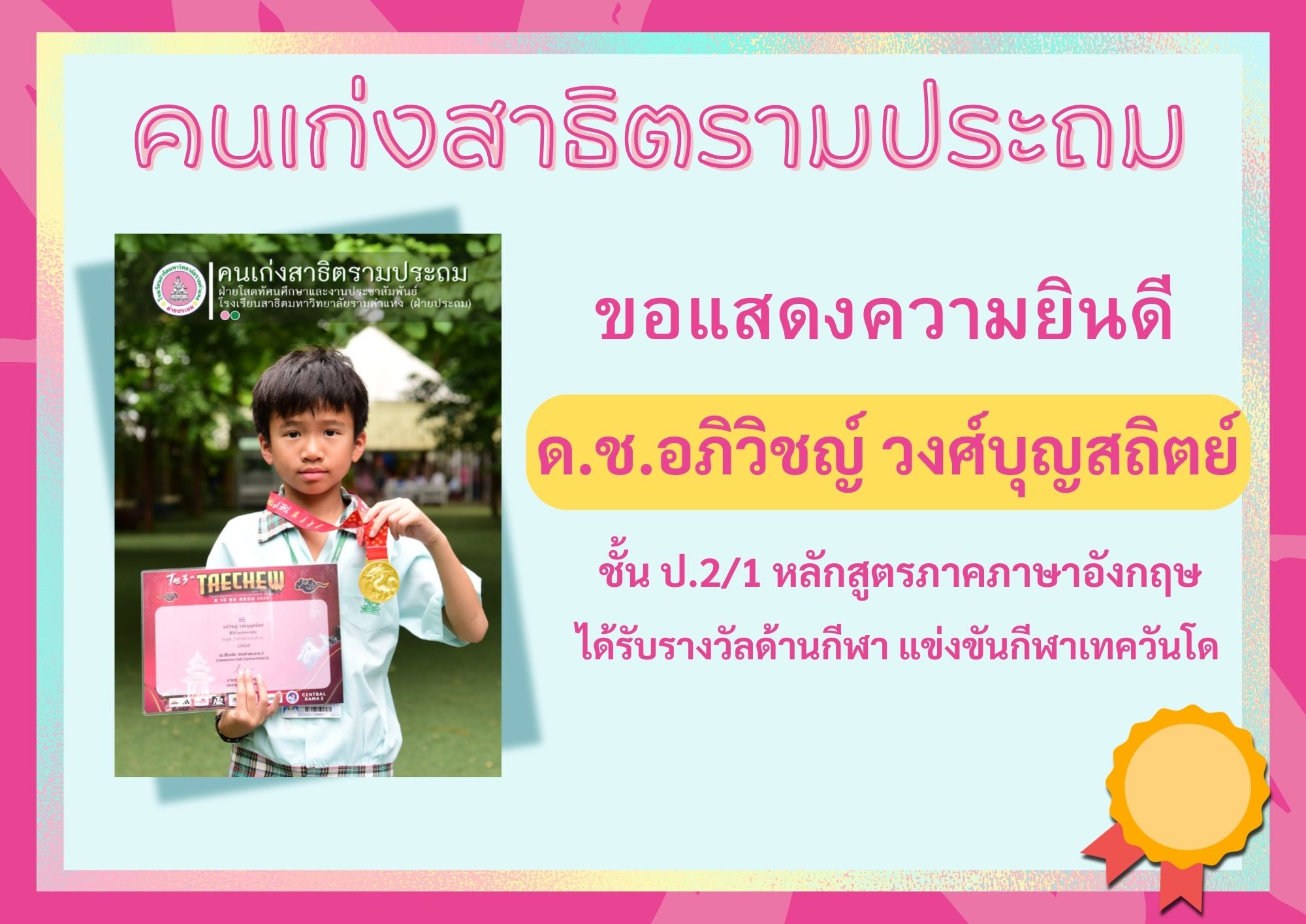 ด.ช.อภิวิชญ์ วงศ์บุญสถิตย์ ชั้น ป.2/1 หลักสูตรภาคภาษาอังกฤษ