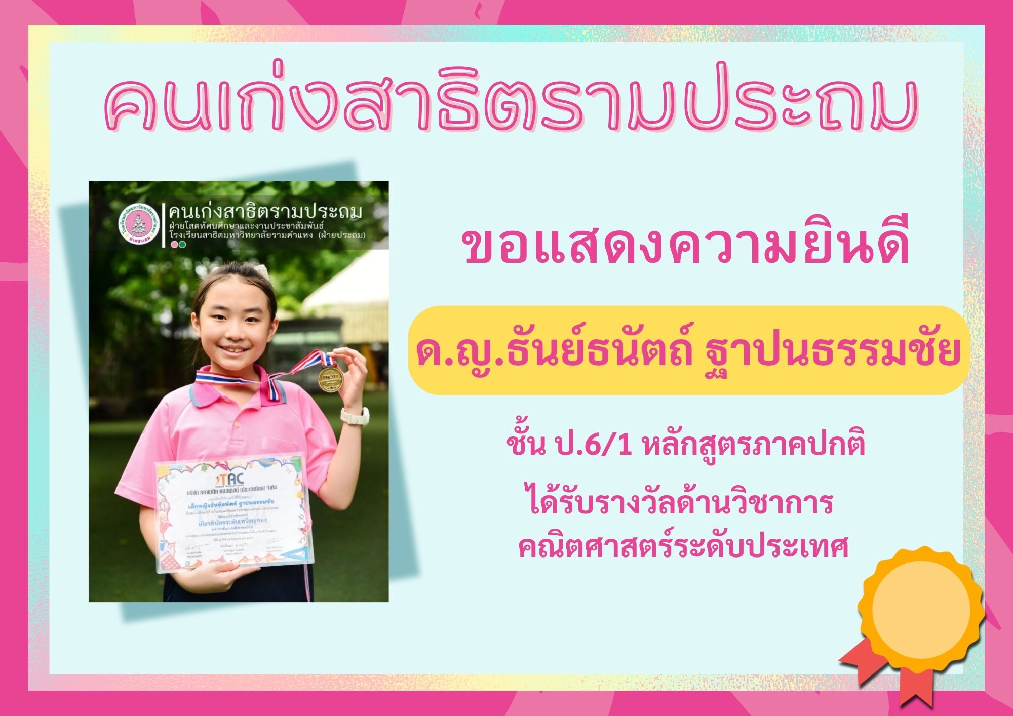 ด.ญ.ธันย์ธนัตถ์ ฐาปนธรรมชัย ชั้น ป.6/1 หลักสูตรภาคปกติ
