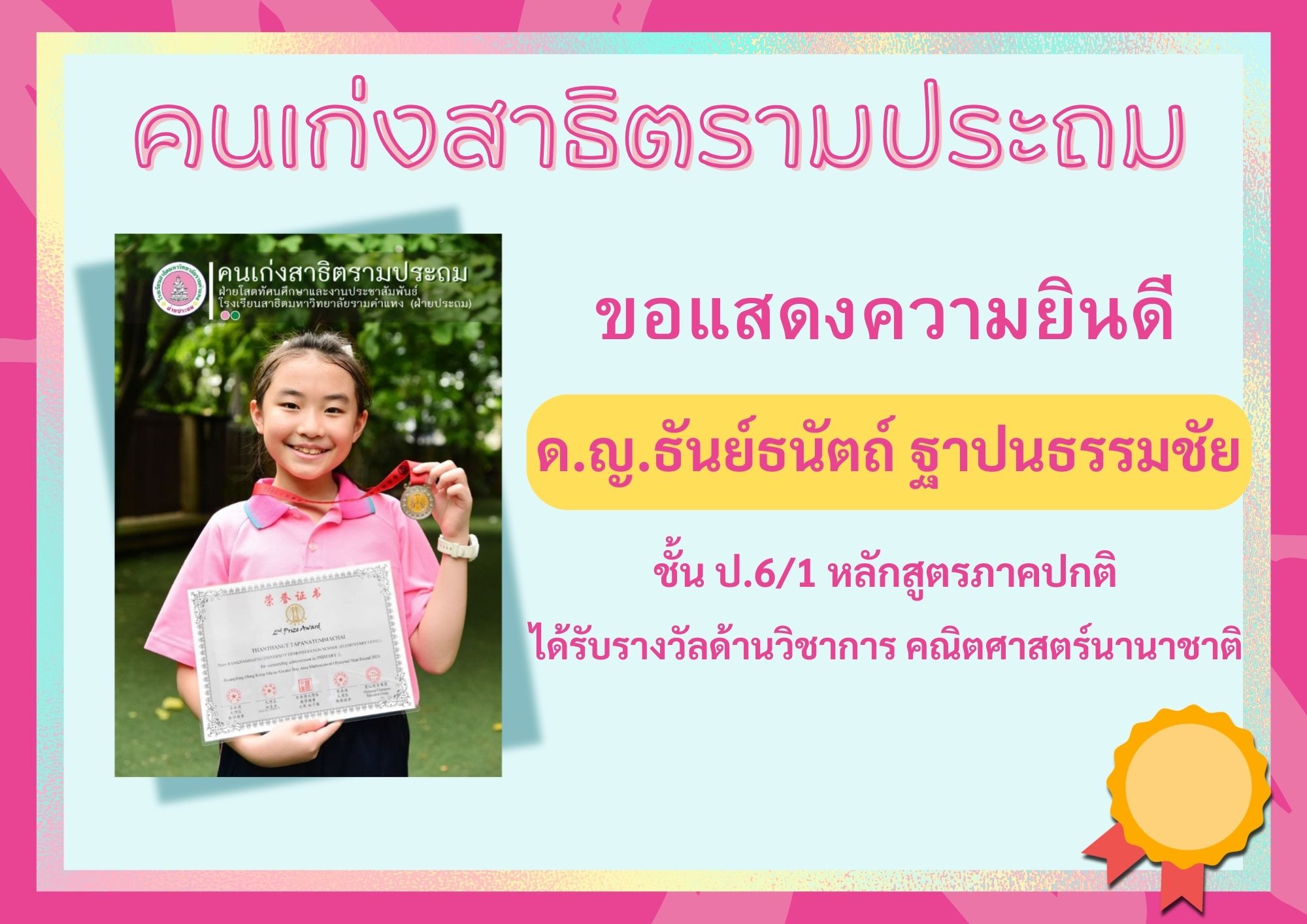 ด.ญ.ธันย์ธนัตถ์ ฐาปนธรรมชัย ชั้น ป.6/1 หลักสูตรภาคปกติ