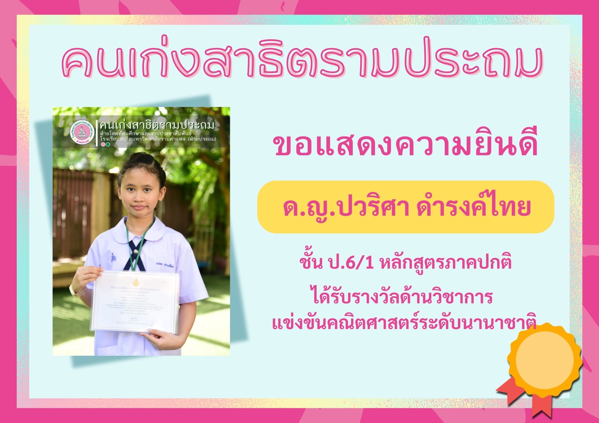 ด.ญ.ปวริศา ดำรงค์ไทย ชั้น ป.6/1 หลักสูตรภาคปกติ