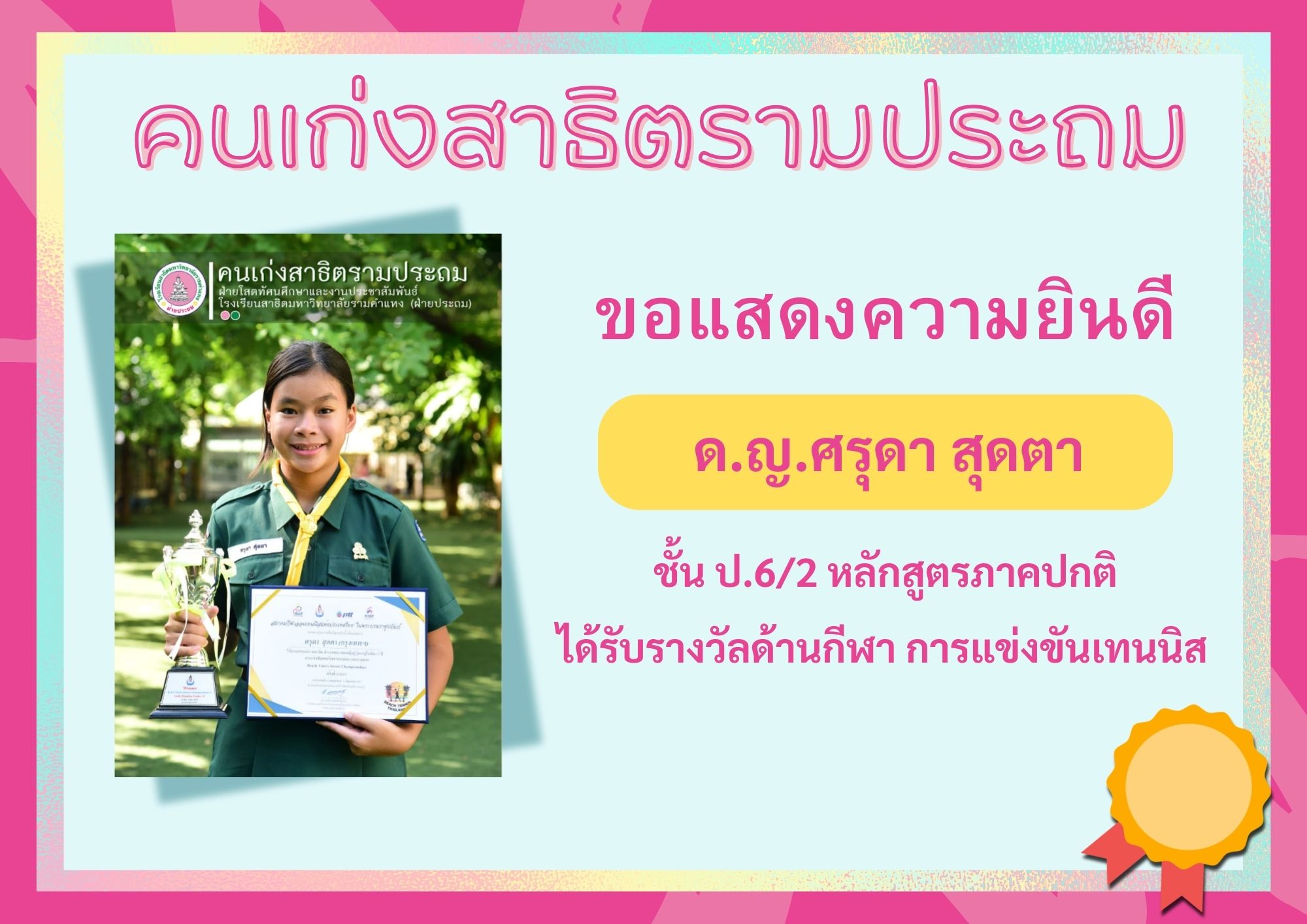 ด.ญ.ศรุดา สุดตา ชั้น ป.6/2 หลักสูตรภาคปกติ