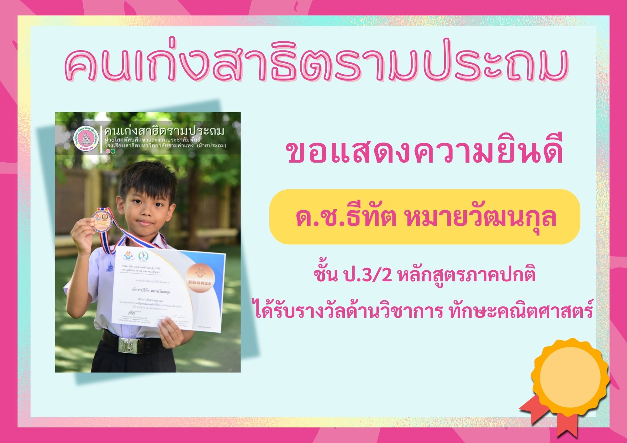 ด.ช.ธีทัต หมายวัฒนกุล ชั้น ป.3/2 หลักสูตรภาคปกติ