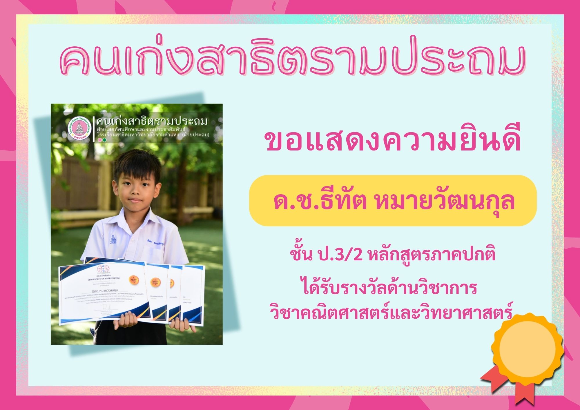 ด.ช.ธีทัต หมายวัฒนกุล ชั้น ป.3/2 หลักสูตรภาคปกติ