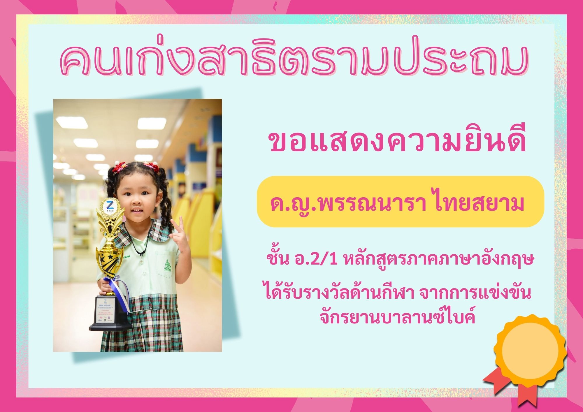 ด.ญ.พรรณนารา ไทยสยาม ชั้น อ.2/1 หลักสูตรภาคภาษาอังกฤษ