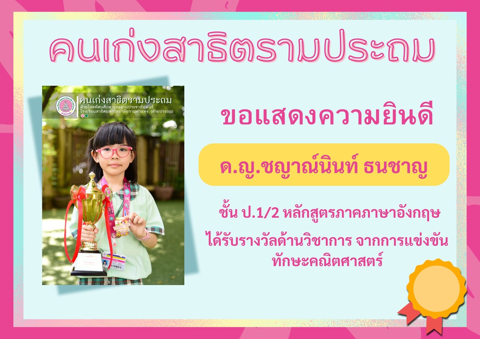 ด.ญ.ชญาณ์นินท์ ธนชาญ ชั้น ป.1/2 หลักสูตรภาคภาษาอังกฤษ