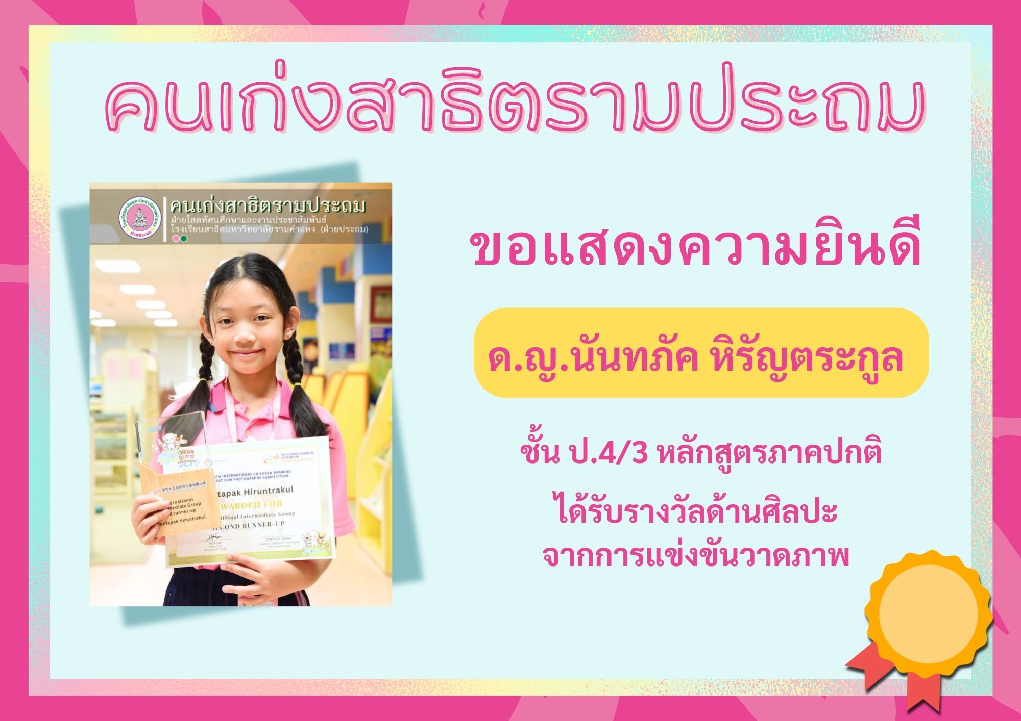 ด.ญ.นันทภัค หิรัญตระกูล ชั้น ป.4/3 หลักสูตรภาคปกติ