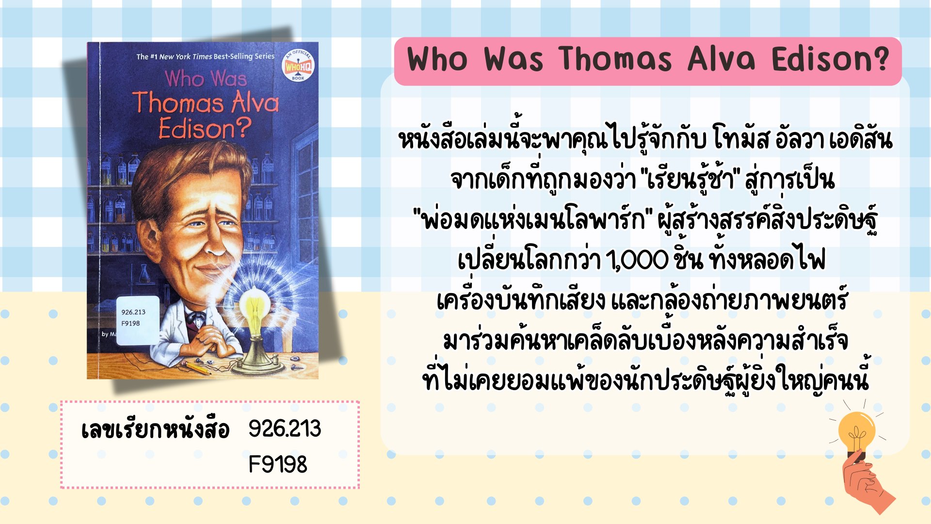 สวัสดีค่ะ วันนี้พี่บรรณนี่ได้มีหนังสือชีวประวัติของบุคคลที่มีชื่อเสียงในด้านต่าง ๆ เข่น นักร้อง นักประดิษฐ์หลอดไฟ