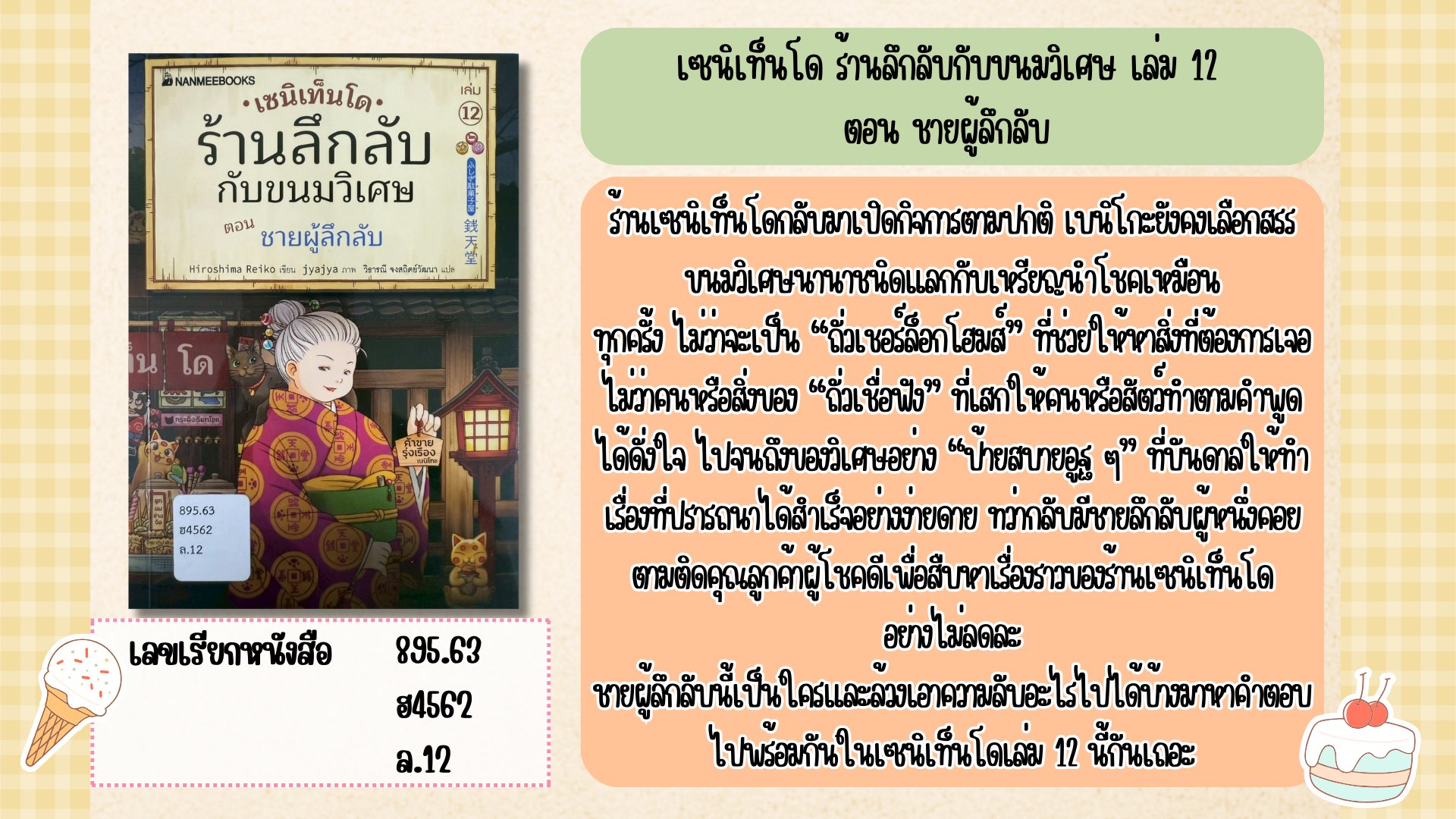 ฉบับต้อนรับปีใหม่ 2569 ปักษ์นี้ พี่บรรณนี่มีวรรณกรรมเยาวชนแปลจากญี่ปุ่นเป็นภาษาไทย เรื่อง เซนิเท็นโด ร้านลึกลับกับขนมวิเศษ