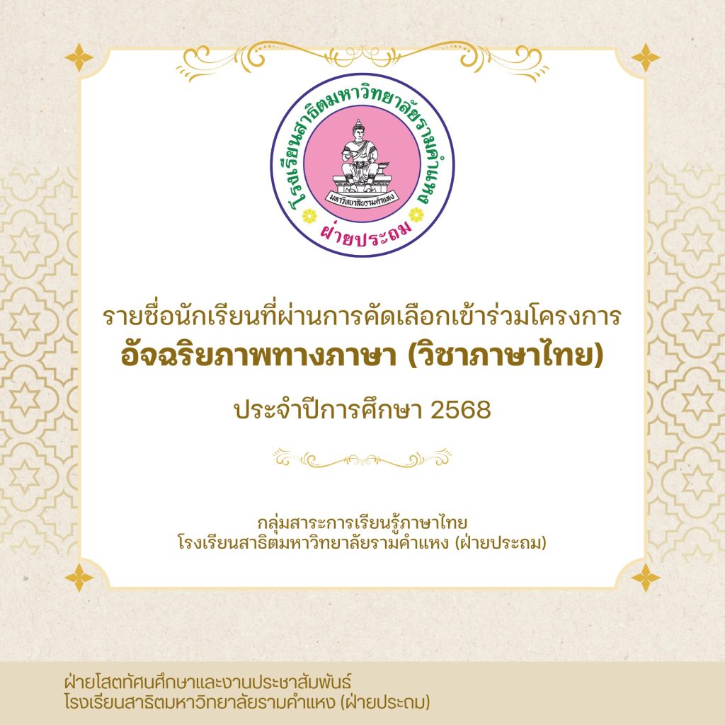 โครงการอัจฉริยภาพทางภาษา (วิชาภาษาไทย) ประจำปีการศึกษา 2568
