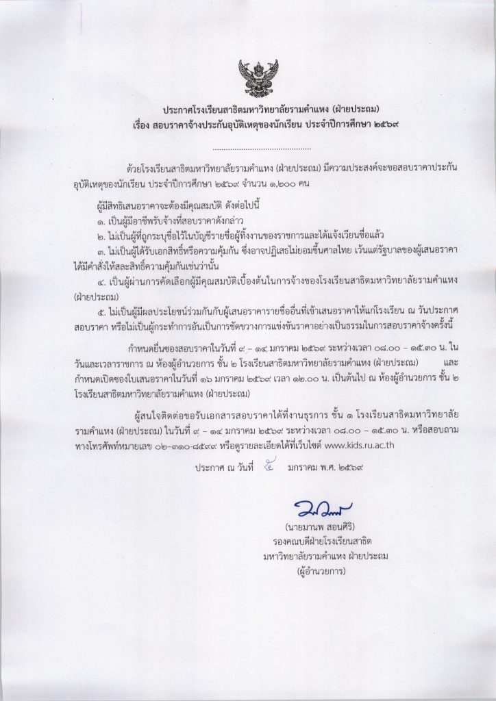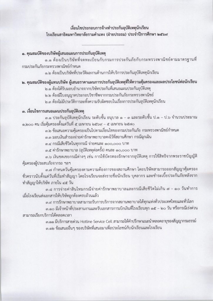 เรื่อง สอบราคาจ้างประกันอุบัติเหตุของนักเรียน ปีการศึกษา 2569