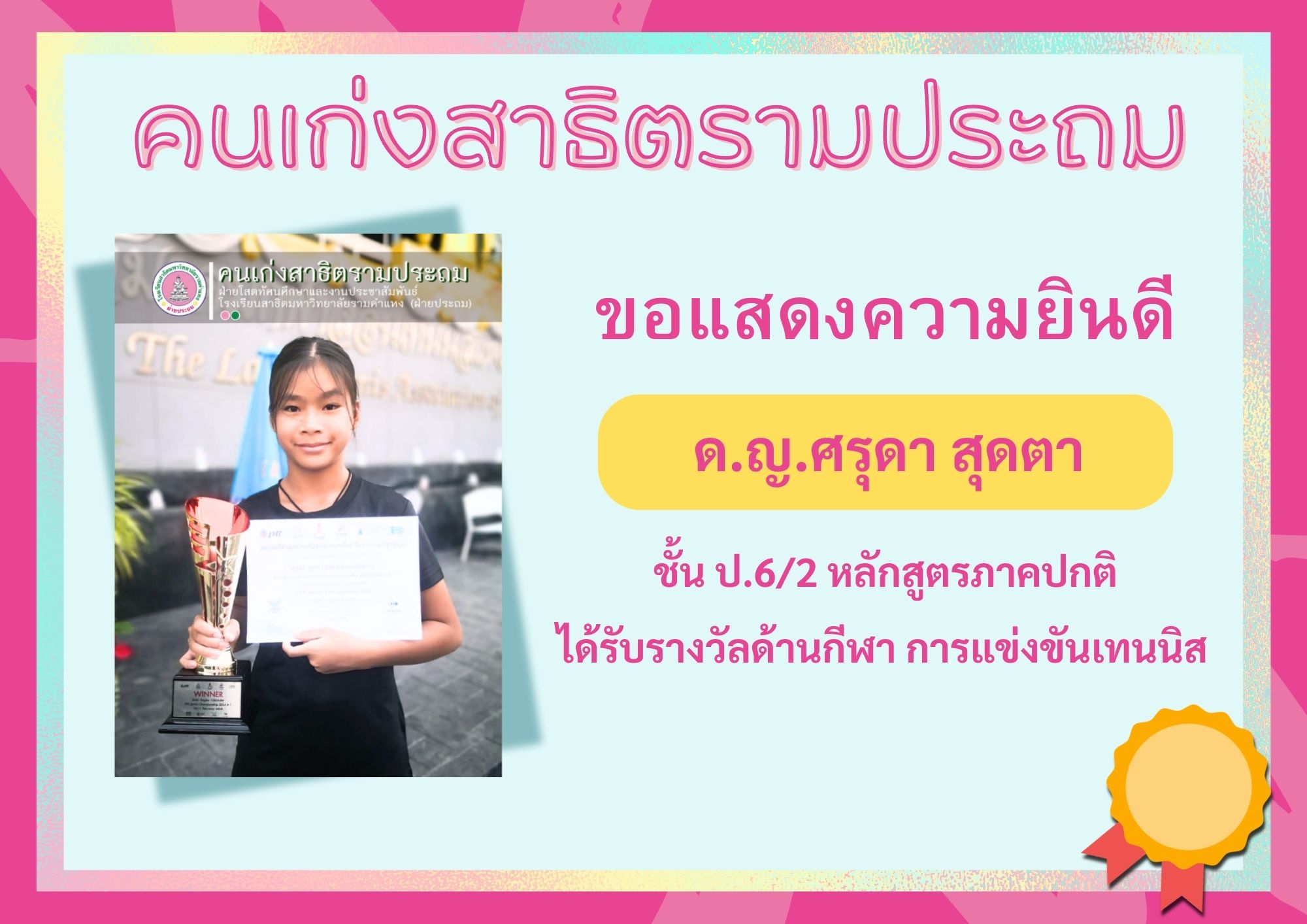 ด.ญ.ศรุดา สุดตา ชั้น ป.6/2 หลักสูตรภาคปกติ