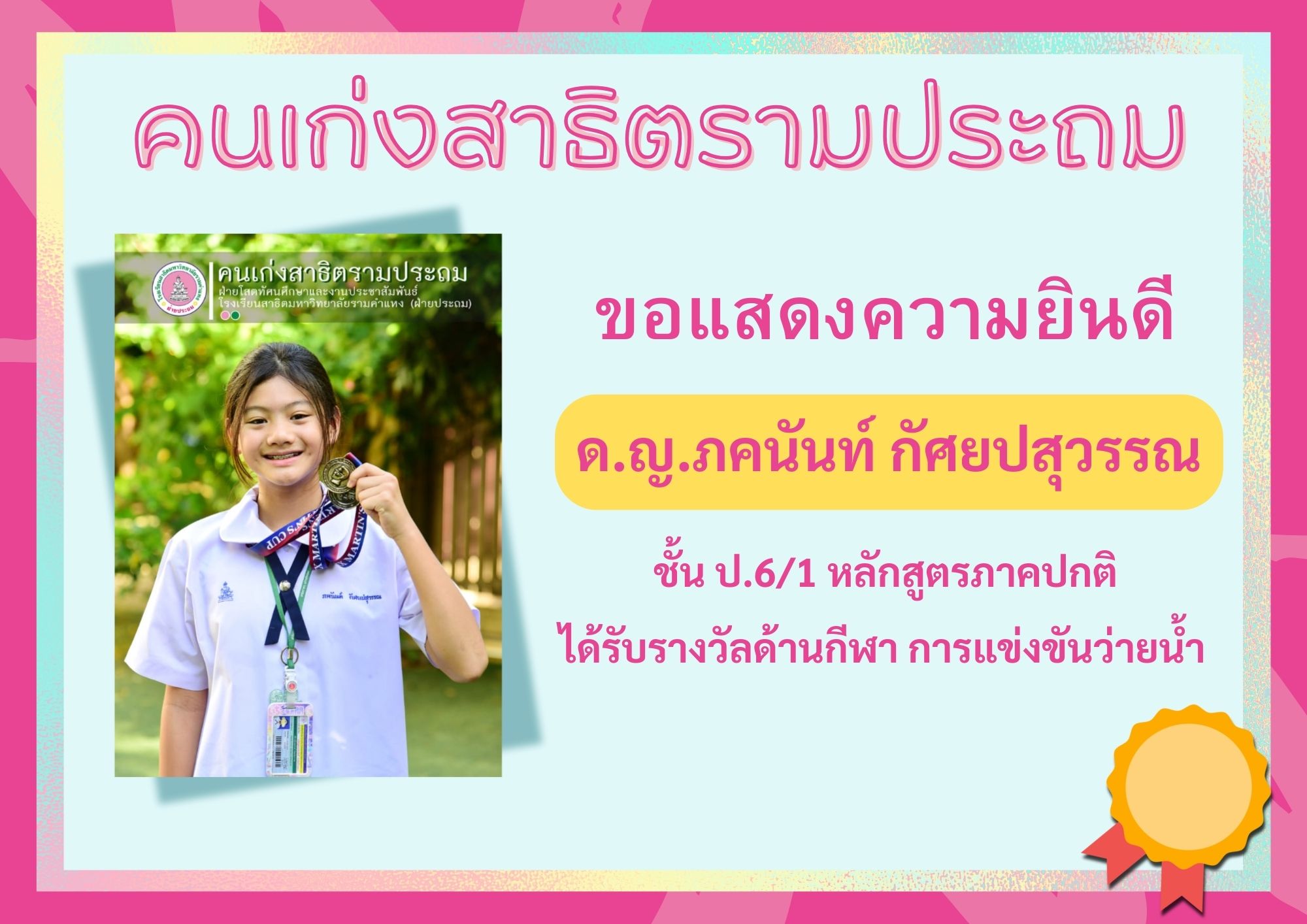ด.ญ.ภคนันท์ กัศยปสุวรรณ ชั้น ป.6/1 หลักสูตรภาคปกติ