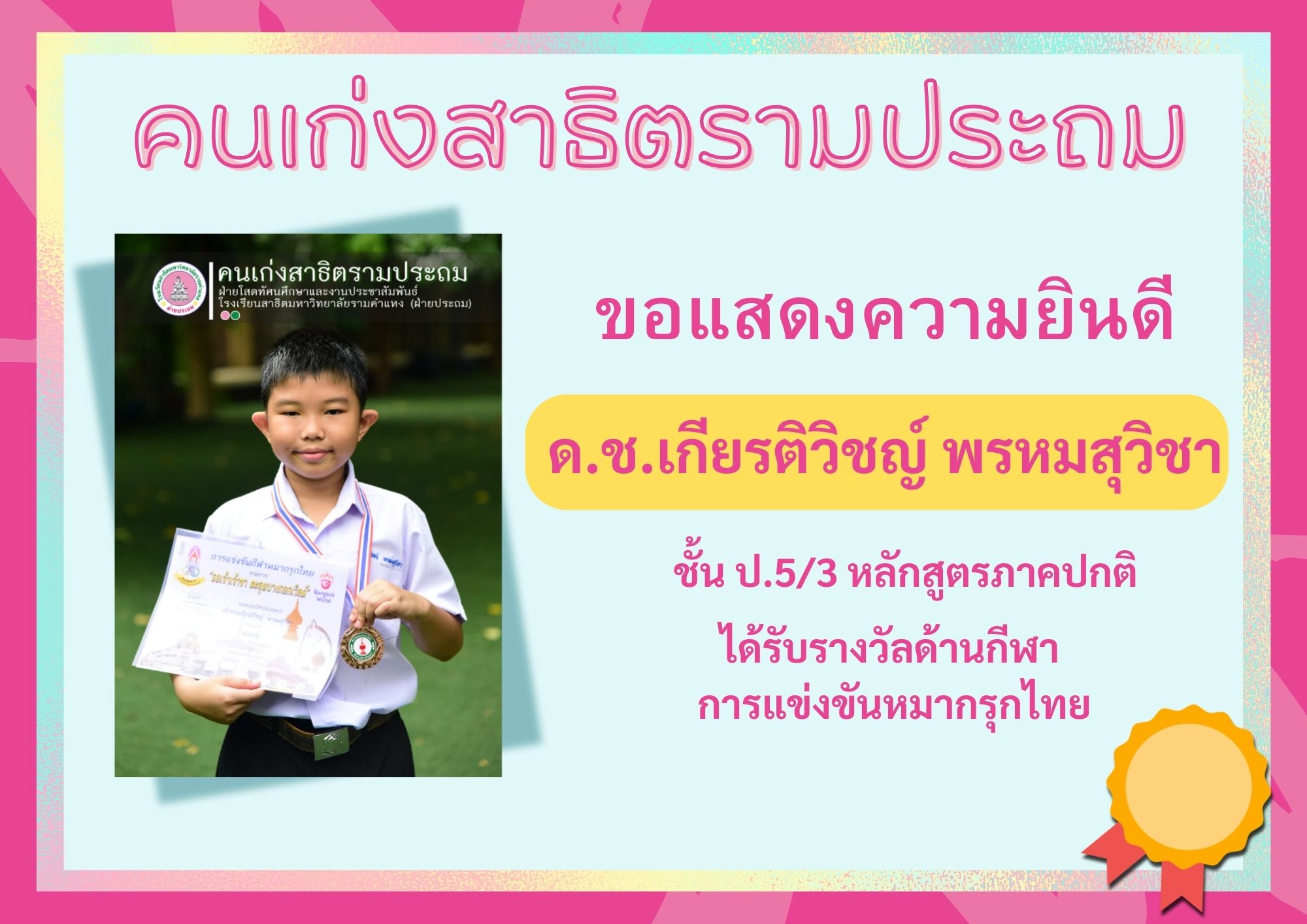 ด.ช.เกียรติวิชญ์ พรหมสุวิชา ชั้น ป.5/3 หลักสูตรภาคปกติ