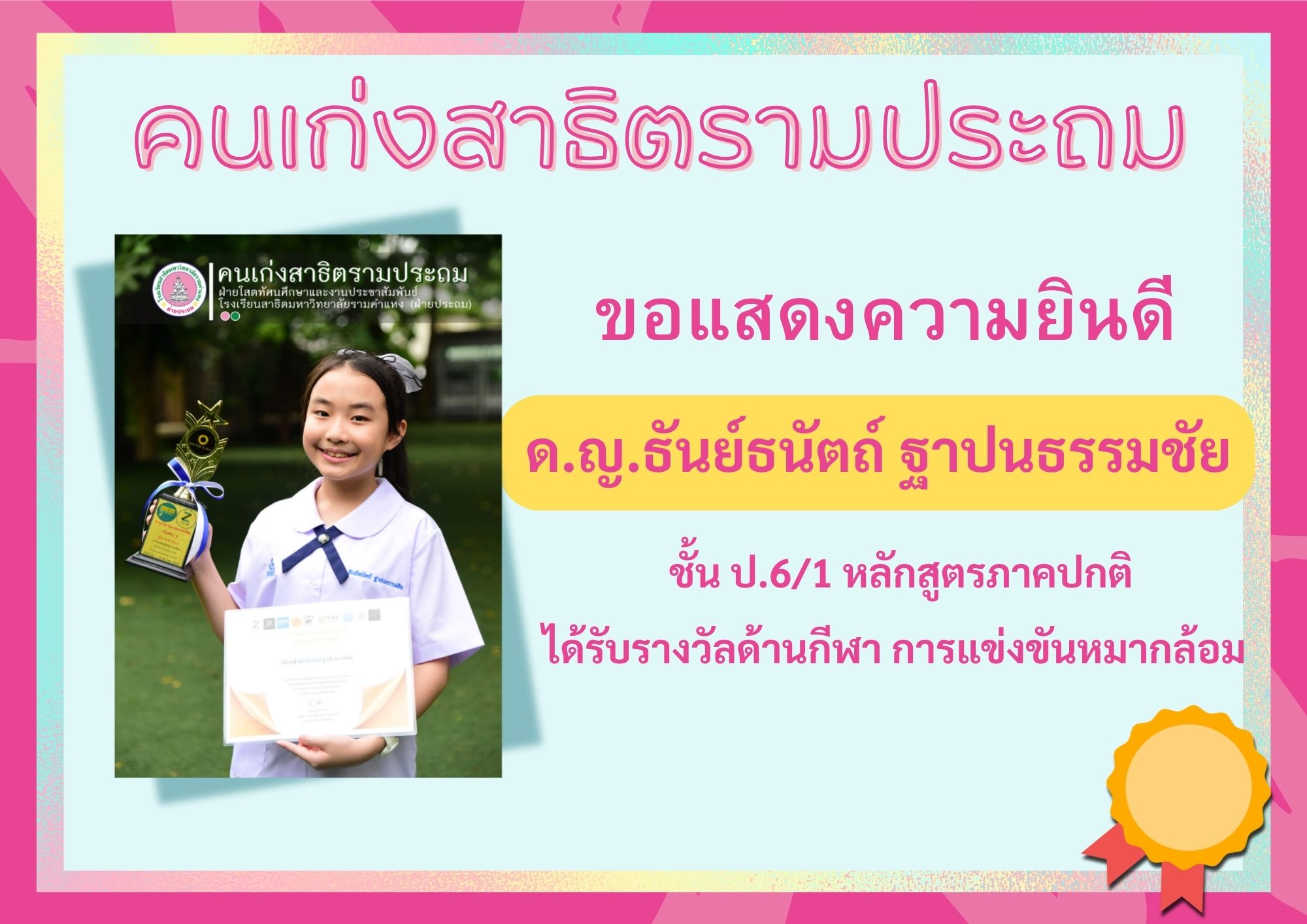 ด.ญ.ธันย์ธนัตถ์ ฐาปนธรรมชัย ชั้น ป.6/1 หลักสูตรภาคปกติ
