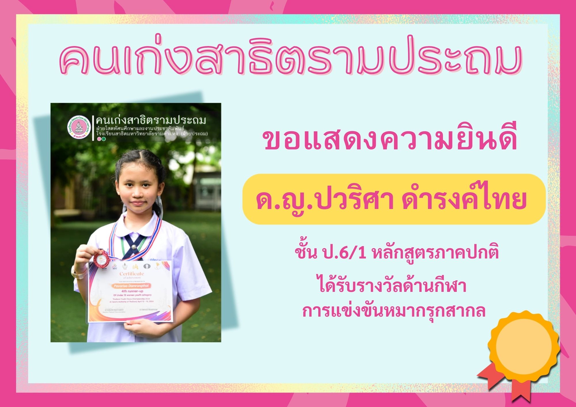 ด.ญ.ปวริศา ดำรงค์ไทย ชั้น ป.6/1 หลักสูตรภาคปกติ