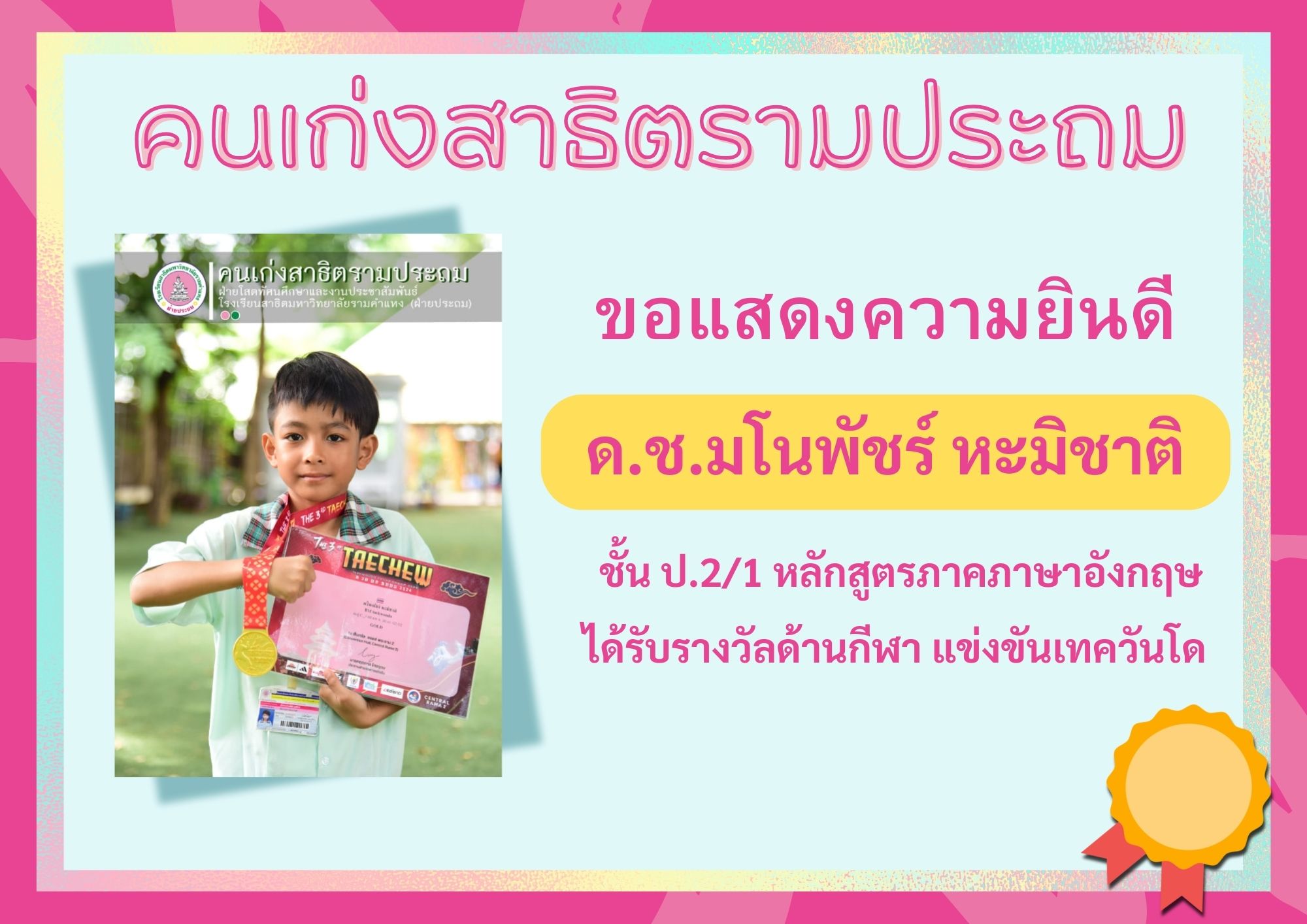 ได้รับรางวัลด้านกีฬา แข่งขันเทควันโด