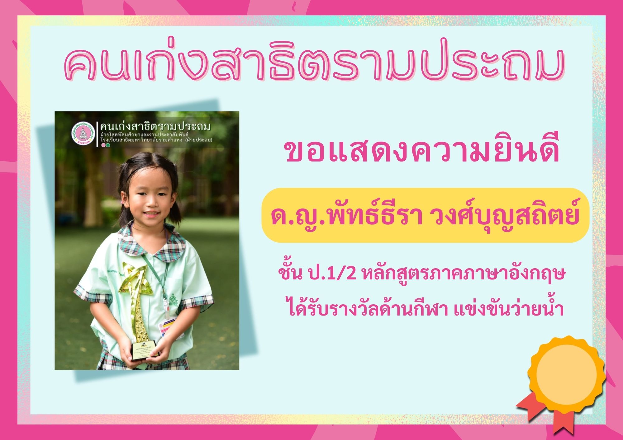 ด.ญ.พัทธ์ธีรา วงศ์บุญสถิตย์ ชั้น ป.1/2 หลักสูตรภาคภาษาอังกฤษ