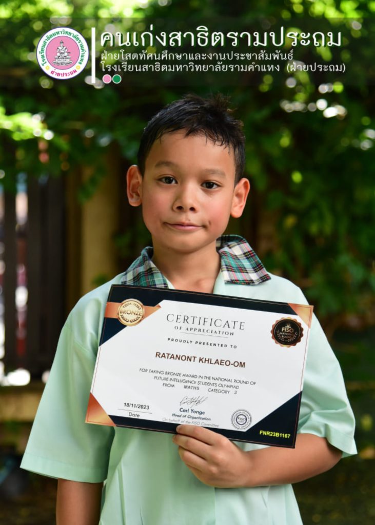 ได้รับเหรียญรางวัล BRONZE – MATH และ รางวัล MERIT – ENGLISH