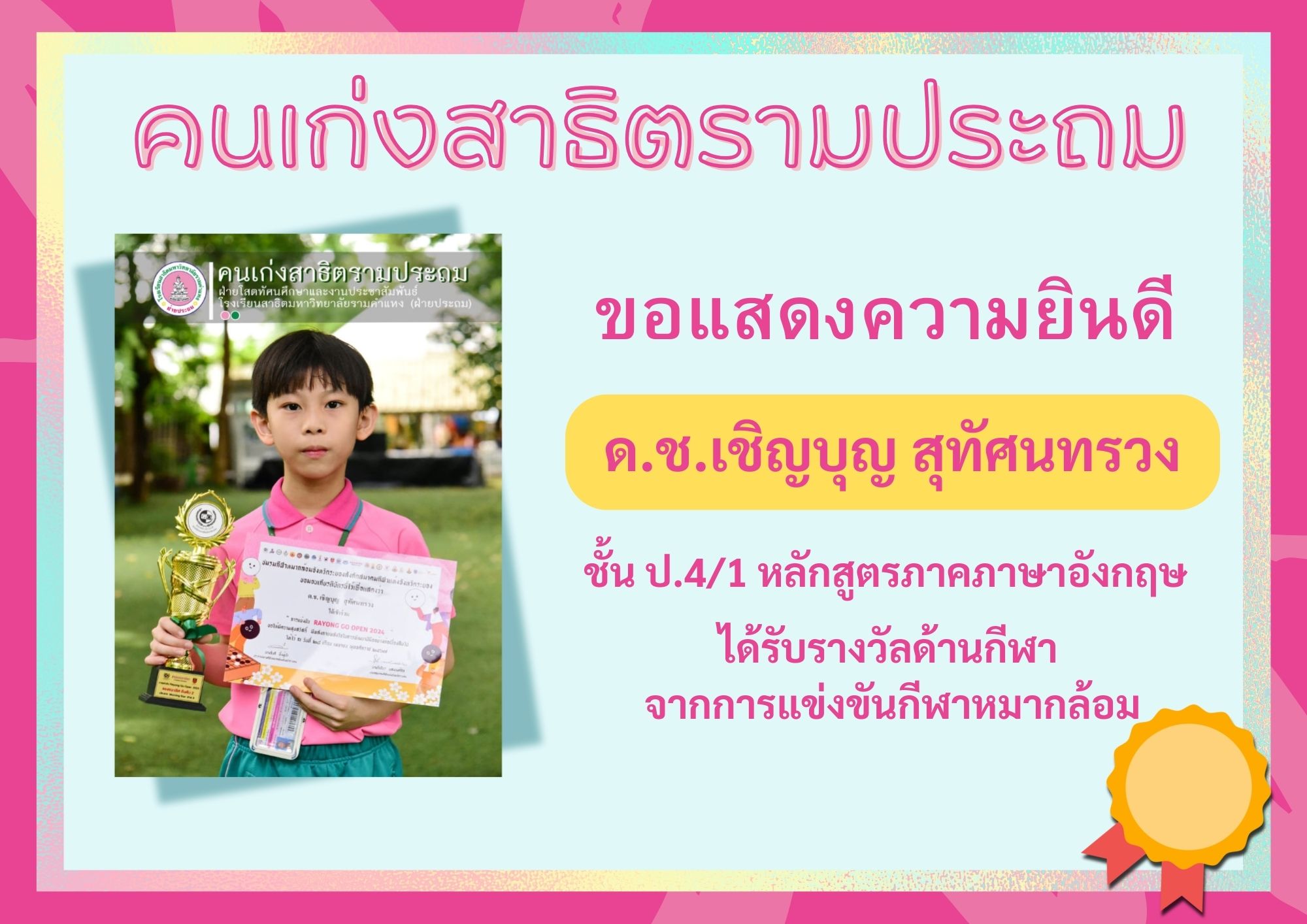 ด.ช.เชิญบุญ สุทัศนทรวง ชั้น ป.4/1 หลักสูตรภาคภาษาอังกฤษ