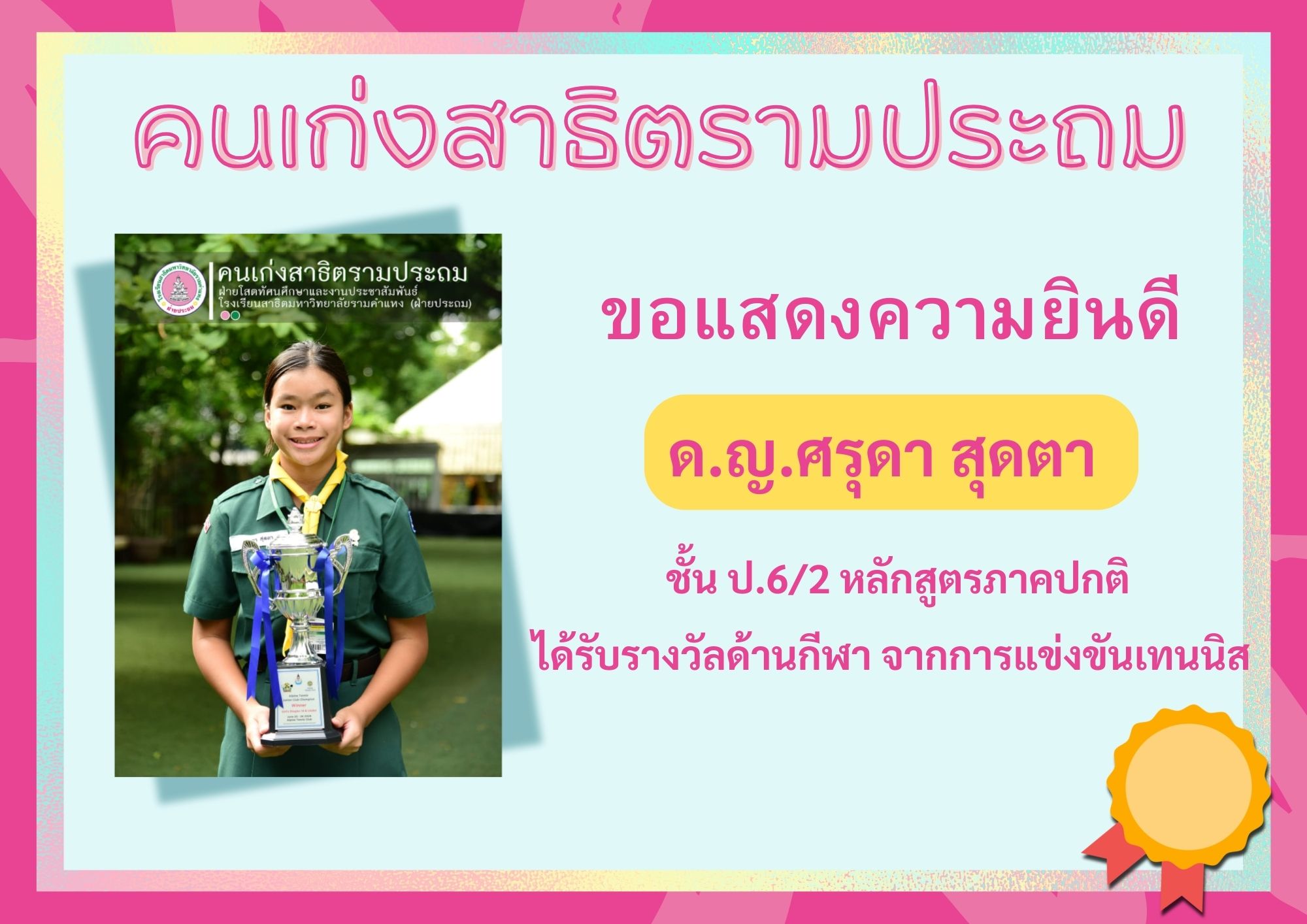 ด.ญ.ศรุดา สุดตา ชั้น ป.6/2 หลักสูตรภาคปกติ
