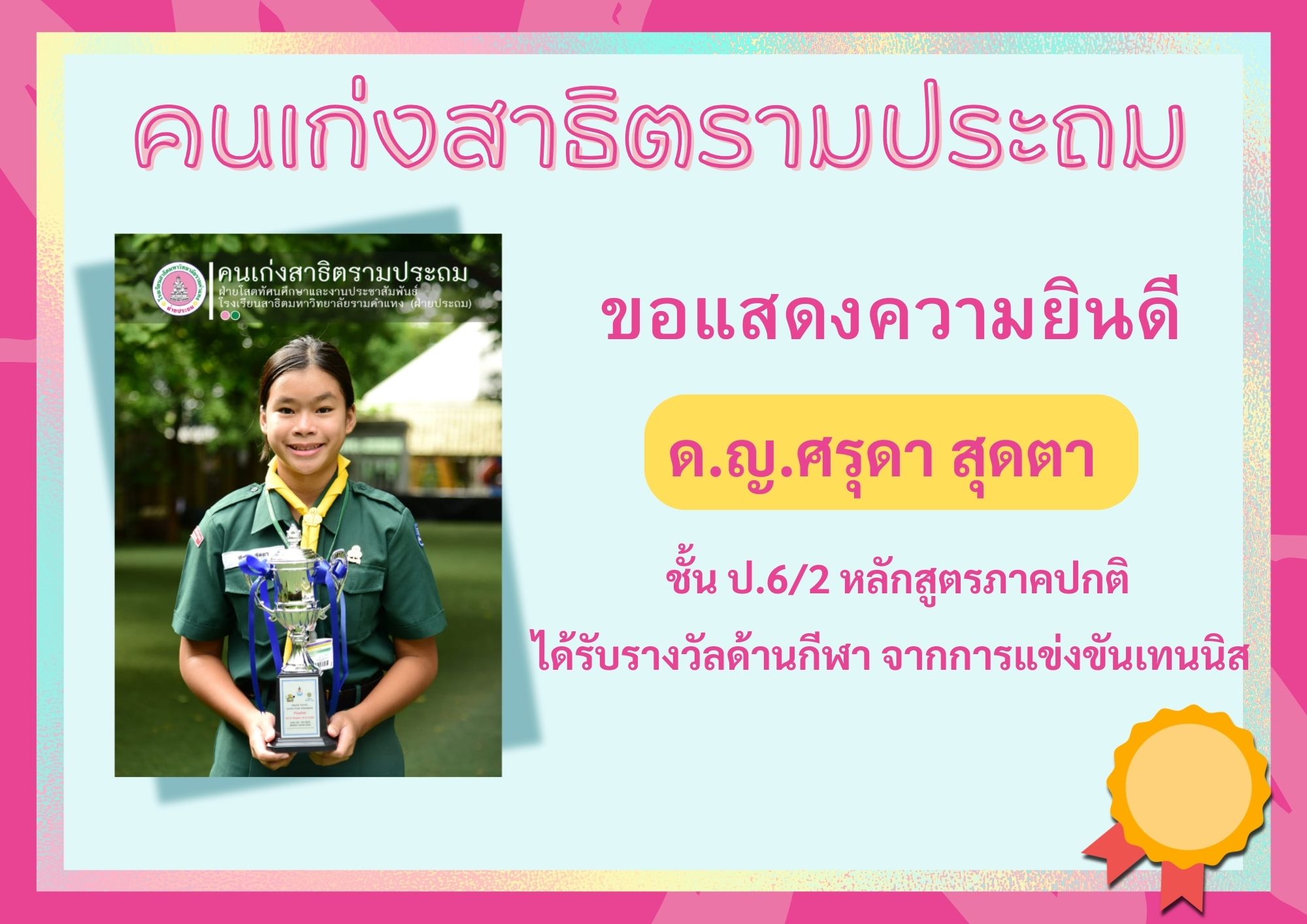 ด.ญ.ศรุดา สุดตา ชั้น ป.6/2 หลักสูตรภาคปกติ