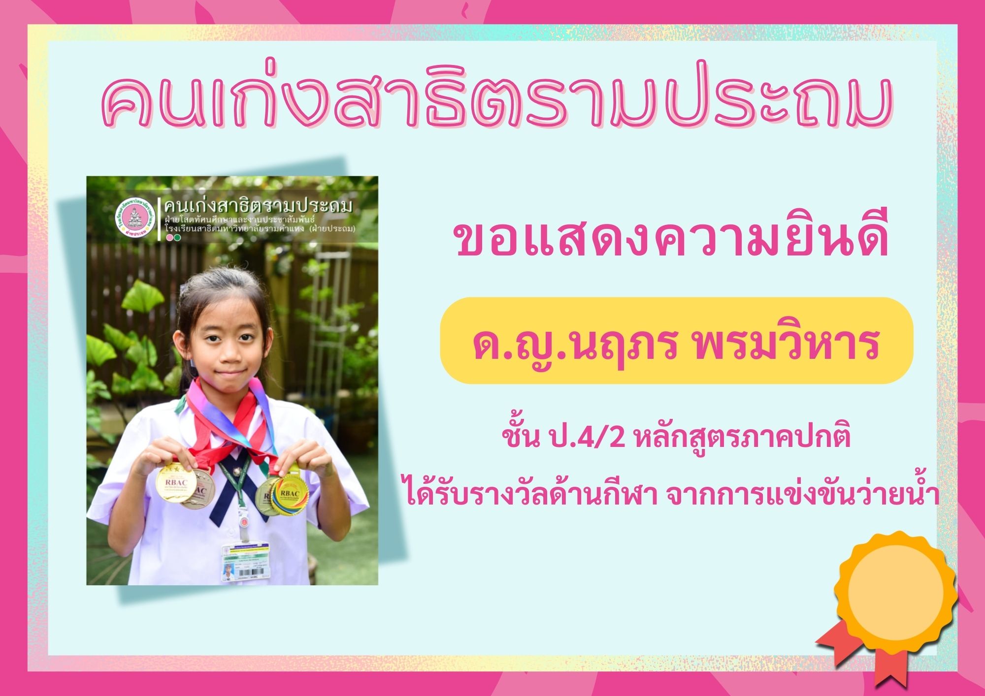 ด.ญ.นฤภร พรมวิหาร ชั้น ป.4/2 หลักสูตรภาคปกติ