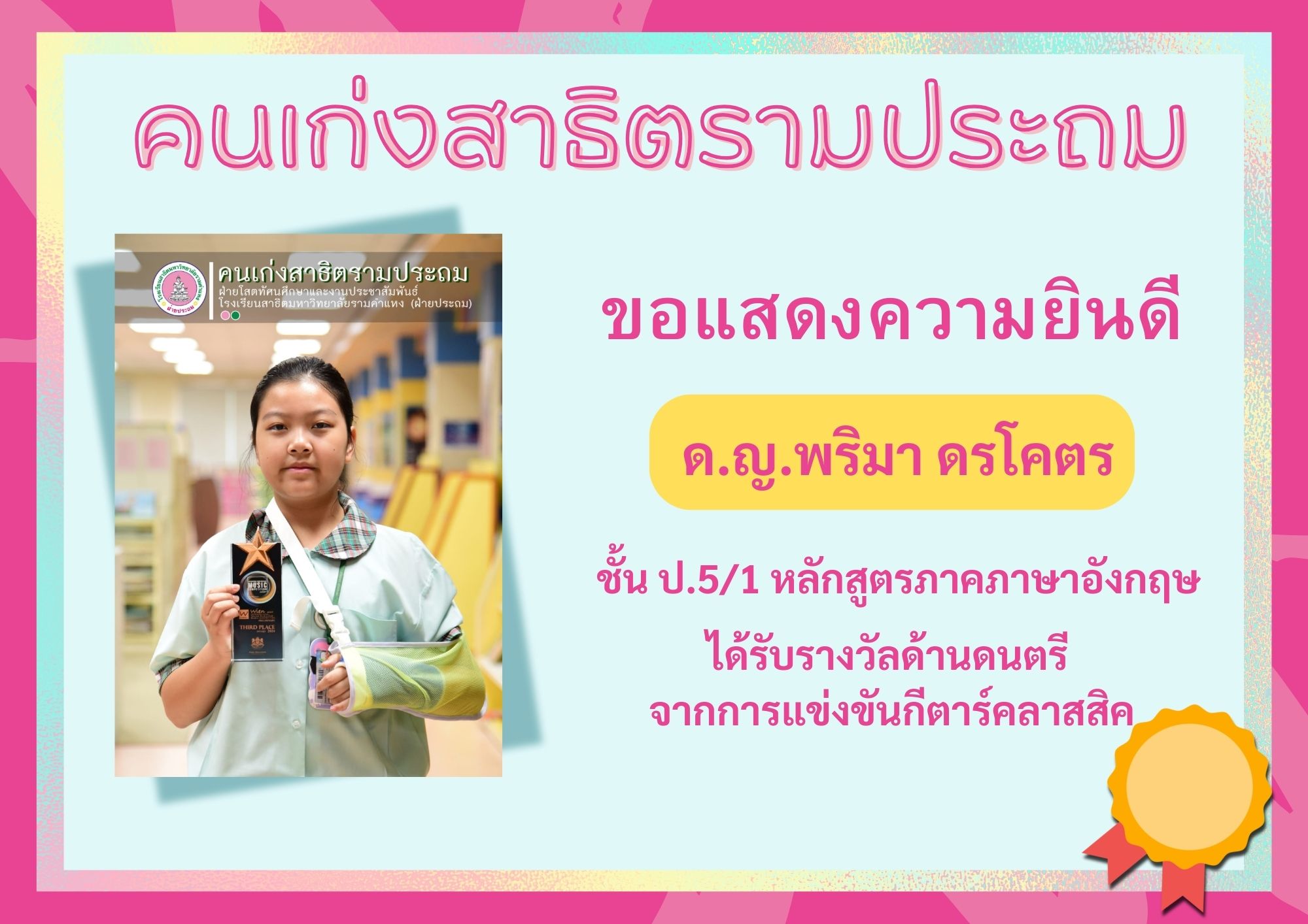 ด.ญ.พริมา ดรโคตร ชั้น ป.5/1 หลักสูตรภาคภาษาอังกฤษ